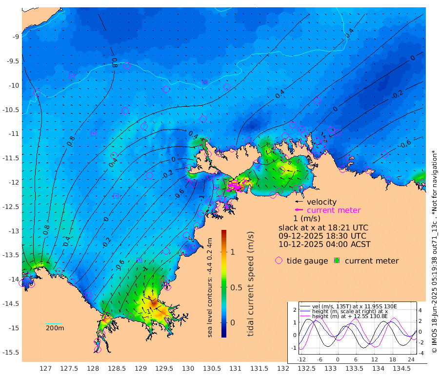 157cm/s -101T +4cm/s rms + 6cm/s 51T. Darwin_C1 52m 103cm/s -91T +4cm/s rms + 7cm/s -161T. Darwin_CW1 22m 66cm/s -106T +4cm/s rms + 8cm/s 61T. Darwin_CW2 34m 76cm/s -135T +3cm/s rms + 9cm/s 98T. Darwin_CW3 22m 96cm/s -91T +5cm/s rms + 7cm/s 88T. Darwin_C3 56m 87cm/s -116T +2cm/s rms + 9cm/s -126T. Darwin_CTbW 22m 10cm/s 141T +9cm/s rms + 2cm/s -110T. NWSLYN 196m 17cm/s -101T +1cm/s rms + 1cm/s -47T. DARBGF 30m 12cm/s 39T +7cm/s rms + 2cm/s -137T. ITFTIS 464m 15cm/s 42T +9cm/s rms + 1cm/s 74T. ITFMHB 146m 18cm/s 15T +4cm/s rms + 1cm/s -134T. ITFJBG 61m 15cm/s 52T +6cm/s rms + 4cm/s 121T. ITFFTB 108m 16cm/s -87T +4cm/s rms + 3cm/s 80T. NRSDAR 19m 110cm Carronade Island 115cm Guy Point 124cm Napier Broome Bay 31cm Lesueur Island -77cm Reveley Island -46cm Rocky Island -130cm Cape Domett -112cm Lacrosse Island -143cm Adolphus Island -73cm Pender Point -52cm Wyndham 47cm The Boxers 34cm Unnamed Shoal 92cm Loxton Shoal -162cm Pelican Island 54cm Calder Shoal 64cm Evans Shoal -173cm Quoin Island -148cm Port Keats -153cm Jones Point -151cm Catfish Island -94cm Cape Scott Offshore -87cm Cape Ford -110cm Anson Bay 51cm Goodrich Bank -102cm Peron Island North -92cm Point Jenny -88cm Native Point -110cm Fish Reef -111cm Tapa Bay -18cm Point Fawcett (Offshore) -123cm Burge Point -113cm Munkunuwa -72cm Beagle A -135cm Parsons Bank -121cm Fenton Patches 58cm Lynedoch Bank -130cm Hancox Shoal Area -132cm Nightcliff -140cm Darwin -112cm Charles Point Patches -104cm Glyde Point -92cm Chambers Bay -94cm Point Stuart -95cm Cape Hotham -79cm Christine Reef -105cm West Alligator Head -94cm East Field Island -79cm Two Hills Bay -6cm Newby Shoal -60cm Camp Point -109cm Medina Inlet South -8cm South Barlow Point 17cm St. Asaph Bay 47cm Cape Van Dieman 43cm Snake Bay 42cm Cache Point 103cm Echo Shoal 20cm Point Jahleel (Off) -22cm Cape Don 12cm Port Essington 6cm Smith Point - West 10cm NW Peacock Island 30cm North Of Jones Shoal 8cm Peacock Island -8cm Point David 3cm D'urville Point 23cm Money Shoal -15cm Copeland Island -21cm Cape Cockburn -5cm One Tree Point -14cm Hogmany Shoal -2cm New Year Island - West -10cm Grant Island -36cm Aurari Bay -50cm Cuthbert Point -31cm North Goulburn Island -42cm Paxie Shoal -72cm Entrance Island -92cm Yabooma Island
