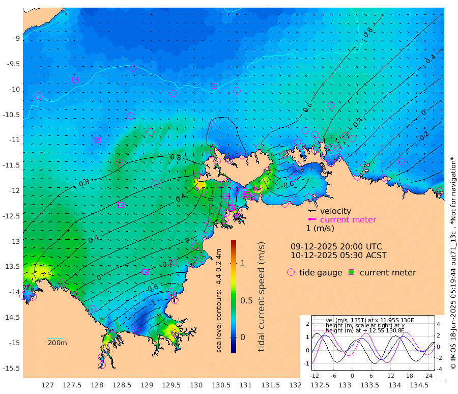 54cm/s -101T +4cm/s rms + 6cm/s 51T. Darwin_C1 52m 33cm/s -91T +4cm/s rms + 7cm/s -161T. Darwin_CW1 22m 24cm/s -108T +4cm/s rms + 8cm/s 61T. Darwin_CW2 34m 56cm/s -138T +3cm/s rms + 9cm/s 98T. Darwin_CW3 22m 47cm/s -91T +5cm/s rms + 7cm/s 88T. Darwin_C3 56m 21cm/s -115T +2cm/s rms + 9cm/s -126T. Darwin_CTbW 22m 14cm/s 143T +9cm/s rms + 2cm/s -110T. NWSLYN 196m 30cm/s 100T +1cm/s rms + 1cm/s -47T. DARBGF 30m 13cm/s 43T +7cm/s rms + 2cm/s -137T. ITFTIS 464m 13cm/s 67T +9cm/s rms + 1cm/s 74T. ITFMHB 146m 20cm/s 109T +4cm/s rms + 1cm/s -134T. ITFJBG 61m 27cm/s 102T +6cm/s rms + 4cm/s 121T. ITFFTB 108m 32cm/s 134T +4cm/s rms + 3cm/s 80T. NRSDAR 19m 27cm Carronade Island 28cm Guy Point 36cm Napier Broome Bay -7cm Lesueur Island -82cm Reveley Island -63cm Rocky Island -142cm Cape Domett -124cm Lacrosse Island -183cm Adolphus Island -181cm Pender Point -190cm Wyndham 65cm The Boxers 73cm Unnamed Shoal 92cm Loxton Shoal -147cm Pelican Island 76cm Calder Shoal 80cm Evans Shoal -225cm Quoin Island -98cm Port Keats -104cm Jones Point -230cm Catfish Island -28cm Cape Scott Offshore 10cm Cape Ford -26cm Anson Bay 81cm Goodrich Bank -21cm Peron Island North -14cm Point Jenny -10cm Native Point -25cm Fish Reef -25cm Tapa Bay 50cm Point Fawcett (Offshore) -42cm Burge Point -20cm Munkunuwa -2cm Beagle A -45cm Parsons Bank -45cm Fenton Patches 79cm Lynedoch Bank -54cm Hancox Shoal Area -52cm Nightcliff -53cm Darwin -22cm Charles Point Patches -72cm Glyde Point -119cm Chambers Bay -130cm Point Stuart -82cm Cape Hotham -105cm Christine Reef -151cm West Alligator Head -168cm East Field Island -85cm Two Hills Bay 35cm Newby Shoal -70cm Camp Point -20cm Medina Inlet South 60cm South Barlow Point 70cm St. Asaph Bay 84cm Cape Van Dieman 85cm Snake Bay 74cm Cache Point 85cm Echo Shoal 52cm Point Jahleel (Off) 11cm Cape Don 53cm Port Essington 48cm Smith Point - West 50cm NW Peacock Island 67cm North Of Jones Shoal 22cm Peacock Island 34cm Point David 48cm D'urville Point 58cm Money Shoal 27cm Copeland Island 32cm Cape Cockburn 37cm One Tree Point 29cm Hogmany Shoal 35cm New Year Island - West 30cm Grant Island 4cm Aurari Bay -17cm Cuthbert Point 9cm North Goulburn Island -16cm Paxie Shoal -54cm Entrance Island -83cm Yabooma Island