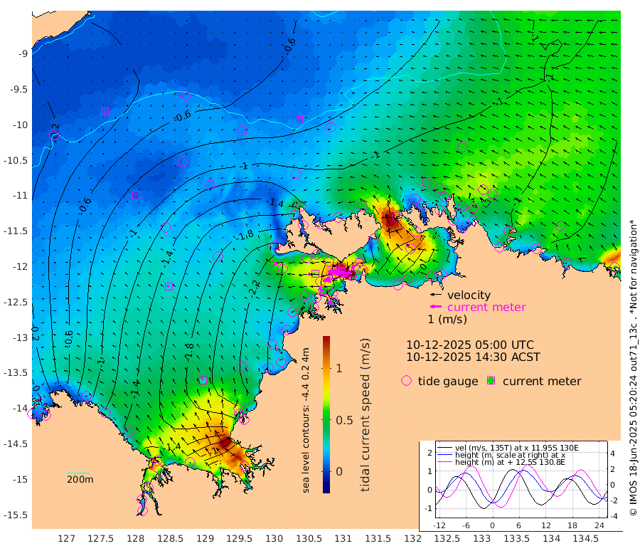 221cm/s -102T +4cm/s rms + 6cm/s 51T. Darwin_C1 52m 156cm/s -89T +4cm/s rms + 7cm/s -161T. Darwin_CW1 22m 115cm/s -108T +4cm/s rms + 8cm/s 61T. Darwin_CW2 34m 91cm/s -127T +3cm/s rms + 9cm/s 98T. Darwin_CW3 22m 156cm/s -91T +5cm/s rms + 7cm/s 88T. Darwin_C3 56m 123cm/s -115T +2cm/s rms + 9cm/s -126T. Darwin_CTbW 22m 9cm/s -51T +9cm/s rms + 2cm/s -110T. NWSLYN 196m 65cm/s -93T +1cm/s rms + 1cm/s -47T. DARBGF 30m 8cm/s -161T +7cm/s rms + 2cm/s -137T. ITFTIS 464m 5cm/s -27T +9cm/s rms + 1cm/s 74T. ITFMHB 146m 29cm/s -21T +4cm/s rms + 1cm/s -134T. ITFJBG 61m 21cm/s -47T +6cm/s rms + 4cm/s 121T. ITFFTB 108m 50cm/s -66T +4cm/s rms + 3cm/s 80T. NRSDAR 19m 29cm Carronade Island 32cm Guy Point 19cm Napier Broome Bay -60cm Lesueur Island -121cm Reveley Island -80cm Rocky Island -148cm Cape Domett -138cm Lacrosse Island -103cm Adolphus Island -29cm Pender Point 14cm Wyndham -104cm The Boxers -129cm Unnamed Shoal -55cm Loxton Shoal -167cm Pelican Island -97cm Calder Shoal -64cm Evans Shoal -113cm Quoin Island -216cm Port Keats -198cm Jones Point -62cm Catfish Island -204cm Cape Scott Offshore -247cm Cape Ford -229cm Anson Bay -82cm Goodrich Bank -214cm Peron Island North -210cm Point Jenny -212cm Native Point -221cm Fish Reef -229cm Tapa Bay -169cm Point Fawcett (Offshore) -231cm Burge Point -229cm Munkunuwa -190cm Beagle A -228cm Parsons Bank -215cm Fenton Patches -66cm Lynedoch Bank -209cm Hancox Shoal Area -224cm Nightcliff -246cm Darwin -242cm Charles Point Patches -144cm Glyde Point -52cm Chambers Bay -40cm Point Stuart -104cm Cape Hotham -51cm Christine Reef -32cm West Alligator Head 8cm East Field Island -72cm Two Hills Bay -160cm Newby Shoal -71cm Camp Point -235cm Medina Inlet South -156cm South Barlow Point -128cm St. Asaph Bay -89cm Cape Van Dieman -101cm Snake Bay -86cm Cache Point -18cm Echo Shoal -87cm Point Jahleel (Off) -102cm Cape Don -92cm Port Essington -90cm Smith Point - West -83cm NW Peacock Island -82cm North Of Jones Shoal -29cm Peacock Island -81cm Point David -89cm D'urville Point -73cm Money Shoal -76cm Copeland Island -102cm Cape Cockburn -86cm One Tree Point -91cm Hogmany Shoal -81cm New Year Island - West -84cm Grant Island -73cm Aurari Bay -70cm Cuthbert Point -81cm North Goulburn Island -71cm Paxie Shoal -48cm Entrance Island -21cm Yabooma Island