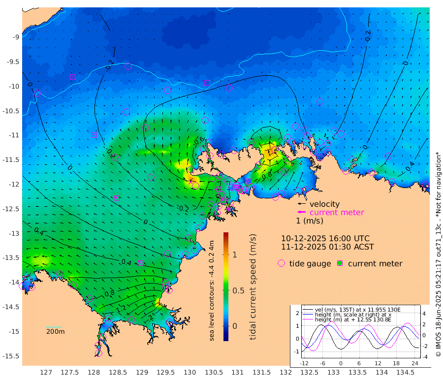 44cm/s -102T +4cm/s rms + 6cm/s 51T. Darwin_C1 52m 21cm/s -88T +4cm/s rms + 7cm/s -161T. Darwin_CW1 22m 16cm/s -115T +4cm/s rms + 8cm/s 61T. Darwin_CW2 34m 9cm/s -29T +3cm/s rms + 9cm/s 98T. Darwin_CW3 22m 4cm/s 136T +5cm/s rms + 7cm/s 88T. Darwin_C3 56m 23cm/s -119T +2cm/s rms + 9cm/s -126T. Darwin_CTbW 22m 4cm/s -10T +9cm/s rms + 2cm/s -110T. NWSLYN 196m 46cm/s -85T +1cm/s rms + 1cm/s -47T. DARBGF 30m 6cm/s -49T +7cm/s rms + 2cm/s -137T. ITFTIS 464m 14cm/s -19T +9cm/s rms + 1cm/s 74T. ITFMHB 146m 35cm/s -32T +4cm/s rms + 1cm/s -134T. ITFJBG 61m 34cm/s -47T +6cm/s rms + 4cm/s 121T. ITFFTB 108m 45cm/s -55T +4cm/s rms + 3cm/s 80T. NRSDAR 19m 107cm Carronade Island 110cm Guy Point 120cm Napier Broome Bay 96cm Lesueur Island 99cm Reveley Island 79cm Rocky Island 151cm Cape Domett 136cm Lacrosse Island 181cm Adolphus Island 262cm Pender Point 291cm Wyndham 3cm The Boxers -12cm Unnamed Shoal -8cm Loxton Shoal 119cm Pelican Island -16cm Calder Shoal -26cm Evans Shoal 228cm Quoin Island 70cm Port Keats 70cm Jones Point 251cm Catfish Island 10cm Cape Scott Offshore -22cm Cape Ford -3cm Anson Bay -36cm Goodrich Bank -10cm Peron Island North -10cm Point Jenny -10cm Native Point -11cm Fish Reef -6cm Tapa Bay -39cm Point Fawcett (Offshore) 9cm Burge Point -24cm Munkunuwa -16cm Beagle A -5cm Parsons Bank 6cm Fenton Patches -25cm Lynedoch Bank 9cm Hancox Shoal Area 5cm Nightcliff 12cm Darwin -3cm Charles Point Patches 58cm Glyde Point 121cm Chambers Bay 136cm Point Stuart 71cm Cape Hotham 111cm Christine Reef 156cm West Alligator Head 188cm East Field Island 87cm Two Hills Bay 3cm Newby Shoal 89cm Camp Point -11cm Medina Inlet South -50cm South Barlow Point -46cm St. Asaph Bay -41cm Cape Van Dieman -43cm Snake Bay -33cm Cache Point 1cm Echo Shoal -23cm Point Jahleel (Off) 5cm Cape Don -29cm Port Essington -35cm Smith Point - West -32cm NW Peacock Island -36cm North Of Jones Shoal -13cm Peacock Island -22cm Point David -36cm D'urville Point -26cm Money Shoal -22cm Copeland Island -25cm Cape Cockburn -22cm One Tree Point -10cm Hogmany Shoal -14cm New Year Island - West -15cm Grant Island -9cm Aurari Bay 11cm Cuthbert Point -6cm North Goulburn Island 30cm Paxie Shoal 42cm Entrance Island 59cm Yabooma Island