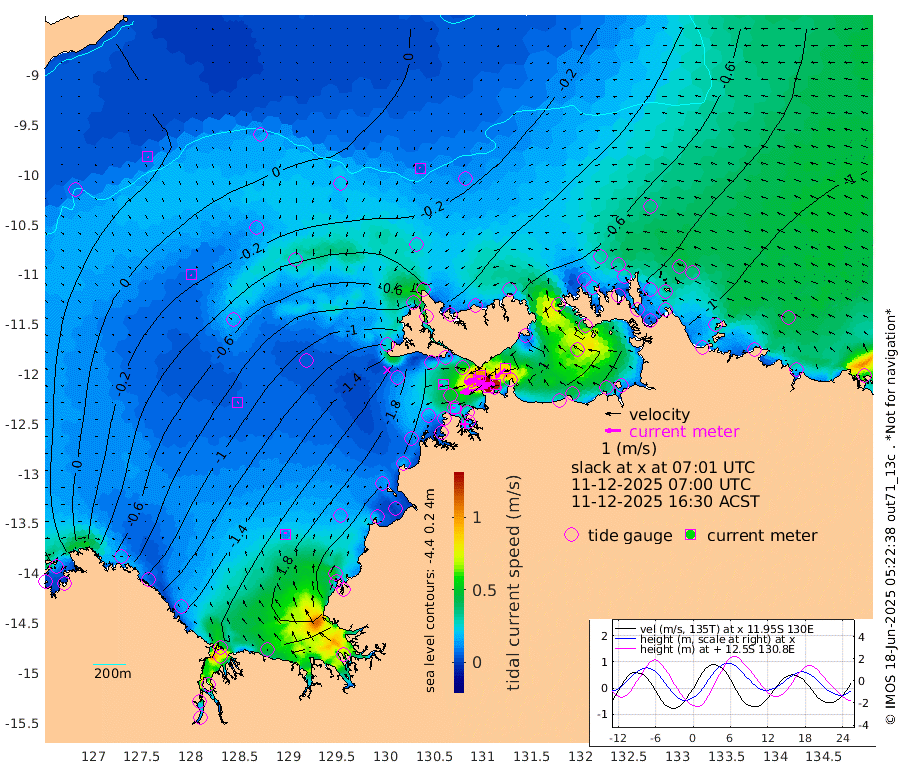 181cm/s -101T +4cm/s rms + 6cm/s 51T. Darwin_C1 52m 123cm/s -90T +4cm/s rms + 7cm/s -161T. Darwin_CW1 22m 85cm/s -106T +4cm/s rms + 8cm/s 61T. Darwin_CW2 34m 85cm/s -133T +3cm/s rms + 9cm/s 98T. Darwin_CW3 22m 132cm/s -91T +5cm/s rms + 7cm/s 88T. Darwin_C3 56m 102cm/s -115T +2cm/s rms + 9cm/s -126T. Darwin_CTbW 22m 6cm/s -56T +9cm/s rms + 2cm/s -110T. NWSLYN 196m 29cm/s -98T +1cm/s rms + 1cm/s -47T. DARBGF 30m 6cm/s 148T +7cm/s rms + 2cm/s -137T. ITFTIS 464m 5cm/s 127T +9cm/s rms + 1cm/s 74T. ITFMHB 146m 11cm/s 11T +4cm/s rms + 1cm/s -134T. ITFJBG 61m 5cm/s 75T +6cm/s rms + 4cm/s 121T. ITFFTB 108m 22cm/s -80T +4cm/s rms + 3cm/s 80T. NRSDAR 19m 36cm Carronade Island 38cm Guy Point 27cm Napier Broome Bay -47cm Lesueur Island -122cm Reveley Island -68cm Rocky Island -179cm Cape Domett -158cm Lacrosse Island -162cm Adolphus Island -124cm Pender Point -100cm Wyndham -44cm The Boxers -70cm Unnamed Shoal 8cm Loxton Shoal -196cm Pelican Island -27cm Calder Shoal -4cm Evans Shoal -204cm Quoin Island -202cm Port Keats -196cm Jones Point -194cm Catfish Island -161cm Cape Scott Offshore -151cm Cape Ford -182cm Anson Bay -20cm Goodrich Bank -162cm Peron Island North -151cm Point Jenny -151cm Native Point -164cm Fish Reef -174cm Tapa Bay -95cm Point Fawcett (Offshore) -179cm Burge Point -167cm Munkunuwa -121cm Beagle A -186cm Parsons Bank -162cm Fenton Patches -13cm Lynedoch Bank -176cm Hancox Shoal Area -180cm Nightcliff -205cm Darwin -188cm Charles Point Patches -145cm Glyde Point -108cm Chambers Bay -107cm Point Stuart -123cm Cape Hotham -93cm Christine Reef -111cm West Alligator Head -91cm East Field Island -106cm Two Hills Bay -86cm Newby Shoal -97cm Camp Point -176cm Medina Inlet South -80cm South Barlow Point -53cm St. Asaph Bay -25cm Cape Van Dieman -35cm Snake Bay -27cm Cache Point 36cm Echo Shoal -40cm Point Jahleel (Off) -79cm Cape Don -52cm Port Essington -48cm Smith Point - West -46cm NW Peacock Island -36cm North Of Jones Shoal -14cm Peacock Island -68cm Point David -52cm D'urville Point -43cm Money Shoal -66cm Copeland Island -87cm Cape Cockburn -67cm One Tree Point -85cm Hogmany Shoal -65cm New Year Island - West -71cm Grant Island -79cm Aurari Bay -92cm Cuthbert Point -86cm North Goulburn Island -104cm Paxie Shoal -99cm Entrance Island -103cm Yabooma Island