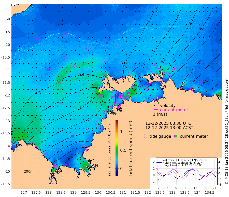 35cm/s 81T +4cm/s rms + 6cm/s 51T. Darwin_C1 52m 13cm/s 85T +4cm/s rms + 7cm/s -161T. Darwin_CW1 22m 18cm/s 70T +4cm/s rms + 8cm/s 61T. Darwin_CW2 34m 27cm/s 44T +3cm/s rms + 9cm/s 98T. Darwin_CW3 22m 30cm/s 90T +5cm/s rms + 7cm/s 88T. Darwin_C3 56m 18cm/s 65T +2cm/s rms + 9cm/s -126T. Darwin_CTbW 22m 4cm/s -25T +9cm/s rms + 2cm/s -110T. NWSLYN 196m 18cm/s -81T +1cm/s rms + 1cm/s -47T. DARBGF 30m 10cm/s -124T +7cm/s rms + 2cm/s -137T. ITFTIS 464m 9cm/s -89T +9cm/s rms + 1cm/s 74T. ITFMHB 146m 10cm/s -67T +4cm/s rms + 1cm/s -134T. ITFJBG 61m 19cm/s -74T +6cm/s rms + 4cm/s 121T. ITFFTB 108m 27cm/s -51T +4cm/s rms + 3cm/s 80T. NRSDAR 19m -38cm Carronade Island -37cm Guy Point -46cm Napier Broome Bay -8cm Lesueur Island 43cm Reveley Island -21cm Rocky Island 90cm Cape Domett 79cm Lacrosse Island 112cm Adolphus Island 108cm Pender Point 119cm Wyndham -59cm The Boxers -54cm Unnamed Shoal -85cm Loxton Shoal 106cm Pelican Island -68cm Calder Shoal -64cm Evans Shoal 158cm Quoin Island 63cm Port Keats 78cm Jones Point 211cm Catfish Island 27cm Cape Scott Offshore -14cm Cape Ford 32cm Anson Bay -63cm Goodrich Bank 26cm Peron Island North 12cm Point Jenny 6cm Native Point 23cm Fish Reef 21cm Tapa Bay -29cm Point Fawcett (Offshore) 29cm Burge Point 11cm Munkunuwa -9cm Beagle A 40cm Parsons Bank 23cm Fenton Patches -61cm Lynedoch Bank 48cm Hancox Shoal Area 40cm Nightcliff 45cm Darwin 26cm Charles Point Patches 62cm Glyde Point 105cm Chambers Bay 114cm Point Stuart 77cm Cape Hotham 84cm Christine Reef 128cm West Alligator Head 137cm East Field Island 81cm Two Hills Bay -45cm Newby Shoal 63cm Camp Point 17cm Medina Inlet South -46cm South Barlow Point -53cm St. Asaph Bay -62cm Cape Van Dieman -62cm Snake Bay -50cm Cache Point -79cm Echo Shoal -33cm Point Jahleel (Off) 10cm Cape Don -20cm Port Essington -20cm Smith Point - West -17cm NW Peacock Island -29cm North Of Jones Shoal -8cm Peacock Island 14cm Point David -13cm D'urville Point -14cm Money Shoal 21cm Copeland Island 29cm Cape Cockburn 10cm One Tree Point 30cm Hogmany Shoal 8cm New Year Island - West 15cm Grant Island 43cm Aurari Bay 66cm Cuthbert Point 43cm North Goulburn Island 76cm Paxie Shoal 103cm Entrance Island 148cm Yabooma Island