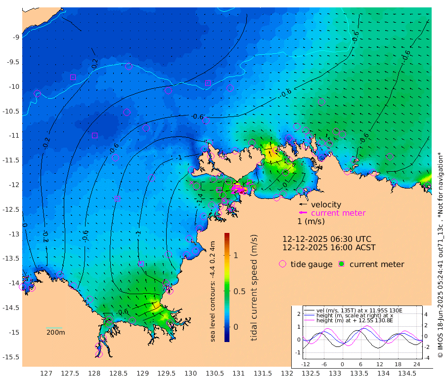 134cm/s -102T +4cm/s rms + 6cm/s 51T. Darwin_C1 52m 89cm/s -89T +4cm/s rms + 7cm/s -161T. Darwin_CW1 22m 70cm/s -107T +4cm/s rms + 8cm/s 61T. Darwin_CW2 34m 54cm/s -125T +3cm/s rms + 9cm/s 98T. Darwin_CW3 22m 95cm/s -91T +5cm/s rms + 7cm/s 88T. Darwin_C3 56m 75cm/s -115T +2cm/s rms + 9cm/s -126T. Darwin_CTbW 22m 7cm/s -38T +9cm/s rms + 2cm/s -110T. NWSLYN 196m 40cm/s -92T +1cm/s rms + 1cm/s -47T. DARBGF 30m 5cm/s -157T +7cm/s rms + 2cm/s -137T. ITFTIS 464m 2cm/s -34T +9cm/s rms + 1cm/s 74T. ITFMHB 146m 19cm/s -24T +4cm/s rms + 1cm/s -134T. ITFJBG 61m 13cm/s -45T +6cm/s rms + 4cm/s 121T. ITFFTB 108m 33cm/s -67T +4cm/s rms + 3cm/s 80T. NRSDAR 19m 43cm Carronade Island 45cm Guy Point 33cm Napier Broome Bay -10cm Lesueur Island -45cm Reveley Island -46cm Rocky Island -56cm Cape Domett -47cm Lacrosse Island -26cm Adolphus Island 18cm Pender Point 49cm Wyndham -55cm The Boxers -79cm Unnamed Shoal -29cm Loxton Shoal -71cm Pelican Island -49cm Calder Shoal -34cm Evans Shoal -30cm Quoin Island -104cm Port Keats -93cm Jones Point -7cm Catfish Island -104cm Cape Scott Offshore -103cm Cape Ford -122cm Anson Bay -47cm Goodrich Bank -109cm Peron Island North -105cm Point Jenny -109cm Native Point -110cm Fish Reef -119cm Tapa Bay -89cm Point Fawcett (Offshore) -111cm Burge Point -122cm Munkunuwa -91cm Beagle A -119cm Parsons Bank -102cm Fenton Patches -40cm Lynedoch Bank -105cm Hancox Shoal Area -112cm Nightcliff -126cm Darwin -125cm Charles Point Patches -64cm Glyde Point -6cm Chambers Bay 3cm Point Stuart -39cm Cape Hotham -4cm Christine Reef 10cm West Alligator Head 38cm East Field Island -22cm Two Hills Bay -75cm Newby Shoal -21cm Camp Point -123cm Medina Inlet South -88cm South Barlow Point -70cm St. Asaph Bay -52cm Cape Van Dieman -61cm Snake Bay -46cm Cache Point -3cm Echo Shoal -47cm Point Jahleel (Off) -52cm Cape Don -53cm Port Essington -51cm Smith Point - West -47cm NW Peacock Island -46cm North Of Jones Shoal -17cm Peacock Island -49cm Point David -52cm D'urville Point -41cm Money Shoal -45cm Copeland Island -56cm Cape Cockburn -50cm One Tree Point -51cm Hogmany Shoal -48cm New Year Island - West -49cm Grant Island -43cm Aurari Bay -38cm Cuthbert Point -47cm North Goulburn Island -38cm Paxie Shoal -21cm Entrance Island 1cm Yabooma Island