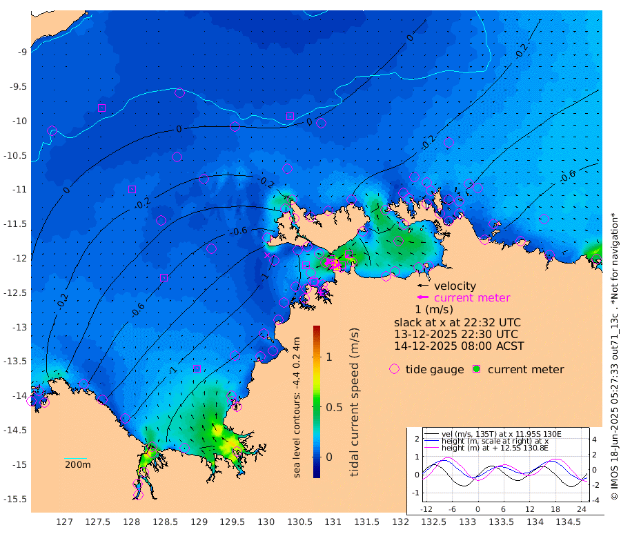 77cm/s -101T +4cm/s rms + 6cm/s 51T. Darwin_C1 52m 52cm/s -90T +4cm/s rms + 7cm/s -161T. Darwin_CW1 22m 52cm/s -106T +4cm/s rms + 8cm/s 61T. Darwin_CW2 34m 43cm/s -136T +3cm/s rms + 9cm/s 98T. Darwin_CW3 22m 86cm/s -90T +5cm/s rms + 7cm/s 88T. Darwin_C3 56m 44cm/s -115T +2cm/s rms + 9cm/s -126T. Darwin_CTbW 22m 6cm/s 167T +9cm/s rms + 2cm/s -110T. NWSLYN 196m 17cm/s -104T +1cm/s rms + 1cm/s -47T. DARBGF 30m 3cm/s 72T +7cm/s rms + 2cm/s -137T. ITFTIS 464m 5cm/s 32T +9cm/s rms + 1cm/s 74T. ITFMHB 146m 8cm/s 30T +4cm/s rms + 1cm/s -134T. ITFJBG 61m 4cm/s 47T +6cm/s rms + 4cm/s 121T. ITFFTB 108m 10cm/s -83T +4cm/s rms + 3cm/s 80T. NRSDAR 19m -17cm Carronade Island -11cm Guy Point -15cm Napier Broome Bay -70cm Lesueur Island -111cm Reveley Island -69cm Rocky Island -158cm Cape Domett -153cm Lacrosse Island -166cm Adolphus Island -123cm Pender Point -127cm Wyndham -34cm The Boxers -33cm Unnamed Shoal 10cm Loxton Shoal -165cm Pelican Island -25cm Calder Shoal -2cm Evans Shoal -194cm Quoin Island -155cm Port Keats -153cm Jones Point -237cm Catfish Island -122cm Cape Scott Offshore -112cm Cape Ford -131cm Anson Bay -6cm Goodrich Bank -127cm Peron Island North -119cm Point Jenny -114cm Native Point -135cm Fish Reef -126cm Tapa Bay -71cm Point Fawcett (Offshore) -142cm Burge Point -112cm Munkunuwa -113cm Beagle A -132cm Parsons Bank -142cm Fenton Patches -1cm Lynedoch Bank -132cm Hancox Shoal Area -145cm Nightcliff -148cm Darwin -133cm Charles Point Patches -124cm Glyde Point -123cm Chambers Bay -121cm Point Stuart -118cm Cape Hotham -109cm Christine Reef -131cm West Alligator Head -129cm East Field Island -108cm Two Hills Bay -86cm Newby Shoal -94cm Camp Point -127cm Medina Inlet South -50cm South Barlow Point -36cm St. Asaph Bay -8cm Cape Van Dieman -11cm Snake Bay -19cm Cache Point 10cm Echo Shoal -29cm Point Jahleel (Off) -62cm Cape Don -32cm Port Essington -35cm Smith Point - West -30cm NW Peacock Island -25cm North Of Jones Shoal -10cm Peacock Island -33cm Point David -34cm D'urville Point -23cm Money Shoal -36cm Copeland Island -59cm Cape Cockburn -39cm One Tree Point -44cm Hogmany Shoal -39cm New Year Island - West -39cm Grant Island -54cm Aurari Bay -64cm Cuthbert Point -54cm North Goulburn Island -60cm Paxie Shoal -79cm Entrance Island -93cm Yabooma Island