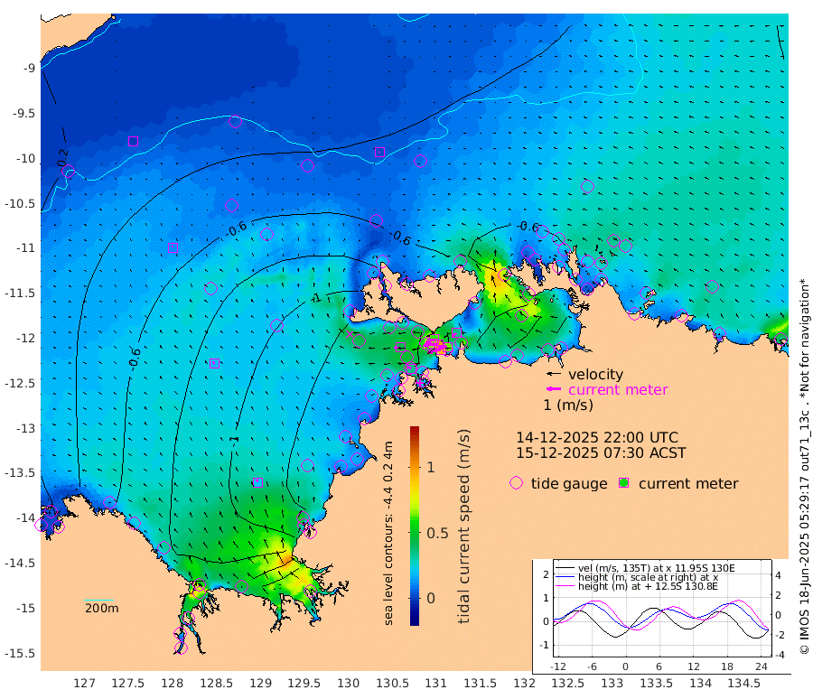 95cm/s -101T +4cm/s rms + 6cm/s 51T. Darwin_C1 52m 63cm/s -90T +4cm/s rms + 7cm/s -161T. Darwin_CW1 22m 66cm/s -106T +4cm/s rms + 8cm/s 61T. Darwin_CW2 34m 35cm/s -131T +3cm/s rms + 9cm/s 98T. Darwin_CW3 22m 97cm/s -91T +5cm/s rms + 7cm/s 88T. Darwin_C3 56m 61cm/s -115T +2cm/s rms + 9cm/s -126T. Darwin_CTbW 22m 2cm/s -118T +9cm/s rms + 2cm/s -110T. NWSLYN 196m 43cm/s -93T +1cm/s rms + 1cm/s -47T. DARBGF 30m 0cm/s -59T +7cm/s rms + 2cm/s -137T. ITFTIS 464m 11cm/s -7T +9cm/s rms + 1cm/s 74T. ITFMHB 146m 21cm/s -16T +4cm/s rms + 1cm/s -134T. ITFJBG 61m 18cm/s -39T +6cm/s rms + 4cm/s 121T. ITFFTB 108m 36cm/s -63T +4cm/s rms + 3cm/s 80T. NRSDAR 19m -11cm Carronade Island -8cm Guy Point -8cm Napier Broome Bay -63cm Lesueur Island -88cm Reveley Island -45cm Rocky Island -108cm Cape Domett -113cm Lacrosse Island -95cm Adolphus Island -28cm Pender Point -21cm Wyndham -65cm The Boxers -69cm Unnamed Shoal -29cm Loxton Shoal -122cm Pelican Island -66cm Calder Shoal -40cm Evans Shoal -103cm Quoin Island -137cm Port Keats -127cm Jones Point -139cm Catfish Island -140cm Cape Scott Offshore -124cm Cape Ford -153cm Anson Bay -46cm Goodrich Bank -146cm Peron Island North -140cm Point Jenny -137cm Native Point -151cm Fish Reef -146cm Tapa Bay -113cm Point Fawcett (Offshore) -148cm Burge Point -136cm Munkunuwa -135cm Beagle A -142cm Parsons Bank -148cm Fenton Patches -36cm Lynedoch Bank -138cm Hancox Shoal Area -158cm Nightcliff -153cm Darwin -149cm Charles Point Patches -105cm Glyde Point -75cm Chambers Bay -60cm Point Stuart -90cm Cape Hotham -66cm Christine Reef -60cm West Alligator Head -42cm East Field Island -74cm Two Hills Bay -112cm Newby Shoal -61cm Camp Point -147cm Medina Inlet South -94cm South Barlow Point -81cm St. Asaph Bay -50cm Cape Van Dieman -55cm Snake Bay -56cm Cache Point -24cm Echo Shoal -59cm Point Jahleel (Off) -73cm Cape Don -58cm Port Essington -64cm Smith Point - West -57cm NW Peacock Island -60cm North Of Jones Shoal -21cm Peacock Island -52cm Point David -62cm D'urville Point -48cm Money Shoal -51cm Copeland Island -77cm Cape Cockburn -59cm One Tree Point -58cm Hogmany Shoal -57cm New Year Island - West -55cm Grant Island -60cm Aurari Bay -56cm Cuthbert Point -61cm North Goulburn Island -49cm Paxie Shoal -55cm Entrance Island -52cm Yabooma Island