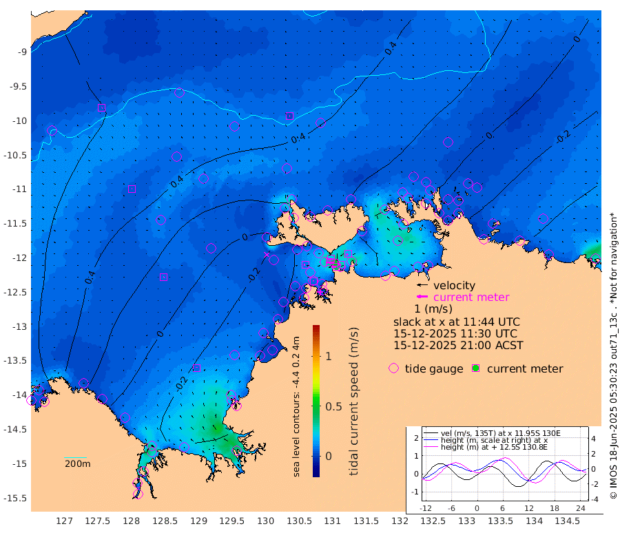 41cm/s -103T +4cm/s rms + 6cm/s 51T. Darwin_C1 52m 29cm/s -87T +4cm/s rms + 7cm/s -161T. Darwin_CW1 22m 32cm/s -108T +4cm/s rms + 8cm/s 61T. Darwin_CW2 34m 17cm/s -125T +3cm/s rms + 9cm/s 98T. Darwin_CW3 22m 49cm/s -92T +5cm/s rms + 7cm/s 88T. Darwin_C3 56m 24cm/s -115T +2cm/s rms + 9cm/s -126T. Darwin_CTbW 22m 1cm/s 81T +9cm/s rms + 2cm/s -110T. NWSLYN 196m 10cm/s -93T +1cm/s rms + 1cm/s -47T. DARBGF 30m 4cm/s 48T +7cm/s rms + 2cm/s -137T. ITFTIS 464m 5cm/s 67T +9cm/s rms + 1cm/s 74T. ITFMHB 146m 8cm/s 2T +4cm/s rms + 1cm/s -134T. ITFJBG 61m 6cm/s 37T +6cm/s rms + 4cm/s 121T. ITFFTB 108m 8cm/s -79T +4cm/s rms + 3cm/s 80T. NRSDAR 19m 85cm Carronade Island 89cm Guy Point 83cm Napier Broome Bay 50cm Lesueur Island 3cm Reveley Island 7cm Rocky Island -20cm Cape Domett -12cm Lacrosse Island -10cm Adolphus Island 6cm Pender Point 17cm Wyndham 41cm The Boxers 20cm Unnamed Shoal 68cm Loxton Shoal -45cm Pelican Island 51cm Calder Shoal 51cm Evans Shoal -38cm Quoin Island -30cm Port Keats -49cm Jones Point -82cm Catfish Island -27cm Cape Scott Offshore 6cm Cape Ford -39cm Anson Bay 41cm Goodrich Bank -23cm Peron Island North -22cm Point Jenny -20cm Native Point -29cm Fish Reef -32cm Tapa Bay 8cm Point Fawcett (Offshore) -25cm Burge Point -32cm Munkunuwa -3cm Beagle A -37cm Parsons Bank -23cm Fenton Patches 44cm Lynedoch Bank -36cm Hancox Shoal Area -32cm Nightcliff -40cm Darwin -30cm Charles Point Patches -29cm Glyde Point -26cm Chambers Bay -28cm Point Stuart -24cm Cape Hotham -11cm Christine Reef -31cm West Alligator Head -24cm East Field Island -19cm Two Hills Bay 37cm Newby Shoal -12cm Camp Point -29cm Medina Inlet South 17cm South Barlow Point 27cm St. Asaph Bay 38cm Cape Van Dieman 37cm Snake Bay 37cm Cache Point 75cm Echo Shoal 28cm Point Jahleel (Off) 3cm Cape Don 17cm Port Essington 18cm Smith Point - West 19cm NW Peacock Island 29cm North Of Jones Shoal 8cm Peacock Island 0cm Point David 15cm D'urville Point 20cm Money Shoal -3cm Copeland Island 2cm Cape Cockburn 4cm One Tree Point 0cm Hogmany Shoal 6cm New Year Island - West 3cm Grant Island -16cm Aurari Bay -23cm Cuthbert Point -10cm North Goulburn Island -30cm Paxie Shoal -37cm Entrance Island -53cm Yabooma Island