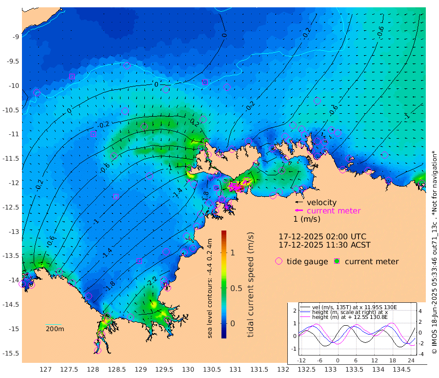114cm/s -101T +4cm/s rms + 6cm/s 51T. Darwin_C1 52m 117cm/s -91T +4cm/s rms + 7cm/s -161T. Darwin_CW1 22m 56cm/s -105T +4cm/s rms + 8cm/s 61T. Darwin_CW2 34m 65cm/s -138T +3cm/s rms + 9cm/s 98T. Darwin_CW3 22m 110cm/s -90T +5cm/s rms + 7cm/s 88T. Darwin_C3 56m 58cm/s -115T +2cm/s rms + 9cm/s -126T. Darwin_CTbW 22m 7cm/s -168T +9cm/s rms + 2cm/s -110T. NWSLYN 196m 7cm/s -153T +1cm/s rms + 1cm/s -47T. DARBGF 30m 8cm/s 148T +7cm/s rms + 2cm/s -137T. ITFTIS 464m 12cm/s 165T +9cm/s rms + 1cm/s 74T. ITFMHB 146m 9cm/s 112T +4cm/s rms + 1cm/s -134T. ITFJBG 61m 17cm/s 134T +6cm/s rms + 4cm/s 121T. ITFFTB 108m 8cm/s 159T +4cm/s rms + 3cm/s 80T. NRSDAR 19m -33cm Carronade Island -28cm Guy Point -37cm Napier Broome Bay -112cm Lesueur Island -162cm Reveley Island -80cm Rocky Island -232cm Cape Domett -221cm Lacrosse Island -241cm Adolphus Island -216cm Pender Point -222cm Wyndham -50cm The Boxers -63cm Unnamed Shoal 4cm Loxton Shoal -231cm Pelican Island -32cm Calder Shoal -1cm Evans Shoal -300cm Quoin Island -219cm Port Keats -215cm Jones Point -308cm Catfish Island -158cm Cape Scott Offshore -153cm Cape Ford -171cm Anson Bay -10cm Goodrich Bank -158cm Peron Island North -142cm Point Jenny -140cm Native Point -165cm Fish Reef -160cm Tapa Bay -82cm Point Fawcett (Offshore) -185cm Burge Point -140cm Munkunuwa -132cm Beagle A -170cm Parsons Bank -176cm Fenton Patches -8cm Lynedoch Bank -171cm Hancox Shoal Area -183cm Nightcliff -203cm Darwin -182cm Charles Point Patches -171cm Glyde Point -159cm Chambers Bay -170cm Point Stuart -161cm Cape Hotham -145cm Christine Reef -182cm West Alligator Head -187cm East Field Island -145cm Two Hills Bay -110cm Newby Shoal -142cm Camp Point -165cm Medina Inlet South -61cm South Barlow Point -41cm St. Asaph Bay -11cm Cape Van Dieman -20cm Snake Bay -22cm Cache Point 11cm Echo Shoal -36cm Point Jahleel (Off) -81cm Cape Don -42cm Port Essington -37cm Smith Point - West -36cm NW Peacock Island -30cm North Of Jones Shoal -12cm Peacock Island -52cm Point David -38cm D'urville Point -37cm Money Shoal -53cm Copeland Island -79cm Cape Cockburn -57cm One Tree Point -69cm Hogmany Shoal -60cm New Year Island - West -59cm Grant Island -76cm Aurari Bay -88cm Cuthbert Point -73cm North Goulburn Island -101cm Paxie Shoal -104cm Entrance Island -124cm Yabooma Island