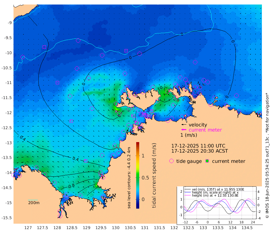2cm/s 157T +4cm/s rms + 6cm/s 51T. Darwin_C1 52m 25cm/s 87T +4cm/s rms + 7cm/s -161T. Darwin_CW1 22m 13cm/s -116T +4cm/s rms + 8cm/s 61T. Darwin_CW2 34m 19cm/s 26T +3cm/s rms + 9cm/s 98T. Darwin_CW3 22m 7cm/s 115T +5cm/s rms + 7cm/s 88T. Darwin_C3 56m 12cm/s -119T +2cm/s rms + 9cm/s -126T. Darwin_CTbW 22m 4cm/s 14T +9cm/s rms + 2cm/s -110T. NWSLYN 196m 27cm/s -83T +1cm/s rms + 1cm/s -47T. DARBGF 30m 3cm/s -37T +7cm/s rms + 2cm/s -137T. ITFTIS 464m 6cm/s -13T +9cm/s rms + 1cm/s 74T. ITFMHB 146m 24cm/s -30T +4cm/s rms + 1cm/s -134T. ITFJBG 61m 21cm/s -43T +6cm/s rms + 4cm/s 121T. ITFFTB 108m 30cm/s -55T +4cm/s rms + 3cm/s 80T. NRSDAR 19m 97cm Carronade Island 102cm Guy Point 96cm Napier Broome Bay 99cm Lesueur Island 95cm Reveley Island 47cm Rocky Island 123cm Cape Domett 119cm Lacrosse Island 146cm Adolphus Island 184cm Pender Point 201cm Wyndham 28cm The Boxers 9cm Unnamed Shoal 31cm Loxton Shoal 100cm Pelican Island 26cm Calder Shoal 19cm Evans Shoal 174cm Quoin Island 73cm Port Keats 68cm Jones Point 160cm Catfish Island 32cm Cape Scott Offshore 57cm Cape Ford 19cm Anson Bay 6cm Goodrich Bank 28cm Peron Island North 15cm Point Jenny 14cm Native Point 22cm Fish Reef 19cm Tapa Bay 9cm Point Fawcett (Offshore) 33cm Burge Point 9cm Munkunuwa 18cm Beagle A 19cm Parsons Bank 29cm Fenton Patches 10cm Lynedoch Bank 27cm Hancox Shoal Area 25cm Nightcliff 35cm Darwin 29cm Charles Point Patches 53cm Glyde Point 81cm Chambers Bay 94cm Point Stuart 64cm Cape Hotham 77cm Christine Reef 106cm West Alligator Head 125cm East Field Island 68cm Two Hills Bay 34cm Newby Shoal 67cm Camp Point 20cm Medina Inlet South -2cm South Barlow Point 3cm St. Asaph Bay 2cm Cape Van Dieman 2cm Snake Bay 9cm Cache Point 40cm Echo Shoal 13cm Point Jahleel (Off) 20cm Cape Don 4cm Port Essington 0cm Smith Point - West 1cm NW Peacock Island 5cm North Of Jones Shoal 0cm Peacock Island -2cm Point David -3cm D'urville Point 2cm Money Shoal -2cm Copeland Island 4cm Cape Cockburn 2cm One Tree Point 13cm Hogmany Shoal 4cm New Year Island - West 4cm Grant Island -1cm Aurari Bay 6cm Cuthbert Point 4cm North Goulburn Island 15cm Paxie Shoal 15cm Entrance Island 20cm Yabooma Island