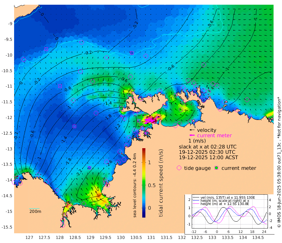 183cm/s -101T +4cm/s rms + 6cm/s 51T. Darwin_C1 52m 166cm/s -91T +4cm/s rms + 7cm/s -161T. Darwin_CW1 22m 94cm/s -106T +4cm/s rms + 8cm/s 61T. Darwin_CW2 34m 88cm/s -136T +3cm/s rms + 9cm/s 98T. Darwin_CW3 22m 155cm/s -90T +5cm/s rms + 7cm/s 88T. Darwin_C3 56m 106cm/s -115T +2cm/s rms + 9cm/s -126T. Darwin_CTbW 22m 6cm/s -133T +9cm/s rms + 2cm/s -110T. NWSLYN 196m 30cm/s -102T +1cm/s rms + 1cm/s -47T. DARBGF 30m 10cm/s 162T +7cm/s rms + 2cm/s -137T. ITFTIS 464m 9cm/s 169T +9cm/s rms + 1cm/s 74T. ITFMHB 146m 8cm/s 22T +4cm/s rms + 1cm/s -134T. ITFJBG 61m 7cm/s 133T +6cm/s rms + 4cm/s 121T. ITFFTB 108m 19cm/s -81T +4cm/s rms + 3cm/s 80T. NRSDAR 19m -14cm Carronade Island -12cm Guy Point -20cm Napier Broome Bay -126cm Lesueur Island -190cm Reveley Island -83cm Rocky Island -260cm Cape Domett -251cm Lacrosse Island -255cm Adolphus Island -200cm Pender Point -191cm Wyndham -81cm The Boxers -106cm Unnamed Shoal -13cm Loxton Shoal -274cm Pelican Island -61cm Calder Shoal -19cm Evans Shoal -312cm Quoin Island -275cm Port Keats -264cm Jones Point -294cm Catfish Island -220cm Cape Scott Offshore -207cm Cape Ford -243cm Anson Bay -38cm Goodrich Bank -216cm Peron Island North -205cm Point Jenny -204cm Native Point -222cm Fish Reef -232cm Tapa Bay -132cm Point Fawcett (Offshore) -245cm Burge Point -206cm Munkunuwa -186cm Beagle A -233cm Parsons Bank -236cm Fenton Patches -30cm Lynedoch Bank -235cm Hancox Shoal Area -253cm Nightcliff -270cm Darwin -252cm Charles Point Patches -205cm Glyde Point -163cm Chambers Bay -161cm Point Stuart -180cm Cape Hotham -149cm Christine Reef -169cm West Alligator Head -159cm East Field Island -152cm Two Hills Bay -150cm Newby Shoal -154cm Camp Point -230cm Medina Inlet South -109cm South Barlow Point -82cm St. Asaph Bay -41cm Cape Van Dieman -54cm Snake Bay -48cm Cache Point 5cm Echo Shoal -63cm Point Jahleel (Off) -106cm Cape Don -67cm Port Essington -64cm Smith Point - West -61cm NW Peacock Island -55cm North Of Jones Shoal -20cm Peacock Island -79cm Point David -66cm D'urville Point -59cm Money Shoal -78cm Copeland Island -106cm Cape Cockburn -81cm One Tree Point -98cm Hogmany Shoal -86cm New Year Island - West -85cm Grant Island -100cm Aurari Bay -105cm Cuthbert Point -96cm North Goulburn Island -121cm Paxie Shoal -116cm Entrance Island -125cm Yabooma Island