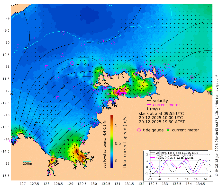 199cm/s 78T +4cm/s rms + 6cm/s 51T. Darwin_C1 52m 170cm/s 93T +4cm/s rms + 7cm/s -161T. Darwin_CW1 22m 112cm/s 72T +4cm/s rms + 8cm/s 61T. Darwin_CW2 34m 109cm/s 46T +3cm/s rms + 9cm/s 98T. Darwin_CW3 22m 175cm/s 89T +5cm/s rms + 7cm/s 88T. Darwin_C3 56m 102cm/s 66T +2cm/s rms + 9cm/s -126T. Darwin_CTbW 22m 5cm/s 4T +9cm/s rms + 2cm/s -110T. NWSLYN 196m 28cm/s 73T +1cm/s rms + 1cm/s -47T. DARBGF 30m 3cm/s -91T +7cm/s rms + 2cm/s -137T. ITFTIS 464m 9cm/s -147T +9cm/s rms + 1cm/s 74T. ITFMHB 146m 13cm/s -146T +4cm/s rms + 1cm/s -134T. ITFJBG 61m 8cm/s -113T +6cm/s rms + 4cm/s 121T. ITFFTB 108m 15cm/s 91T +4cm/s rms + 3cm/s 80T. NRSDAR 19m 1cm Carronade Island 6cm Guy Point 1cm Napier Broome Bay 98cm Lesueur Island 186cm Reveley Island 113cm Rocky Island 260cm Cape Domett 243cm Lacrosse Island 270cm Adolphus Island 212cm Pender Point 196cm Wyndham 55cm The Boxers 46cm Unnamed Shoal -1cm Loxton Shoal 279cm Pelican Island 40cm Calder Shoal 6cm Evans Shoal 322cm Quoin Island 267cm Port Keats 250cm Jones Point 291cm Catfish Island 204cm Cape Scott Offshore 195cm Cape Ford 220cm Anson Bay 15cm Goodrich Bank 192cm Peron Island North 190cm Point Jenny 188cm Native Point 202cm Fish Reef 214cm Tapa Bay 109cm Point Fawcett (Offshore) 222cm Burge Point 195cm Munkunuwa 168cm Beagle A 210cm Parsons Bank 219cm Fenton Patches 4cm Lynedoch Bank 216cm Hancox Shoal Area 234cm Nightcliff 243cm Darwin 225cm Charles Point Patches 181cm Glyde Point 152cm Chambers Bay 140cm Point Stuart 152cm Cape Hotham 141cm Christine Reef 153cm West Alligator Head 144cm East Field Island 127cm Two Hills Bay 120cm Newby Shoal 128cm Camp Point 209cm Medina Inlet South 84cm South Barlow Point 63cm St. Asaph Bay 16cm Cape Van Dieman 19cm Snake Bay 22cm Cache Point -13cm Echo Shoal 37cm Point Jahleel (Off) 74cm Cape Don 33cm Port Essington 35cm Smith Point - West 26cm NW Peacock Island 21cm North Of Jones Shoal 7cm Peacock Island 24cm Point David 29cm D'urville Point 15cm Money Shoal 25cm Copeland Island 37cm Cape Cockburn 29cm One Tree Point 35cm Hogmany Shoal 30cm New Year Island - West 30cm Grant Island 41cm Aurari Bay 49cm Cuthbert Point 39cm North Goulburn Island 55cm Paxie Shoal 56cm Entrance Island 59cm Yabooma Island