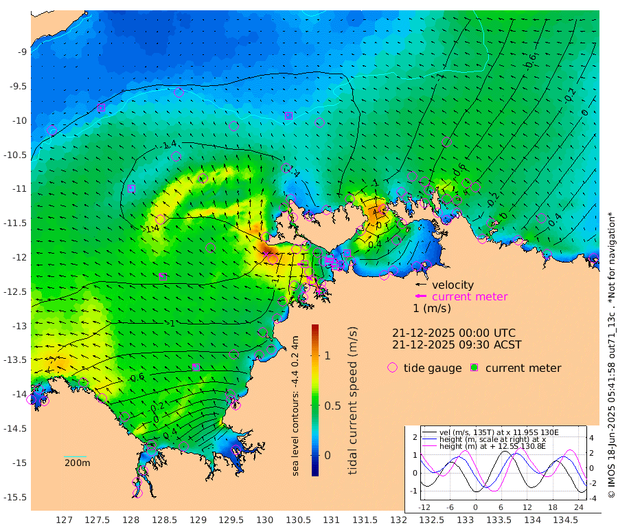 28cm/s -107T +4cm/s rms + 6cm/s 51T. Darwin_C1 52m 7cm/s 66T +4cm/s rms + 7cm/s -161T. Darwin_CW1 22m 24cm/s -100T +4cm/s rms + 8cm/s 61T. Darwin_CW2 34m 14cm/s 28T +3cm/s rms + 9cm/s 98T. Darwin_CW3 22m 17cm/s -95T +5cm/s rms + 7cm/s 88T. Darwin_C3 56m 26cm/s -117T +2cm/s rms + 9cm/s -126T. Darwin_CTbW 22m 11cm/s -38T +9cm/s rms + 2cm/s -110T. NWSLYN 196m 63cm/s -88T +1cm/s rms + 1cm/s -47T. DARBGF 30m 12cm/s -118T +7cm/s rms + 2cm/s -137T. ITFTIS 464m 21cm/s -41T +9cm/s rms + 1cm/s 74T. ITFMHB 146m 33cm/s -37T +4cm/s rms + 1cm/s -134T. ITFJBG 61m 45cm/s -58T +6cm/s rms + 4cm/s 121T. ITFFTB 108m 72cm/s -56T +4cm/s rms + 3cm/s 80T. NRSDAR 19m -76cm Carronade Island -78cm Guy Point -80cm Napier Broome Bay -68cm Lesueur Island -25cm Reveley Island -41cm Rocky Island 29cm Cape Domett 12cm Lacrosse Island 82cm Adolphus Island 128cm Pender Point 151cm Wyndham -133cm The Boxers -124cm Unnamed Shoal -128cm Loxton Shoal 31cm Pelican Island -145cm Calder Shoal -119cm Evans Shoal 160cm Quoin Island -30cm Port Keats -15cm Jones Point 195cm Catfish Island -85cm Cape Scott Offshore -196cm Cape Ford -89cm Anson Bay -124cm Goodrich Bank -95cm Peron Island North -126cm Point Jenny -130cm Native Point -108cm Fish Reef -114cm Tapa Bay -143cm Point Fawcett (Offshore) -102cm Burge Point -110cm Munkunuwa -140cm Beagle A -79cm Parsons Bank -108cm Fenton Patches -105cm Lynedoch Bank -68cm Hancox Shoal Area -87cm Nightcliff -71cm Darwin -98cm Charles Point Patches -14cm Glyde Point 60cm Chambers Bay 88cm Point Stuart 17cm Cape Hotham 37cm Christine Reef 106cm West Alligator Head 137cm East Field Island 36cm Two Hills Bay -156cm Newby Shoal 23cm Camp Point -105cm Medina Inlet South -140cm South Barlow Point -143cm St. Asaph Bay -128cm Cape Van Dieman -124cm Snake Bay -121cm Cache Point -117cm Echo Shoal -99cm Point Jahleel (Off) -56cm Cape Don -82cm Port Essington -89cm Smith Point - West -80cm NW Peacock Island -88cm North Of Jones Shoal -28cm Peacock Island -39cm Point David -80cm D'urville Point -66cm Money Shoal -30cm Copeland Island -41cm Cape Cockburn -42cm One Tree Point -40cm Hogmany Shoal -44cm New Year Island - West -40cm Grant Island -1cm Aurari Bay 17cm Cuthbert Point -10cm North Goulburn Island 39cm Paxie Shoal 56cm Entrance Island 113cm Yabooma Island