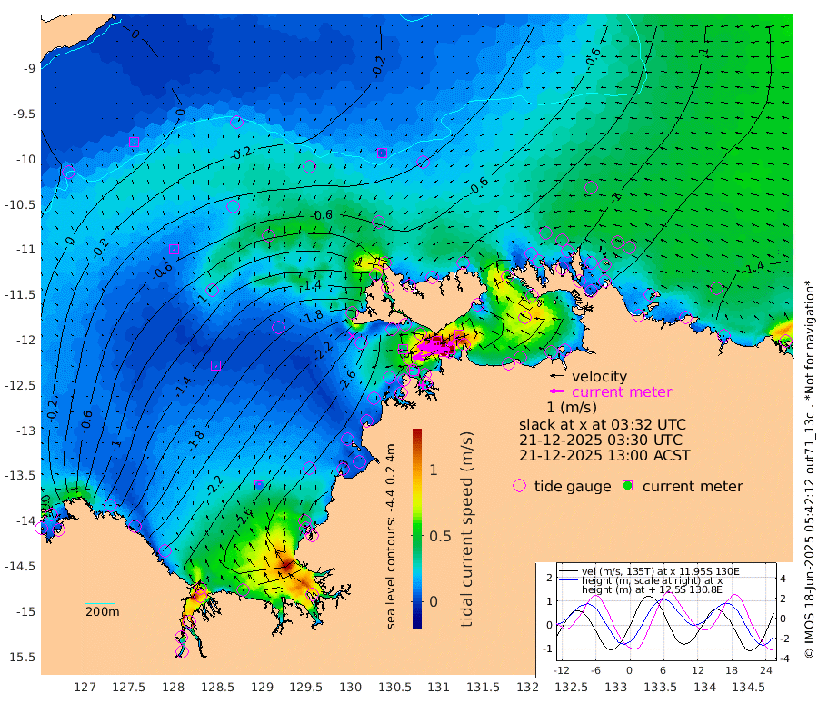 224cm/s -102T +4cm/s rms + 6cm/s 51T. Darwin_C1 52m 180cm/s -90T +4cm/s rms + 7cm/s -161T. Darwin_CW1 22m 111cm/s -106T +4cm/s rms + 8cm/s 61T. Darwin_CW2 34m 108cm/s -135T +3cm/s rms + 9cm/s 98T. Darwin_CW3 22m 167cm/s -90T +5cm/s rms + 7cm/s 88T. Darwin_C3 56m 131cm/s -115T +2cm/s rms + 9cm/s -126T. Darwin_CTbW 22m 6cm/s -109T +9cm/s rms + 2cm/s -110T. NWSLYN 196m 37cm/s -100T +1cm/s rms + 1cm/s -47T. DARBGF 30m 11cm/s 163T +7cm/s rms + 2cm/s -137T. ITFTIS 464m 9cm/s 167T +9cm/s rms + 1cm/s 74T. ITFMHB 146m 10cm/s 12T +4cm/s rms + 1cm/s -134T. ITFJBG 61m 5cm/s 126T +6cm/s rms + 4cm/s 121T. ITFFTB 108m 25cm/s -79T +4cm/s rms + 3cm/s 80T. NRSDAR 19m 0cm Carronade Island 0cm Guy Point -5cm Napier Broome Bay -124cm Lesueur Island -204cm Reveley Island -92cm Rocky Island -279cm Cape Domett -262cm Lacrosse Island -273cm Adolphus Island -206cm Pender Point -187cm Wyndham -88cm The Boxers -116cm Unnamed Shoal -14cm Loxton Shoal -300cm Pelican Island -65cm Calder Shoal -20cm Evans Shoal -321cm Quoin Island -307cm Port Keats -289cm Jones Point -266cm Catfish Island -242cm Cape Scott Offshore -241cm Cape Ford -270cm Anson Bay -46cm Goodrich Bank -234cm Peron Island North -232cm Point Jenny -233cm Native Point -242cm Fish Reef -264cm Tapa Bay -143cm Point Fawcett (Offshore) -273cm Burge Point -234cm Munkunuwa -206cm Beagle A -264cm Parsons Bank -264cm Fenton Patches -34cm Lynedoch Bank -266cm Hancox Shoal Area -283cm Nightcliff -302cm Darwin -283cm Charles Point Patches -221cm Glyde Point -167cm Chambers Bay -158cm Point Stuart -186cm Cape Hotham -157cm Christine Reef -164cm West Alligator Head -148cm East Field Island -153cm Two Hills Bay -164cm Newby Shoal -162cm Camp Point -257cm Medina Inlet South -124cm South Barlow Point -93cm St. Asaph Bay -50cm Cape Van Dieman -62cm Snake Bay -54cm Cache Point 13cm Echo Shoal -69cm Point Jahleel (Off) -114cm Cape Don -76cm Port Essington -74cm Smith Point - West -71cm NW Peacock Island -58cm North Of Jones Shoal -22cm Peacock Island -91cm Point David -76cm D'urville Point -68cm Money Shoal -89cm Copeland Island -114cm Cape Cockburn -89cm One Tree Point -114cm Hogmany Shoal -96cm New Year Island - West -97cm Grant Island -109cm Aurari Bay -119cm Cuthbert Point -108cm North Goulburn Island -133cm Paxie Shoal -128cm Entrance Island -132cm Yabooma Island