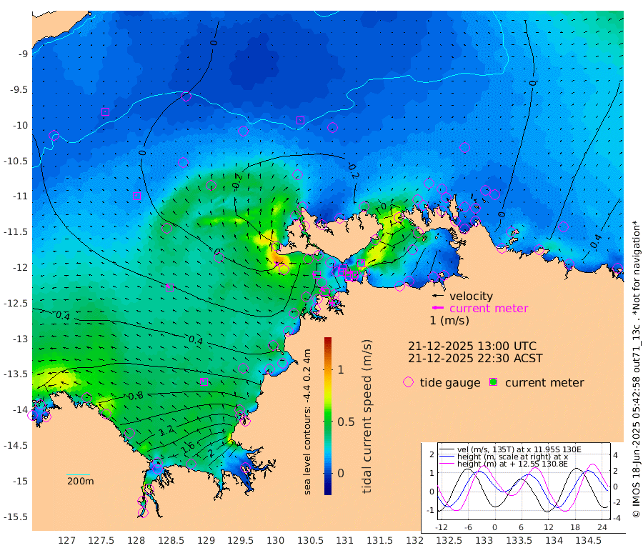 8cm/s 87T +4cm/s rms + 6cm/s 51T. Darwin_C1 52m 43cm/s 87T +4cm/s rms + 7cm/s -161T. Darwin_CW1 22m 10cm/s 83T +4cm/s rms + 8cm/s 61T. Darwin_CW2 34m 31cm/s 34T +3cm/s rms + 9cm/s 98T. Darwin_CW3 22m 50cm/s 93T +5cm/s rms + 7cm/s 88T. Darwin_C3 56m 2cm/s -166T +2cm/s rms + 9cm/s -126T. Darwin_CTbW 22m 4cm/s 8T +9cm/s rms + 2cm/s -110T. NWSLYN 196m 39cm/s -81T +1cm/s rms + 1cm/s -47T. DARBGF 30m 6cm/s -55T +7cm/s rms + 2cm/s -137T. ITFTIS 464m 12cm/s -25T +9cm/s rms + 1cm/s 74T. ITFMHB 146m 36cm/s -33T +4cm/s rms + 1cm/s -134T. ITFJBG 61m 35cm/s -48T +6cm/s rms + 4cm/s 121T. ITFFTB 108m 48cm/s -52T +4cm/s rms + 3cm/s 80T. NRSDAR 19m 112cm Carronade Island 118cm Guy Point 120cm Napier Broome Bay 127cm Lesueur Island 136cm Reveley Island 101cm Rocky Island 202cm Cape Domett 184cm Lacrosse Island 248cm Adolphus Island 300cm Pender Point 328cm Wyndham 32cm The Boxers 3cm Unnamed Shoal 22cm Loxton Shoal 180cm Pelican Island 13cm Calder Shoal 5cm Evans Shoal 312cm Quoin Island 125cm Port Keats 118cm Jones Point 351cm Catfish Island 59cm Cape Scott Offshore 19cm Cape Ford 47cm Anson Bay -8cm Goodrich Bank 42cm Peron Island North 25cm Point Jenny 23cm Native Point 35cm Fish Reef 35cm Tapa Bay 2cm Point Fawcett (Offshore) 46cm Burge Point 12cm Munkunuwa 19cm Beagle A 36cm Parsons Bank 43cm Fenton Patches 1cm Lynedoch Bank 52cm Hancox Shoal Area 46cm Nightcliff 66cm Darwin 55cm Charles Point Patches 93cm Glyde Point 147cm Chambers Bay 158cm Point Stuart 101cm Cape Hotham 129cm Christine Reef 178cm West Alligator Head 207cm East Field Island 114cm Two Hills Bay 34cm Newby Shoal 112cm Camp Point 36cm Medina Inlet South -14cm South Barlow Point -12cm St. Asaph Bay -15cm Cape Van Dieman -14cm Snake Bay -3cm Cache Point 31cm Echo Shoal 6cm Point Jahleel (Off) 34cm Cape Don 2cm Port Essington -3cm Smith Point - West -3cm NW Peacock Island -2cm North Of Jones Shoal -2cm Peacock Island -1cm Point David -7cm D'urville Point 1cm Money Shoal -1cm Copeland Island 6cm Cape Cockburn 5cm One Tree Point 18cm Hogmany Shoal 9cm New Year Island - West 8cm Grant Island 13cm Aurari Bay 32cm Cuthbert Point 17cm North Goulburn Island 44cm Paxie Shoal 50cm Entrance Island 63cm Yabooma Island