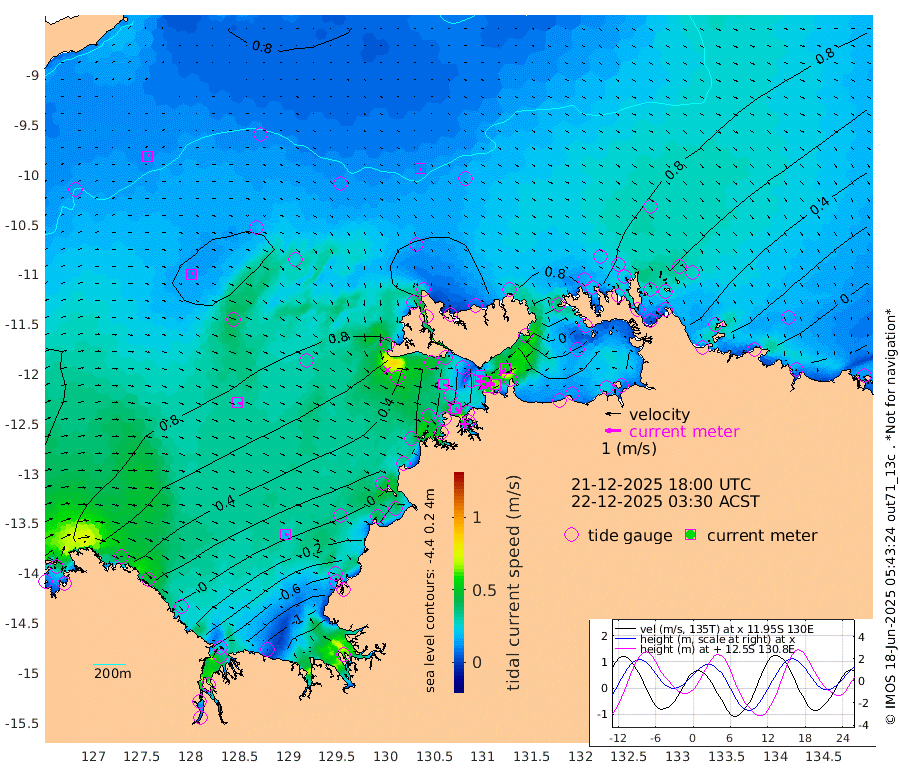 57cm/s -100T +4cm/s rms + 6cm/s 51T. Darwin_C1 52m 64cm/s -92T +4cm/s rms + 7cm/s -161T. Darwin_CW1 22m 22cm/s -107T +4cm/s rms + 8cm/s 61T. Darwin_CW2 34m 56cm/s -137T +3cm/s rms + 9cm/s 98T. Darwin_CW3 22m 54cm/s -91T +5cm/s rms + 7cm/s 88T. Darwin_C3 56m 18cm/s -113T +2cm/s rms + 9cm/s -126T. Darwin_CTbW 22m 11cm/s 141T +9cm/s rms + 2cm/s -110T. NWSLYN 196m 27cm/s 101T +1cm/s rms + 1cm/s -47T. DARBGF 30m 12cm/s 37T +7cm/s rms + 2cm/s -137T. ITFTIS 464m 13cm/s 61T +9cm/s rms + 1cm/s 74T. ITFMHB 146m 18cm/s 111T +4cm/s rms + 1cm/s -134T. ITFJBG 61m 25cm/s 103T +6cm/s rms + 4cm/s 121T. ITFFTB 108m 30cm/s 135T +4cm/s rms + 3cm/s 80T. NRSDAR 19m 50cm Carronade Island 47cm Guy Point 56cm Napier Broome Bay 24cm Lesueur Island -46cm Reveley Island -38cm Rocky Island -107cm Cape Domett -89cm Lacrosse Island -151cm Adolphus Island -149cm Pender Point -155cm Wyndham 75cm The Boxers 96cm Unnamed Shoal 84cm Loxton Shoal -113cm Pelican Island 81cm Calder Shoal 76cm Evans Shoal -212cm Quoin Island -70cm Port Keats -66cm Jones Point -218cm Catfish Island -14cm Cape Scott Offshore 70cm Cape Ford -13cm Anson Bay 84cm Goodrich Bank 0cm Peron Island North 14cm Point Jenny 19cm Native Point 1cm Fish Reef 3cm Tapa Bay 57cm Point Fawcett (Offshore) -8cm Burge Point 1cm Munkunuwa 29cm Beagle A -15cm Parsons Bank -7cm Fenton Patches 77cm Lynedoch Bank -24cm Hancox Shoal Area -26cm Nightcliff -27cm Darwin -3cm Charles Point Patches -39cm Glyde Point -82cm Chambers Bay -87cm Point Stuart -47cm Cape Hotham -67cm Christine Reef -105cm West Alligator Head -119cm East Field Island -51cm Two Hills Bay 62cm Newby Shoal -40cm Camp Point -1cm Medina Inlet South 66cm South Barlow Point 72cm St. Asaph Bay 88cm Cape Van Dieman 88cm Snake Bay 81cm Cache Point 76cm Echo Shoal 62cm Point Jahleel (Off) 26cm Cape Don 61cm Port Essington 59cm Smith Point - West 62cm NW Peacock Island 64cm North Of Jones Shoal 22cm Peacock Island 54cm Point David 61cm D'urville Point 63cm Money Shoal 47cm Copeland Island 56cm Cape Cockburn 49cm One Tree Point 62cm Hogmany Shoal 54cm New Year Island - West 52cm Grant Island 26cm Aurari Bay 14cm Cuthbert Point 32cm North Goulburn Island 6cm Paxie Shoal -10cm Entrance Island -42cm Yabooma Island