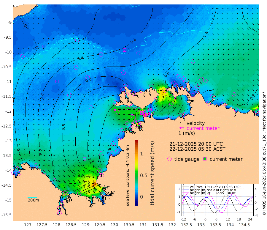 109cm/s 78T +4cm/s rms + 6cm/s 51T. Darwin_C1 52m 65cm/s 82T +4cm/s rms + 7cm/s -161T. Darwin_CW1 22m 34cm/s 76T +4cm/s rms + 8cm/s 61T. Darwin_CW2 34m 29cm/s 60T +3cm/s rms + 9cm/s 98T. Darwin_CW3 22m 30cm/s 87T +5cm/s rms + 7cm/s 88T. Darwin_C3 56m 75cm/s 62T +2cm/s rms + 9cm/s -126T. Darwin_CTbW 22m 7cm/s 127T +9cm/s rms + 2cm/s -110T. NWSLYN 196m 40cm/s 92T +1cm/s rms + 1cm/s -47T. DARBGF 30m 9cm/s 11T +7cm/s rms + 2cm/s -137T. ITFTIS 464m 8cm/s 34T +9cm/s rms + 1cm/s 74T. ITFMHB 146m 27cm/s 150T +4cm/s rms + 1cm/s -134T. ITFJBG 61m 19cm/s 119T +6cm/s rms + 4cm/s 121T. ITFFTB 108m 39cm/s 119T +4cm/s rms + 3cm/s 80T. NRSDAR 19m -64cm Carronade Island -68cm Guy Point -64cm Napier Broome Bay -3cm Lesueur Island 19cm Reveley Island -34cm Rocky Island 8cm Cape Domett 12cm Lacrosse Island -33cm Adolphus Island -97cm Pender Point -124cm Wyndham 42cm The Boxers 91cm Unnamed Shoal 7cm Loxton Shoal 34cm Pelican Island 39cm Calder Shoal 19cm Evans Shoal -56cm Quoin Island 79cm Port Keats 78cm Jones Point -116cm Catfish Island 91cm Cape Scott Offshore 135cm Cape Ford 116cm Anson Bay 48cm Goodrich Bank 101cm Peron Island North 111cm Point Jenny 115cm Native Point 107cm Fish Reef 124cm Tapa Bay 84cm Point Fawcett (Offshore) 119cm Burge Point 117cm Munkunuwa 101cm Beagle A 122cm Parsons Bank 114cm Fenton Patches 35cm Lynedoch Bank 112cm Hancox Shoal Area 120cm Nightcliff 123cm Darwin 124cm Charles Point Patches 62cm Glyde Point -10cm Chambers Bay -19cm Point Stuart 37cm Cape Hotham -3cm Christine Reef -33cm West Alligator Head -61cm East Field Island 10cm Two Hills Bay 77cm Newby Shoal 21cm Camp Point 117cm Medina Inlet South 88cm South Barlow Point 68cm St. Asaph Bay 55cm Cape Van Dieman 64cm Snake Bay 49cm Cache Point -19cm Echo Shoal 49cm Point Jahleel (Off) 52cm Cape Don 59cm Port Essington 59cm Smith Point - West 61cm NW Peacock Island 49cm North Of Jones Shoal 19cm Peacock Island 79cm Point David 67cm D'urville Point 60cm Money Shoal 77cm Copeland Island 90cm Cape Cockburn 70cm One Tree Point 88cm Hogmany Shoal 75cm New Year Island - West 77cm Grant Island 77cm Aurari Bay 71cm Cuthbert Point 75cm North Goulburn Island 74cm Paxie Shoal 64cm Entrance Island 56cm Yabooma Island