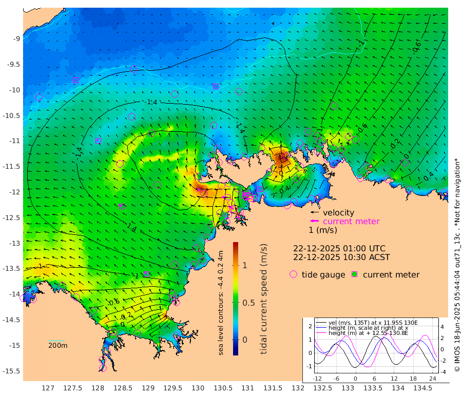 74cm/s -104T +4cm/s rms + 6cm/s 51T. Darwin_C1 52m 33cm/s -83T +4cm/s rms + 7cm/s -161T. Darwin_CW1 22m 46cm/s -106T +4cm/s rms + 8cm/s 61T. Darwin_CW2 34m 11cm/s -97T +3cm/s rms + 9cm/s 98T. Darwin_CW3 22m 48cm/s -92T +5cm/s rms + 7cm/s 88T. Darwin_C3 56m 49cm/s -117T +2cm/s rms + 9cm/s -126T. Darwin_CTbW 22m 11cm/s -41T +9cm/s rms + 2cm/s -110T. NWSLYN 196m 70cm/s -89T +1cm/s rms + 1cm/s -47T. DARBGF 30m 13cm/s -126T +7cm/s rms + 2cm/s -137T. ITFTIS 464m 19cm/s -43T +9cm/s rms + 1cm/s 74T. ITFMHB 146m 37cm/s -34T +4cm/s rms + 1cm/s -134T. ITFJBG 61m 46cm/s -58T +6cm/s rms + 4cm/s 121T. ITFFTB 108m 74cm/s -57T +4cm/s rms + 3cm/s 80T. NRSDAR 19m -59cm Carronade Island -59cm Guy Point -65cm Napier Broome Bay -71cm Lesueur Island -47cm Reveley Island -55cm Rocky Island -4cm Cape Domett -16cm Lacrosse Island 54cm Adolphus Island 115cm Pender Point 147cm Wyndham -143cm The Boxers -139cm Unnamed Shoal -125cm Loxton Shoal -6cm Pelican Island -151cm Calder Shoal -119cm Evans Shoal 129cm Quoin Island -77cm Port Keats -59cm Jones Point 184cm Catfish Island -121cm Cape Scott Offshore -248cm Cape Ford -130cm Anson Bay -130cm Goodrich Bank -133cm Peron Island North -165cm Point Jenny -169cm Native Point -150cm Fish Reef -157cm Tapa Bay -166cm Point Fawcett (Offshore) -150cm Burge Point -153cm Munkunuwa -175cm Beagle A -126cm Parsons Bank -153cm Fenton Patches -108cm Lynedoch Bank -111cm Hancox Shoal Area -131cm Nightcliff -122cm Darwin -146cm Charles Point Patches -46cm Glyde Point 47cm Chambers Bay 74cm Point Stuart -7cm Cape Hotham 22cm Christine Reef 93cm West Alligator Head 129cm East Field Island 20cm Two Hills Bay -182cm Newby Shoal 5cm Camp Point -149cm Medina Inlet South -162cm South Barlow Point -158cm St. Asaph Bay -136cm Cape Van Dieman -132cm Snake Bay -128cm Cache Point -106cm Echo Shoal -107cm Point Jahleel (Off) -73cm Cape Don -94cm Port Essington -100cm Smith Point - West -91cm NW Peacock Island -95cm North Of Jones Shoal -31cm Peacock Island -52cm Point David -91cm D'urville Point -76cm Money Shoal -43cm Copeland Island -59cm Cape Cockburn -56cm One Tree Point -55cm Hogmany Shoal -57cm New Year Island - West -54cm Grant Island -16cm Aurari Bay -1cm Cuthbert Point -25cm North Goulburn Island 21cm Paxie Shoal 41cm Entrance Island 99cm Yabooma Island