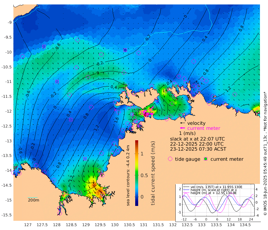 167cm/s 77T +4cm/s rms + 6cm/s 51T. Darwin_C1 52m 110cm/s 89T +4cm/s rms + 7cm/s -161T. Darwin_CW1 22m 62cm/s 74T +4cm/s rms + 8cm/s 61T. Darwin_CW2 34m 92cm/s 45T +3cm/s rms + 9cm/s 98T. Darwin_CW3 22m 88cm/s 89T +5cm/s rms + 7cm/s 88T. Darwin_C3 56m 85cm/s 65T +2cm/s rms + 9cm/s -126T. Darwin_CTbW 22m 3cm/s 79T +9cm/s rms + 2cm/s -110T. NWSLYN 196m 23cm/s 85T +1cm/s rms + 1cm/s -47T. DARBGF 30m 7cm/s -48T +7cm/s rms + 2cm/s -137T. ITFTIS 464m 10cm/s -30T +9cm/s rms + 1cm/s 74T. ITFMHB 146m 15cm/s -171T +4cm/s rms + 1cm/s -134T. ITFJBG 61m 6cm/s -102T +6cm/s rms + 4cm/s 121T. ITFFTB 108m 24cm/s 103T +4cm/s rms + 3cm/s 80T. NRSDAR 19m -117cm Carronade Island -119cm Guy Point -123cm Napier Broome Bay -18cm Lesueur Island 63cm Reveley Island -25cm Rocky Island 102cm Cape Domett 89cm Lacrosse Island 90cm Adolphus Island 19cm Pender Point -7cm Wyndham -13cm The Boxers 39cm Unnamed Shoal -65cm Loxton Shoal 140cm Pelican Island -26cm Calder Shoal -42cm Evans Shoal 113cm Quoin Island 153cm Port Keats 152cm Jones Point 40cm Catfish Island 116cm Cape Scott Offshore 109cm Cape Ford 146cm Anson Bay -11cm Goodrich Bank 118cm Peron Island North 116cm Point Jenny 117cm Native Point 120cm Fish Reef 144cm Tapa Bay 48cm Point Fawcett (Offshore) 144cm Burge Point 133cm Munkunuwa 89cm Beagle A 159cm Parsons Bank 136cm Fenton Patches -19cm Lynedoch Bank 157cm Hancox Shoal Area 159cm Nightcliff 170cm Darwin 151cm Charles Point Patches 112cm Glyde Point 65cm Chambers Bay 61cm Point Stuart 91cm Cape Hotham 58cm Christine Reef 59cm West Alligator Head 39cm East Field Island 64cm Two Hills Bay 34cm Newby Shoal 69cm Camp Point 135cm Medina Inlet South 47cm South Barlow Point 18cm St. Asaph Bay -4cm Cape Van Dieman 7cm Snake Bay -7cm Cache Point -91cm Echo Shoal 11cm Point Jahleel (Off) 47cm Cape Don 28cm Port Essington 28cm Smith Point - West 31cm NW Peacock Island 10cm North Of Jones Shoal 7cm Peacock Island 72cm Point David 39cm D'urville Point 32cm Money Shoal 74cm Copeland Island 84cm Cape Cockburn 59cm One Tree Point 84cm Hogmany Shoal 63cm New Year Island - West 69cm Grant Island 92cm Aurari Bay 99cm Cuthbert Point 86cm North Goulburn Island 112cm Paxie Shoal 117cm Entrance Island 136cm Yabooma Island