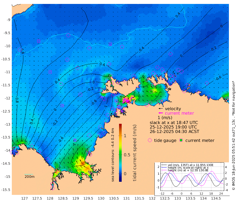 142cm/s -101T +4cm/s rms + 6cm/s 51T. Darwin_C1 52m 89cm/s -90T +4cm/s rms + 7cm/s -161T. Darwin_CW1 22m 68cm/s -107T +4cm/s rms + 8cm/s 61T. Darwin_CW2 34m 71cm/s -136T +3cm/s rms + 9cm/s 98T. Darwin_CW3 22m 100cm/s -91T +5cm/s rms + 7cm/s 88T. Darwin_C3 56m 80cm/s -115T +2cm/s rms + 9cm/s -126T. Darwin_CTbW 22m 10cm/s 152T +9cm/s rms + 2cm/s -110T. NWSLYN 196m 16cm/s -104T +1cm/s rms + 1cm/s -47T. DARBGF 30m 10cm/s 44T +7cm/s rms + 2cm/s -137T. ITFTIS 464m 12cm/s 47T +9cm/s rms + 1cm/s 74T. ITFMHB 146m 15cm/s 26T +4cm/s rms + 1cm/s -134T. ITFJBG 61m 14cm/s 65T +6cm/s rms + 4cm/s 121T. ITFFTB 108m 14cm/s -94T +4cm/s rms + 3cm/s 80T. NRSDAR 19m 79cm Carronade Island 78cm Guy Point 90cm Napier Broome Bay -4cm Lesueur Island -100cm Reveley Island -36cm Rocky Island -154cm Cape Domett -140cm Lacrosse Island -169cm Adolphus Island -103cm Pender Point -87cm Wyndham 30cm The Boxers 13cm Unnamed Shoal 73cm Loxton Shoal -179cm Pelican Island 33cm Calder Shoal 53cm Evans Shoal -198cm Quoin Island -167cm Port Keats -158cm Jones Point -135cm Catfish Island -112cm Cape Scott Offshore -72cm Cape Ford -128cm Anson Bay 39cm Goodrich Bank -109cm Peron Island North -104cm Point Jenny -102cm Native Point -111cm Fish Reef -126cm Tapa Bay -26cm Point Fawcett (Offshore) -135cm Burge Point -121cm Munkunuwa -84cm Beagle A -143cm Parsons Bank -135cm Fenton Patches 45cm Lynedoch Bank -146cm Hancox Shoal Area -159cm Nightcliff -152cm Darwin -122cm Charles Point Patches -113cm Glyde Point -105cm Chambers Bay -96cm Point Stuart -103cm Cape Hotham -94cm Christine Reef -107cm West Alligator Head -98cm East Field Island -83cm Two Hills Bay -27cm Newby Shoal -74cm Camp Point -119cm Medina Inlet South -18cm South Barlow Point 5cm St. Asaph Bay 37cm Cape Van Dieman 30cm Snake Bay 33cm Cache Point 83cm Echo Shoal 10cm Point Jahleel (Off) -27cm Cape Don 10cm Port Essington 2cm Smith Point - West 5cm NW Peacock Island 21cm North Of Jones Shoal 5cm Peacock Island -16cm Point David -1cm D'urville Point 16cm Money Shoal -20cm Copeland Island -25cm Cape Cockburn -10cm One Tree Point -18cm Hogmany Shoal -12cm New Year Island - West -18cm Grant Island -41cm Aurari Bay -48cm Cuthbert Point -36cm North Goulburn Island -50cm Paxie Shoal -78cm Entrance Island -98cm Yabooma Island