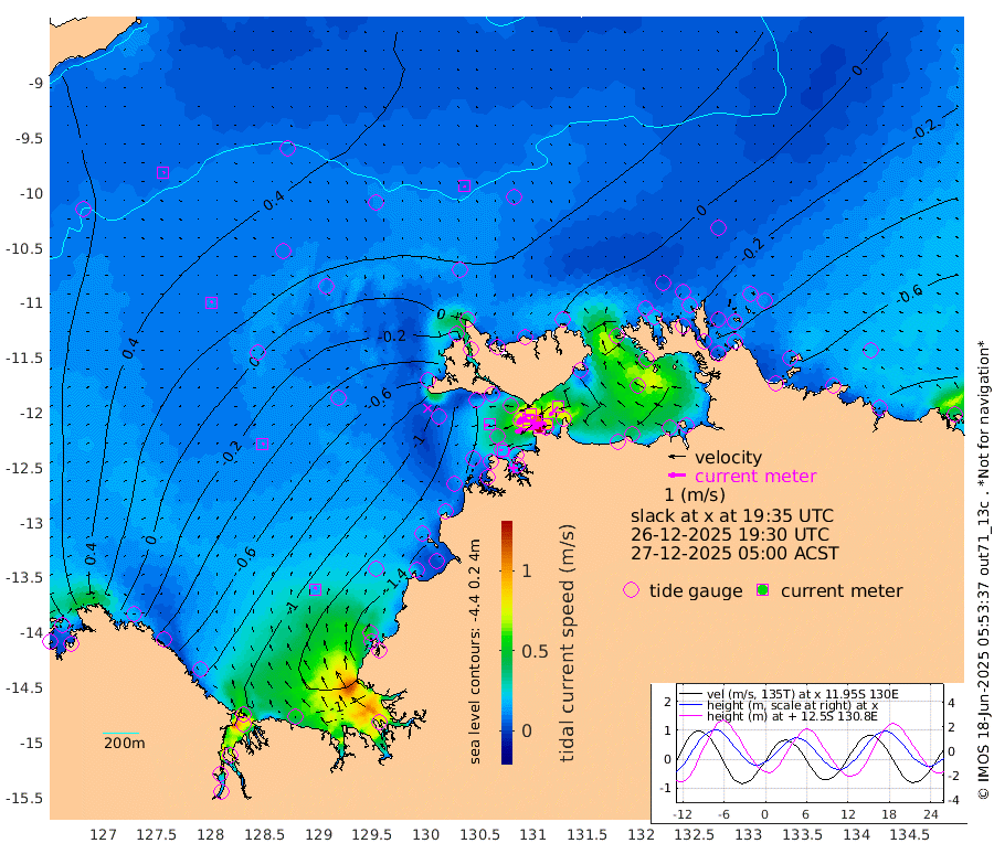 140cm/s -101T +4cm/s rms + 6cm/s 51T. Darwin_C1 52m 86cm/s -90T +4cm/s rms + 7cm/s -161T. Darwin_CW1 22m 73cm/s -106T +4cm/s rms + 8cm/s 61T. Darwin_CW2 34m 68cm/s -135T +3cm/s rms + 9cm/s 98T. Darwin_CW3 22m 107cm/s -91T +5cm/s rms + 7cm/s 88T. Darwin_C3 56m 80cm/s -115T +2cm/s rms + 9cm/s -126T. Darwin_CTbW 22m 8cm/s 157T +9cm/s rms + 2cm/s -110T. NWSLYN 196m 22cm/s -99T +1cm/s rms + 1cm/s -47T. DARBGF 30m 8cm/s 47T +7cm/s rms + 2cm/s -137T. ITFTIS 464m 11cm/s 40T +9cm/s rms + 1cm/s 74T. ITFMHB 146m 16cm/s 15T +4cm/s rms + 1cm/s -134T. ITFJBG 61m 11cm/s 47T +6cm/s rms + 4cm/s 121T. ITFFTB 108m 19cm/s -81T +4cm/s rms + 3cm/s 80T. NRSDAR 19m 63cm Carronade Island 62cm Guy Point 74cm Napier Broome Bay -22cm Lesueur Island -108cm Reveley Island -41cm Rocky Island -156cm Cape Domett -144cm Lacrosse Island -164cm Adolphus Island -91cm Pender Point -74cm Wyndham 6cm The Boxers -12cm Unnamed Shoal 52cm Loxton Shoal -181cm Pelican Island 10cm Calder Shoal 33cm Evans Shoal -180cm Quoin Island -175cm Port Keats -168cm Jones Point -120cm Catfish Island -127cm Cape Scott Offshore -114cm Cape Ford -144cm Anson Bay 17cm Goodrich Bank -129cm Peron Island North -126cm Point Jenny -125cm Native Point -132cm Fish Reef -147cm Tapa Bay -51cm Point Fawcett (Offshore) -154cm Burge Point -138cm Munkunuwa -108cm Beagle A -160cm Parsons Bank -154cm Fenton Patches 26cm Lynedoch Bank -161cm Hancox Shoal Area -173cm Nightcliff -168cm Darwin -143cm Charles Point Patches -123cm Glyde Point -106cm Chambers Bay -95cm Point Stuart -110cm Cape Hotham -97cm Christine Reef -104cm West Alligator Head -90cm East Field Island -88cm Two Hills Bay -54cm Newby Shoal -79cm Camp Point -137cm Medina Inlet South -42cm South Barlow Point -18cm St. Asaph Bay 13cm Cape Van Dieman 7cm Snake Bay 9cm Cache Point 65cm Echo Shoal -10cm Point Jahleel (Off) -43cm Cape Don -11cm Port Essington -19cm Smith Point - West -16cm NW Peacock Island 2cm North Of Jones Shoal -1cm Peacock Island -33cm Point David -22cm D'urville Point -3cm Money Shoal -37cm Copeland Island -47cm Cape Cockburn -27cm One Tree Point -42cm Hogmany Shoal -30cm New Year Island - West -36cm Grant Island -54cm Aurari Bay -62cm Cuthbert Point -52cm North Goulburn Island -60cm Paxie Shoal -88cm Entrance Island -101cm Yabooma Island