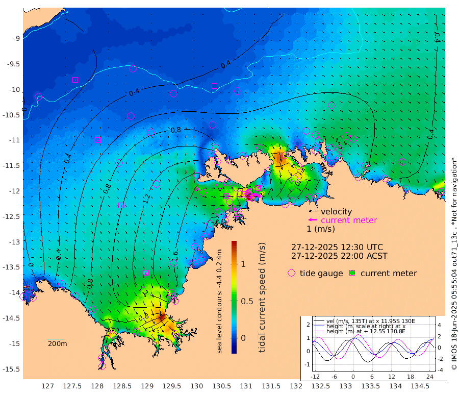 146cm/s 78T +4cm/s rms + 6cm/s 51T. Darwin_C1 52m 97cm/s 90T +4cm/s rms + 7cm/s -161T. Darwin_CW1 22m 83cm/s 74T +4cm/s rms + 8cm/s 61T. Darwin_CW2 34m 63cm/s 50T +3cm/s rms + 9cm/s 98T. Darwin_CW3 22m 116cm/s 89T +5cm/s rms + 7cm/s 88T. Darwin_C3 56m 81cm/s 64T +2cm/s rms + 9cm/s -126T. Darwin_CTbW 22m 2cm/s 14T +9cm/s rms + 2cm/s -110T. NWSLYN 196m 52cm/s 87T +1cm/s rms + 1cm/s -47T. DARBGF 30m 2cm/s 39T +7cm/s rms + 2cm/s -137T. ITFTIS 464m 10cm/s 174T +9cm/s rms + 1cm/s 74T. ITFMHB 146m 28cm/s 167T +4cm/s rms + 1cm/s -134T. ITFJBG 61m 20cm/s 145T +6cm/s rms + 4cm/s 121T. ITFFTB 108m 49cm/s 115T +4cm/s rms + 3cm/s 80T. NRSDAR 19m -39cm Carronade Island -45cm Guy Point -39cm Napier Broome Bay 31cm Lesueur Island 89cm Reveley Island 78cm Rocky Island 103cm Cape Domett 95cm Lacrosse Island 71cm Adolphus Island -10cm Pender Point -48cm Wyndham 67cm The Boxers 88cm Unnamed Shoal 28cm Loxton Shoal 113cm Pelican Island 70cm Calder Shoal 38cm Evans Shoal 46cm Quoin Island 162cm Port Keats 147cm Jones Point -42cm Catfish Island 144cm Cape Scott Offshore 208cm Cape Ford 162cm Anson Bay 55cm Goodrich Bank 162cm Peron Island North 165cm Point Jenny 168cm Native Point 173cm Fish Reef 176cm Tapa Bay 120cm Point Fawcett (Offshore) 190cm Burge Point 185cm Munkunuwa 161cm Beagle A 183cm Parsons Bank 183cm Fenton Patches 40cm Lynedoch Bank 163cm Hancox Shoal Area 181cm Nightcliff 186cm Darwin 175cm Charles Point Patches 105cm Glyde Point 30cm Chambers Bay 18cm Point Stuart 75cm Cape Hotham 36cm Christine Reef 12cm West Alligator Head -21cm East Field Island 46cm Two Hills Bay 132cm Newby Shoal 41cm Camp Point 179cm Medina Inlet South 119cm South Barlow Point 93cm St. Asaph Bay 61cm Cape Van Dieman 70cm Snake Bay 58cm Cache Point 0cm Echo Shoal 61cm Point Jahleel (Off) 67cm Cape Don 58cm Port Essington 63cm Smith Point - West 57cm NW Peacock Island 48cm North Of Jones Shoal 17cm Peacock Island 50cm Point David 62cm D'urville Point 40cm Money Shoal 46cm Copeland Island 67cm Cape Cockburn 51cm One Tree Point 50cm Hogmany Shoal 50cm New Year Island - West 54cm Grant Island 44cm Aurari Bay 39cm Cuthbert Point 50cm North Goulburn Island 24cm Paxie Shoal 30cm Entrance Island 2cm Yabooma Island