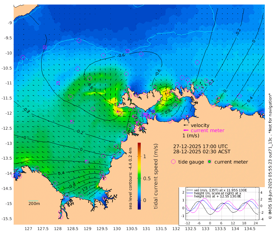 41cm/s -101T +4cm/s rms + 6cm/s 51T. Darwin_C1 52m 28cm/s -90T +4cm/s rms + 7cm/s -161T. Darwin_CW1 22m 17cm/s -109T +4cm/s rms + 8cm/s 61T. Darwin_CW2 34m 5cm/s -27T +3cm/s rms + 9cm/s 98T. Darwin_CW3 22m 7cm/s -114T +5cm/s rms + 7cm/s 88T. Darwin_C3 56m 22cm/s -118T +2cm/s rms + 9cm/s -126T. Darwin_CTbW 22m 6cm/s -30T +9cm/s rms + 2cm/s -110T. NWSLYN 196m 48cm/s -85T +1cm/s rms + 1cm/s -47T. DARBGF 30m 5cm/s -67T +7cm/s rms + 2cm/s -137T. ITFTIS 464m 17cm/s -20T +9cm/s rms + 1cm/s 74T. ITFMHB 146m 34cm/s -32T +4cm/s rms + 1cm/s -134T. ITFJBG 61m 36cm/s -48T +6cm/s rms + 4cm/s 121T. ITFFTB 108m 50cm/s -55T +4cm/s rms + 3cm/s 80T. NRSDAR 19m 55cm Carronade Island 55cm Guy Point 69cm Napier Broome Bay 46cm Lesueur Island 55cm Reveley Island 50cm Rocky Island 107cm Cape Domett 94cm Lacrosse Island 146cm Adolphus Island 214cm Pender Point 246cm Wyndham -33cm The Boxers -40cm Unnamed Shoal -42cm Loxton Shoal 83cm Pelican Island -52cm Calder Shoal -56cm Evans Shoal 207cm Quoin Island 36cm Port Keats 32cm Jones Point 243cm Catfish Island -17cm Cape Scott Offshore -119cm Cape Ford -23cm Anson Bay -63cm Goodrich Bank -41cm Peron Island North -44cm Point Jenny -45cm Native Point -42cm Fish Reef -40cm Tapa Bay -71cm Point Fawcett (Offshore) -25cm Burge Point -54cm Munkunuwa -51cm Beagle A -31cm Parsons Bank -27cm Fenton Patches -47cm Lynedoch Bank -16cm Hancox Shoal Area -15cm Nightcliff -14cm Darwin -33cm Charles Point Patches 33cm Glyde Point 98cm Chambers Bay 112cm Point Stuart 48cm Cape Hotham 88cm Christine Reef 130cm West Alligator Head 163cm East Field Island 65cm Two Hills Bay -36cm Newby Shoal 68cm Camp Point -39cm Medina Inlet South -75cm South Barlow Point -75cm St. Asaph Bay -68cm Cape Van Dieman -66cm Snake Bay -61cm Cache Point -31cm Echo Shoal -48cm Point Jahleel (Off) -14cm Cape Don -48cm Port Essington -53cm Smith Point - West -49cm NW Peacock Island -50cm North Of Jones Shoal -17cm Peacock Island -32cm Point David -52cm D'urville Point -37cm Money Shoal -29cm Copeland Island -35cm Cape Cockburn -30cm One Tree Point -32cm Hogmany Shoal -24cm New Year Island - West -26cm Grant Island -8cm Aurari Bay 8cm Cuthbert Point -13cm North Goulburn Island 31cm Paxie Shoal 40cm Entrance Island 70cm Yabooma Island