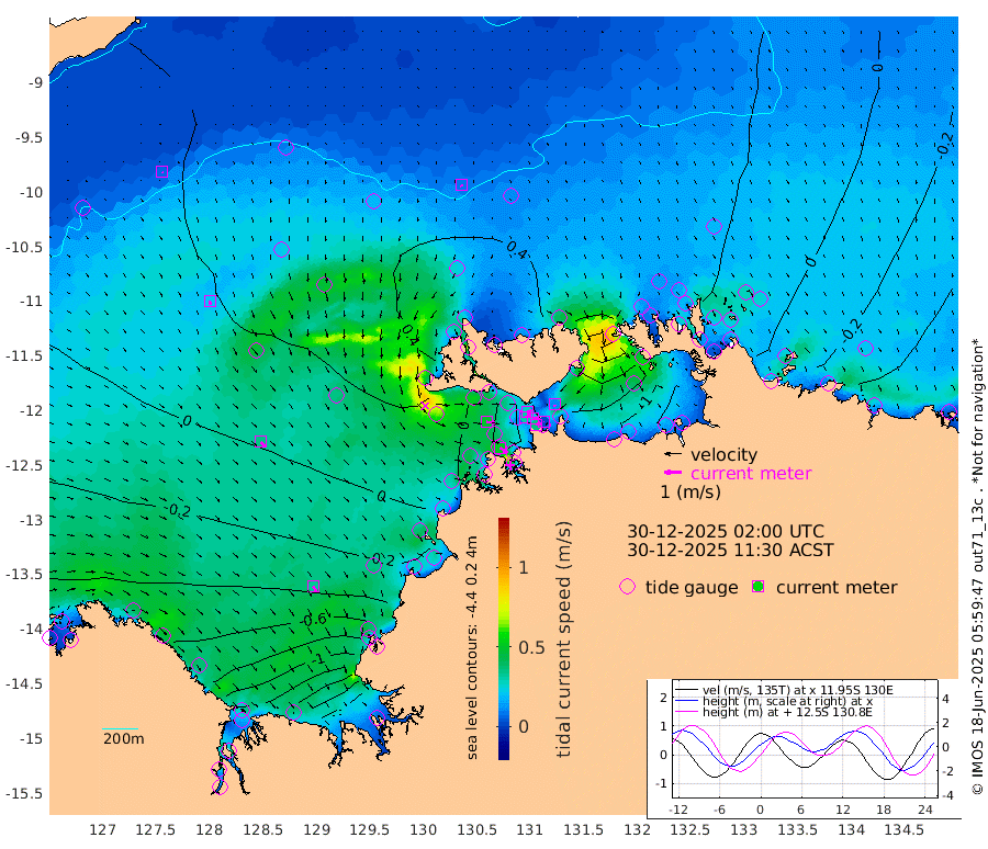 34cm/s 77T +4cm/s rms + 6cm/s 51T. Darwin_C1 52m 3cm/s 143T +4cm/s rms + 7cm/s -161T. Darwin_CW1 22m 31cm/s 73T +4cm/s rms + 8cm/s 61T. Darwin_CW2 34m 12cm/s -175T +3cm/s rms + 9cm/s 98T. Darwin_CW3 22m 25cm/s 83T +5cm/s rms + 7cm/s 88T. Darwin_C3 56m 27cm/s 65T +2cm/s rms + 9cm/s -126T. Darwin_CTbW 22m 9cm/s 161T +9cm/s rms + 2cm/s -110T. NWSLYN 196m 48cm/s 94T +1cm/s rms + 1cm/s -47T. DARBGF 30m 6cm/s 144T +7cm/s rms + 2cm/s -137T. ITFTIS 464m 22cm/s 173T +9cm/s rms + 1cm/s 74T. ITFMHB 146m 32cm/s 152T +4cm/s rms + 1cm/s -134T. ITFJBG 61m 35cm/s 140T +6cm/s rms + 4cm/s 121T. ITFFTB 108m 51cm/s 122T +4cm/s rms + 3cm/s 80T. NRSDAR 19m -72cm Carronade Island -70cm Guy Point -76cm Napier Broome Bay -81cm Lesueur Island -67cm Reveley Island -36cm Rocky Island -105cm Cape Domett -103cm Lacrosse Island -148cm Adolphus Island -193cm Pender Point -228cm Wyndham 7cm The Boxers 6cm Unnamed Shoal 15cm Loxton Shoal -84cm Pelican Island 23cm Calder Shoal 31cm Evans Shoal -191cm Quoin Island -46cm Port Keats -45cm Jones Point -203cm Catfish Island 6cm Cape Scott Offshore 59cm Cape Ford 13cm Anson Bay 33cm Goodrich Bank 23cm Peron Island North 29cm Point Jenny 29cm Native Point 24cm Fish Reef 23cm Tapa Bay 48cm Point Fawcett (Offshore) 9cm Burge Point 45cm Munkunuwa 21cm Beagle A 21cm Parsons Bank 1cm Fenton Patches 20cm Lynedoch Bank 3cm Hancox Shoal Area 2cm Nightcliff -2cm Darwin 11cm Charles Point Patches -44cm Glyde Point -90cm Chambers Bay -107cm Point Stuart -56cm Cape Hotham -83cm Christine Reef -121cm West Alligator Head -156cm East Field Island -66cm Two Hills Bay 3cm Newby Shoal -76cm Camp Point 25cm Medina Inlet South 49cm South Barlow Point 47cm St. Asaph Bay 39cm Cape Van Dieman 35cm Snake Bay 32cm Cache Point 0cm Echo Shoal 22cm Point Jahleel (Off) 3cm Cape Don 26cm Port Essington 31cm Smith Point - West 25cm NW Peacock Island 28cm North Of Jones Shoal 10cm Peacock Island 12cm Point David 29cm D'urville Point 15cm Money Shoal 10cm Copeland Island 13cm Cape Cockburn 13cm One Tree Point 7cm Hogmany Shoal 2cm New Year Island - West 7cm Grant Island -10cm Aurari Bay -15cm Cuthbert Point 2cm North Goulburn Island -30cm Paxie Shoal -37cm Entrance Island -57cm Yabooma Island
