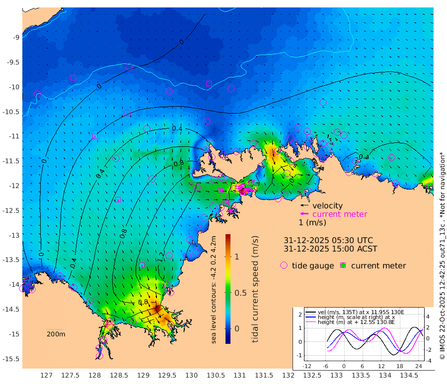 140cm/s 78T +4cm/s rms + 6cm/s 51T. Darwin_C1 52m 103cm/s 90T +4cm/s rms + 7cm/s -161T. Darwin_CW1 22m 79cm/s 74T +4cm/s rms + 8cm/s 61T. Darwin_CW2 34m 56cm/s 51T +3cm/s rms + 9cm/s 98T. Darwin_CW3 22m 112cm/s 88T +5cm/s rms + 7cm/s 88T. Darwin_C3 56m 83cm/s 65T +2cm/s rms + 9cm/s -126T. Darwin_CTbW 22m 2cm/s 110T +9cm/s rms + 2cm/s -110T. NWSLYN 196m 46cm/s 87T +1cm/s rms + 1cm/s -47T. DARBGF 30m 4cm/s -169T +7cm/s rms + 2cm/s -137T. ITFTIS 464m 20cm/s -176T +9cm/s rms + 1cm/s 74T. ITFMHB 146m 27cm/s 168T +4cm/s rms + 1cm/s -134T. ITFJBG 61m 23cm/s 152T +6cm/s rms + 4cm/s 121T. ITFFTB 108m 42cm/s 114T +4cm/s rms + 3cm/s 80T. NRSDAR 19m -26cm Carronade Island -22cm Guy Point -30cm Napier Broome Bay 24cm Lesueur Island 91cm Reveley Island 37cm Rocky Island 116cm Cape Domett 111cm Lacrosse Island 90cm Adolphus Island 24cm Pender Point 0cm Wyndham 33cm The Boxers 31cm Unnamed Shoal -12cm Loxton Shoal 140cm Pelican Island 34cm Calder Shoal 9cm Evans Shoal 88cm Quoin Island 153cm Port Keats 147cm Jones Point 72cm Catfish Island 145cm Cape Scott Offshore 184cm Cape Ford 161cm Anson Bay 18cm Goodrich Bank 147cm Peron Island North 163cm Point Jenny 159cm Native Point 160cm Fish Reef 170cm Tapa Bay 102cm Point Fawcett (Offshore) 172cm Burge Point 163cm Munkunuwa 141cm Beagle A 164cm Parsons Bank 166cm Fenton Patches 0cm Lynedoch Bank 161cm Hancox Shoal Area 176cm Nightcliff 165cm Darwin 158cm Charles Point Patches 108cm Glyde Point 71cm Chambers Bay 54cm Point Stuart 86cm Cape Hotham 72cm Christine Reef 55cm West Alligator Head 30cm East Field Island 62cm Two Hills Bay 91cm Newby Shoal 55cm Camp Point 158cm Medina Inlet South 78cm South Barlow Point 63cm St. Asaph Bay 24cm Cape Van Dieman 20cm Snake Bay 28cm Cache Point -25cm Echo Shoal 34cm Point Jahleel (Off) 56cm Cape Don 33cm Port Essington 40cm Smith Point - West 31cm NW Peacock Island 24cm North Of Jones Shoal 9cm Peacock Island 28cm Point David 37cm D'urville Point 18cm Money Shoal 30cm Copeland Island 43cm Cape Cockburn 29cm One Tree Point 38cm Hogmany Shoal 25cm New Year Island - West 30cm Grant Island 32cm Aurari Bay 41cm Cuthbert Point 37cm North Goulburn Island 38cm Paxie Shoal 46cm Entrance Island 47cm Yabooma Island