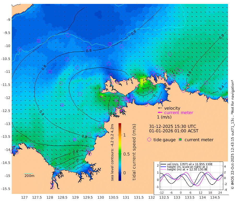 24cm/s 77T +4cm/s rms + 6cm/s 51T. Darwin_C1 52m 10cm/s -85T +4cm/s rms + 7cm/s -161T. Darwin_CW1 22m 24cm/s 75T +4cm/s rms + 8cm/s 61T. Darwin_CW2 34m 12cm/s -147T +3cm/s rms + 9cm/s 98T. Darwin_CW3 22m 21cm/s 88T +5cm/s rms + 7cm/s 88T. Darwin_C3 56m 31cm/s 62T +2cm/s rms + 9cm/s -126T. Darwin_CTbW 22m 5cm/s 131T +9cm/s rms + 2cm/s -110T. NWSLYN 196m 37cm/s 93T +1cm/s rms + 1cm/s -47T. DARBGF 30m 8cm/s 25T +7cm/s rms + 2cm/s -137T. ITFTIS 464m 6cm/s 72T +9cm/s rms + 1cm/s 74T. ITFMHB 146m 20cm/s 141T +4cm/s rms + 1cm/s -134T. ITFJBG 61m 20cm/s 118T +6cm/s rms + 4cm/s 121T. ITFFTB 108m 36cm/s 125T +4cm/s rms + 3cm/s 80T. NRSDAR 19m 10cm Carronade Island 0cm Guy Point 14cm Napier Broome Bay 33cm Lesueur Island 11cm Reveley Island 21cm Rocky Island -11cm Cape Domett -5cm Lacrosse Island -41cm Adolphus Island -83cm Pender Point -95cm Wyndham 77cm The Boxers 103cm Unnamed Shoal 59cm Loxton Shoal -5cm Pelican Island 76cm Calder Shoal 63cm Evans Shoal -78cm Quoin Island 31cm Port Keats 34cm Jones Point -62cm Catfish Island 58cm Cape Scott Offshore 112cm Cape Ford 67cm Anson Bay 77cm Goodrich Bank 80cm Peron Island North 78cm Point Jenny 81cm Native Point 84cm Fish Reef 76cm Tapa Bay 90cm Point Fawcett (Offshore) 75cm Burge Point 74cm Munkunuwa 87cm Beagle A 76cm Parsons Bank 76cm Fenton Patches 68cm Lynedoch Bank 61cm Hancox Shoal Area 62cm Nightcliff 73cm Darwin 82cm Charles Point Patches 38cm Glyde Point -12cm Chambers Bay -15cm Point Stuart 24cm Cape Hotham -9cm Christine Reef -27cm West Alligator Head -48cm East Field Island 16cm Two Hills Bay 96cm Newby Shoal 9cm Camp Point 80cm Medina Inlet South 93cm South Barlow Point 83cm St. Asaph Bay 81cm Cape Van Dieman 88cm Snake Bay 80cm Cache Point 44cm Echo Shoal 72cm Point Jahleel (Off) 62cm Cape Don 79cm Port Essington 80cm Smith Point - West 80cm NW Peacock Island 74cm North Of Jones Shoal 27cm Peacock Island 77cm Point David 84cm D'urville Point 74cm Money Shoal 73cm Copeland Island 98cm Cape Cockburn 77cm One Tree Point 89cm Hogmany Shoal 80cm New Year Island - West 80cm Grant Island 67cm Aurari Bay 64cm Cuthbert Point 73cm North Goulburn Island 45cm Paxie Shoal 47cm Entrance Island 23cm Yabooma Island
