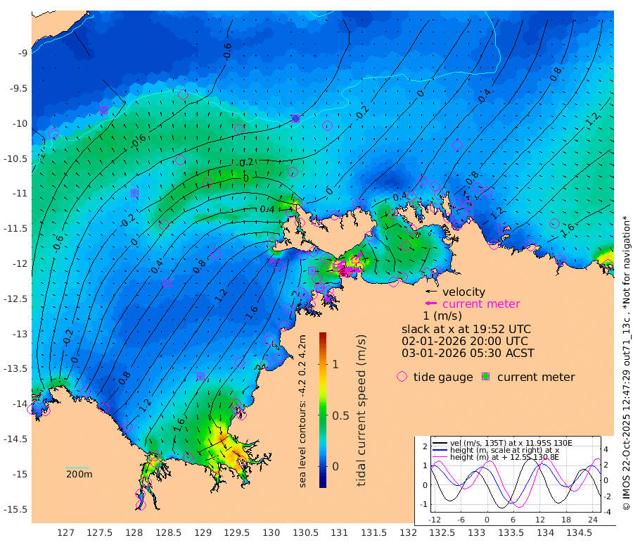148cm/s 78T +4cm/s rms + 6cm/s 51T. Darwin_C1 52m 111cm/s 90T +4cm/s rms + 7cm/s -161T. Darwin_CW1 22m 62cm/s 74T +4cm/s rms + 8cm/s 61T. Darwin_CW2 34m 84cm/s 43T +3cm/s rms + 9cm/s 98T. Darwin_CW3 22m 93cm/s 89T +5cm/s rms + 7cm/s 88T. Darwin_C3 56m 76cm/s 64T +2cm/s rms + 9cm/s -126T. Darwin_CTbW 22m 4cm/s -1T +9cm/s rms + 2cm/s -110T. NWSLYN 196m 16cm/s 79T +1cm/s rms + 1cm/s -47T. DARBGF 30m 9cm/s -52T +7cm/s rms + 2cm/s -137T. ITFTIS 464m 14cm/s -27T +9cm/s rms + 1cm/s 74T. ITFMHB 146m 13cm/s -164T +4cm/s rms + 1cm/s -134T. ITFJBG 61m 10cm/s -75T +6cm/s rms + 4cm/s 121T. ITFFTB 108m 16cm/s 100T +4cm/s rms + 3cm/s 80T. NRSDAR 19m -102cm Carronade Island -112cm Guy Point -106cm Napier Broome Bay -4cm Lesueur Island 81cm Reveley Island 11cm Rocky Island 132cm Cape Domett 116cm Lacrosse Island 123cm Adolphus Island 59cm Pender Point 41cm Wyndham -13cm The Boxers 37cm Unnamed Shoal -82cm Loxton Shoal 164cm Pelican Island -36cm Calder Shoal -56cm Evans Shoal 146cm Quoin Island 172cm Port Keats 182cm Jones Point 116cm Catfish Island 117cm Cape Scott Offshore 150cm Cape Ford 145cm Anson Bay -22cm Goodrich Bank 127cm Peron Island North 127cm Point Jenny 127cm Native Point 142cm Fish Reef 150cm Tapa Bay 45cm Point Fawcett (Offshore) 167cm Burge Point 136cm Munkunuwa 106cm Beagle A 172cm Parsons Bank 160cm Fenton Patches -31cm Lynedoch Bank 165cm Hancox Shoal Area 164cm Nightcliff 186cm Darwin 161cm Charles Point Patches 140cm Glyde Point 100cm Chambers Bay 110cm Point Stuart 122cm Cape Hotham 93cm Christine Reef 113cm West Alligator Head 101cm East Field Island 98cm Two Hills Bay 50cm Newby Shoal 97cm Camp Point 144cm Medina Inlet South 39cm South Barlow Point 6cm St. Asaph Bay -16cm Cape Van Dieman -7cm Snake Bay -12cm Cache Point -106cm Echo Shoal 7cm Point Jahleel (Off) 57cm Cape Don 29cm Port Essington 26cm Smith Point - West 29cm NW Peacock Island 0cm North Of Jones Shoal 4cm Peacock Island 71cm Point David 39cm D'urville Point 30cm Money Shoal 75cm Copeland Island 92cm Cape Cockburn 60cm One Tree Point 90cm Hogmany Shoal 66cm New Year Island - West 72cm Grant Island 100cm Aurari Bay 120cm Cuthbert Point 94cm North Goulburn Island 125cm Paxie Shoal 143cm Entrance Island 168cm Yabooma Island