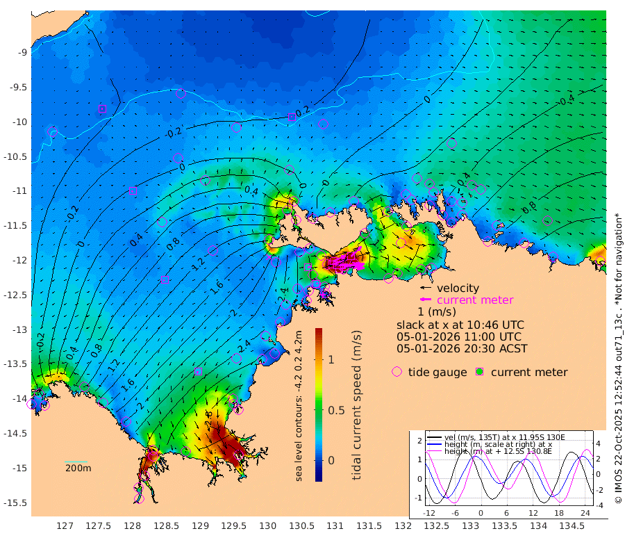 242cm/s 78T +4cm/s rms + 6cm/s 51T. Darwin_C1 52m 186cm/s 93T +4cm/s rms + 7cm/s -161T. Darwin_CW1 22m 139cm/s 71T +4cm/s rms + 8cm/s 61T. Darwin_CW2 34m 133cm/s 47T +3cm/s rms + 9cm/s 98T. Darwin_CW3 22m 210cm/s 89T +5cm/s rms + 7cm/s 88T. Darwin_C3 56m 125cm/s 65T +2cm/s rms + 9cm/s -126T. Darwin_CTbW 22m 7cm/s -5T +9cm/s rms + 2cm/s -110T. NWSLYN 196m 31cm/s 70T +1cm/s rms + 1cm/s -47T. DARBGF 30m 5cm/s -87T +7cm/s rms + 2cm/s -137T. ITFTIS 464m 11cm/s -132T +9cm/s rms + 1cm/s 74T. ITFMHB 146m 18cm/s -146T +4cm/s rms + 1cm/s -134T. ITFJBG 61m 13cm/s -104T +6cm/s rms + 4cm/s 121T. ITFFTB 108m 15cm/s 81T +4cm/s rms + 3cm/s 80T. NRSDAR 19m -18cm Carronade Island -16cm Guy Point -15cm Napier Broome Bay 101cm Lesueur Island 232cm Reveley Island 148cm Rocky Island 330cm Cape Domett 301cm Lacrosse Island 328cm Adolphus Island 268cm Pender Point 237cm Wyndham 50cm The Boxers 54cm Unnamed Shoal -25cm Loxton Shoal 343cm Pelican Island 34cm Calder Shoal -12cm Evans Shoal 380cm Quoin Island 338cm Port Keats 324cm Jones Point 294cm Catfish Island 243cm Cape Scott Offshore 278cm Cape Ford 264cm Anson Bay 2cm Goodrich Bank 239cm Peron Island North 238cm Point Jenny 236cm Native Point 254cm Fish Reef 268cm Tapa Bay 122cm Point Fawcett (Offshore) 294cm Burge Point 257cm Munkunuwa 207cm Beagle A 278cm Parsons Bank 279cm Fenton Patches -11cm Lynedoch Bank 273cm Hancox Shoal Area 292cm Nightcliff 309cm Darwin 276cm Charles Point Patches 230cm Glyde Point 190cm Chambers Bay 184cm Point Stuart 197cm Cape Hotham 177cm Christine Reef 200cm West Alligator Head 185cm East Field Island 163cm Two Hills Bay 143cm Newby Shoal 160cm Camp Point 264cm Medina Inlet South 96cm South Barlow Point 62cm St. Asaph Bay 5cm Cape Van Dieman 12cm Snake Bay 12cm Cache Point -50cm Echo Shoal 34cm Point Jahleel (Off) 89cm Cape Don 31cm Port Essington 31cm Smith Point - West 22cm NW Peacock Island 8cm North Of Jones Shoal 3cm Peacock Island 31cm Point David 27cm D'urville Point 8cm Money Shoal 31cm Copeland Island 49cm Cape Cockburn 33cm One Tree Point 44cm Hogmany Shoal 33cm New Year Island - West 39cm Grant Island 49cm Aurari Bay 66cm Cuthbert Point 54cm North Goulburn Island 76cm Paxie Shoal 88cm Entrance Island 92cm Yabooma Island