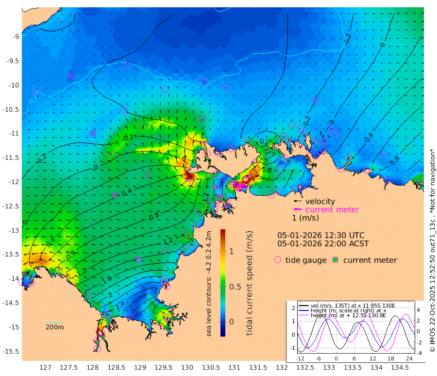 101cm/s 79T +4cm/s rms + 6cm/s 51T. Darwin_C1 52m 100cm/s 90T +4cm/s rms + 7cm/s -161T. Darwin_CW1 22m 67cm/s 71T +4cm/s rms + 8cm/s 61T. Darwin_CW2 34m 78cm/s 45T +3cm/s rms + 9cm/s 98T. Darwin_CW3 22m 122cm/s 90T +5cm/s rms + 7cm/s 88T. Darwin_C3 56m 51cm/s 66T +2cm/s rms + 9cm/s -126T. Darwin_CTbW 22m 9cm/s -8T +9cm/s rms + 2cm/s -110T. NWSLYN 196m 33cm/s -71T +1cm/s rms + 1cm/s -47T. DARBGF 30m 8cm/s -77T +7cm/s rms + 2cm/s -137T. ITFTIS 464m 13cm/s -51T +9cm/s rms + 1cm/s 74T. ITFMHB 146m 32cm/s -49T +4cm/s rms + 1cm/s -134T. ITFJBG 61m 39cm/s -57T +6cm/s rms + 4cm/s 121T. ITFFTB 108m 50cm/s -48T +4cm/s rms + 3cm/s 80T. NRSDAR 19m 67cm Carronade Island 74cm Guy Point 74cm Napier Broome Bay 127cm Lesueur Island 210cm Reveley Island 132cm Rocky Island 314cm Cape Domett 282cm Lacrosse Island 354cm Adolphus Island 381cm Pender Point 389cm Wyndham 16cm The Boxers 0cm Unnamed Shoal -26cm Loxton Shoal 297cm Pelican Island -5cm Calder Shoal -32cm Evans Shoal 428cm Quoin Island 247cm Port Keats 233cm Jones Point 373cm Catfish Island 137cm Cape Scott Offshore 115cm Cape Ford 138cm Anson Bay -35cm Goodrich Bank 117cm Peron Island North 110cm Point Jenny 108cm Native Point 118cm Fish Reef 133cm Tapa Bay 23cm Point Fawcett (Offshore) 160cm Burge Point 112cm Munkunuwa 85cm Beagle A 146cm Parsons Bank 147cm Fenton Patches -31cm Lynedoch Bank 158cm Hancox Shoal Area 162cm Nightcliff 179cm Darwin 146cm Charles Point Patches 172cm Glyde Point 209cm Chambers Bay 215cm Point Stuart 167cm Cape Hotham 193cm Christine Reef 241cm West Alligator Head 261cm East Field Island 162cm Two Hills Bay 65cm Newby Shoal 163cm Camp Point 128cm Medina Inlet South 3cm South Barlow Point -13cm St. Asaph Bay -39cm Cape Van Dieman -35cm Snake Bay -28cm Cache Point -31cm Echo Shoal -5cm Point Jahleel (Off) 50cm Cape Don -10cm Port Essington -13cm Smith Point - West -15cm NW Peacock Island -25cm North Of Jones Shoal -9cm Peacock Island 1cm Point David -16cm D'urville Point -15cm Money Shoal 3cm Copeland Island 10cm Cape Cockburn 3cm One Tree Point 20cm Hogmany Shoal 7cm New Year Island - West 12cm Grant Island 24cm Aurari Bay 51cm Cuthbert Point 30cm North Goulburn Island 75cm Paxie Shoal 92cm Entrance Island 116cm Yabooma Island