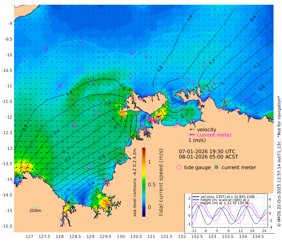87cm/s -101T +4cm/s rms + 6cm/s 51T. Darwin_C1 52m 59cm/s -91T +4cm/s rms + 7cm/s -161T. Darwin_CW1 22m 43cm/s -106T +4cm/s rms + 8cm/s 61T. Darwin_CW2 34m 72cm/s -138T +3cm/s rms + 9cm/s 98T. Darwin_CW3 22m 83cm/s -91T +5cm/s rms + 7cm/s 88T. Darwin_C3 56m 38cm/s -116T +2cm/s rms + 9cm/s -126T. Darwin_CTbW 22m 14cm/s 150T +9cm/s rms + 2cm/s -110T. NWSLYN 196m 26cm/s 106T +1cm/s rms + 1cm/s -47T. DARBGF 30m 13cm/s 53T +7cm/s rms + 2cm/s -137T. ITFTIS 464m 13cm/s 83T +9cm/s rms + 1cm/s 74T. ITFMHB 146m 23cm/s 107T +4cm/s rms + 1cm/s -134T. ITFJBG 61m 31cm/s 107T +6cm/s rms + 4cm/s 121T. ITFFTB 108m 32cm/s 137T +4cm/s rms + 3cm/s 80T. NRSDAR 19m 35cm Carronade Island 36cm Guy Point 43cm Napier Broome Bay -28cm Lesueur Island -120cm Reveley Island -81cm Rocky Island -205cm Cape Domett -178cm Lacrosse Island -250cm Adolphus Island -230cm Pender Point -236cm Wyndham 50cm The Boxers 56cm Unnamed Shoal 89cm Loxton Shoal -213cm Pelican Island 64cm Calder Shoal 74cm Evans Shoal -304cm Quoin Island -163cm Port Keats -166cm Jones Point -287cm Catfish Island -76cm Cape Scott Offshore -49cm Cape Ford -79cm Anson Bay 71cm Goodrich Bank -73cm Peron Island North -59cm Point Jenny -55cm Native Point -77cm Fish Reef -77cm Tapa Bay 21cm Point Fawcett (Offshore) -101cm Burge Point -68cm Munkunuwa -43cm Beagle A -103cm Parsons Bank -99cm Fenton Patches 69cm Lynedoch Bank -110cm Hancox Shoal Area -108cm Nightcliff -120cm Darwin -85cm Charles Point Patches -122cm Glyde Point -157cm Chambers Bay -167cm Point Stuart -125cm Cape Hotham -139cm Christine Reef -189cm West Alligator Head -204cm East Field Island -122cm Two Hills Bay 2cm Newby Shoal -106cm Camp Point -75cm Medina Inlet South 33cm South Barlow Point 51cm St. Asaph Bay 73cm Cape Van Dieman 71cm Snake Bay 61cm Cache Point 90cm Echo Shoal 36cm Point Jahleel (Off) -18cm Cape Don 31cm Port Essington 28cm Smith Point - West 29cm NW Peacock Island 49cm North Of Jones Shoal 15cm Peacock Island 9cm Point David 26cm D'urville Point 36cm Money Shoal 2cm Copeland Island -4cm Cape Cockburn 11cm One Tree Point -2cm Hogmany Shoal 9cm New Year Island - West 2cm Grant Island -26cm Aurari Bay -52cm Cuthbert Point -23cm North Goulburn Island -52cm Paxie Shoal -92cm Entrance Island -126cm Yabooma Island
