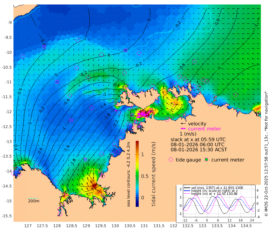 203cm/s -101T +4cm/s rms + 6cm/s 51T. Darwin_C1 52m 147cm/s -90T +4cm/s rms + 7cm/s -161T. Darwin_CW1 22m 109cm/s -106T +4cm/s rms + 8cm/s 61T. Darwin_CW2 34m 97cm/s -133T +3cm/s rms + 9cm/s 98T. Darwin_CW3 22m 170cm/s -91T +5cm/s rms + 7cm/s 88T. Darwin_C3 56m 111cm/s -115T +2cm/s rms + 9cm/s -126T. Darwin_CTbW 22m 4cm/s -72T +9cm/s rms + 2cm/s -110T. NWSLYN 196m 36cm/s -99T +1cm/s rms + 1cm/s -47T. DARBGF 30m 7cm/s 142T +7cm/s rms + 2cm/s -137T. ITFTIS 464m 7cm/s 125T +9cm/s rms + 1cm/s 74T. ITFMHB 146m 15cm/s 14T +4cm/s rms + 1cm/s -134T. ITFJBG 61m 8cm/s 80T +6cm/s rms + 4cm/s 121T. ITFFTB 108m 27cm/s -80T +4cm/s rms + 3cm/s 80T. NRSDAR 19m 68cm Carronade Island 70cm Guy Point 62cm Napier Broome Bay -46cm Lesueur Island -156cm Reveley Island -81cm Rocky Island -230cm Cape Domett -204cm Lacrosse Island -213cm Adolphus Island -156cm Pender Point -121cm Wyndham -42cm The Boxers -73cm Unnamed Shoal 25cm Loxton Shoal -256cm Pelican Island -22cm Calder Shoal 8cm Evans Shoal -265cm Quoin Island -262cm Port Keats -257cm Jones Point -219cm Catfish Island -202cm Cape Scott Offshore -209cm Cape Ford -230cm Anson Bay -14cm Goodrich Bank -204cm Peron Island North -192cm Point Jenny -193cm Native Point -210cm Fish Reef -224cm Tapa Bay -111cm Point Fawcett (Offshore) -234cm Burge Point -217cm Munkunuwa -157cm Beagle A -240cm Parsons Bank -214cm Fenton Patches -4cm Lynedoch Bank -229cm Hancox Shoal Area -234cm Nightcliff -266cm Darwin -242cm Charles Point Patches -184cm Glyde Point -134cm Chambers Bay -130cm Point Stuart -155cm Cape Hotham -115cm Christine Reef -135cm West Alligator Head -111cm East Field Island -126cm Two Hills Bay -101cm Newby Shoal -121cm Camp Point -226cm Medina Inlet South -94cm South Barlow Point -59cm St. Asaph Bay -20cm Cape Van Dieman -32cm Snake Bay -22cm Cache Point 59cm Echo Shoal -39cm Point Jahleel (Off) -90cm Cape Don -54cm Port Essington -49cm Smith Point - West -46cm NW Peacock Island -31cm North Of Jones Shoal -13cm Peacock Island -72cm Point David -53cm D'urville Point -41cm Money Shoal -72cm Copeland Island -93cm Cape Cockburn -71cm One Tree Point -90cm Hogmany Shoal -69cm New Year Island - West -76cm Grant Island -87cm Aurari Bay -103cm Cuthbert Point -94cm North Goulburn Island -117cm Paxie Shoal -118cm Entrance Island -126cm Yabooma Island