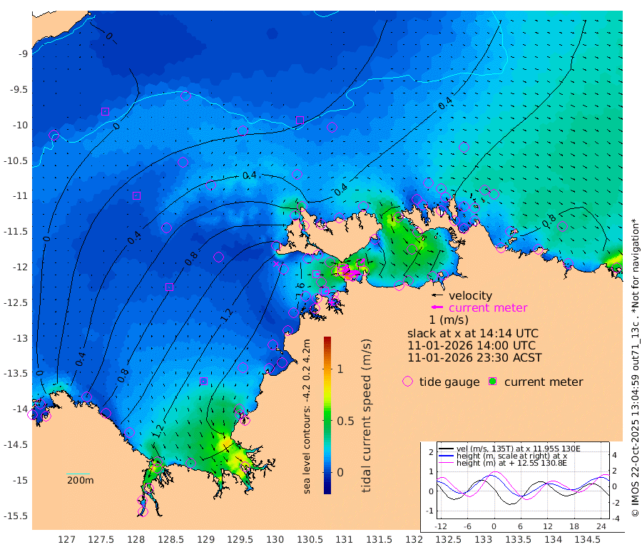 102cm/s 78T +4cm/s rms + 6cm/s 51T. Darwin_C1 52m 65cm/s 91T +4cm/s rms + 7cm/s -161T. Darwin_CW1 22m 71cm/s 73T +4cm/s rms + 8cm/s 61T. Darwin_CW2 34m 54cm/s 46T +3cm/s rms + 9cm/s 98T. Darwin_CW3 22m 114cm/s 89T +5cm/s rms + 7cm/s 88T. Darwin_C3 56m 56cm/s 65T +2cm/s rms + 9cm/s -126T. Darwin_CTbW 22m 3cm/s 0T +9cm/s rms + 2cm/s -110T. NWSLYN 196m 22cm/s 79T +1cm/s rms + 1cm/s -47T. DARBGF 30m 4cm/s -42T +7cm/s rms + 2cm/s -137T. ITFTIS 464m 4cm/s -44T +9cm/s rms + 1cm/s 74T. ITFMHB 146m 8cm/s -151T +4cm/s rms + 1cm/s -134T. ITFJBG 61m 4cm/s -100T +6cm/s rms + 4cm/s 121T. ITFFTB 108m 16cm/s 100T +4cm/s rms + 3cm/s 80T. NRSDAR 19m -23cm Carronade Island -29cm Guy Point -17cm Napier Broome Bay 45cm Lesueur Island 94cm Reveley Island 81cm Rocky Island 141cm Cape Domett 125cm Lacrosse Island 147cm Adolphus Island 92cm Pender Point 81cm Wyndham 45cm The Boxers 57cm Unnamed Shoal 5cm Loxton Shoal 150cm Pelican Island 33cm Calder Shoal 11cm Evans Shoal 168cm Quoin Island 159cm Port Keats 146cm Jones Point 159cm Catfish Island 124cm Cape Scott Offshore 93cm Cape Ford 141cm Anson Bay 25cm Goodrich Bank 130cm Peron Island North 120cm Point Jenny 120cm Native Point 134cm Fish Reef 133cm Tapa Bay 76cm Point Fawcett (Offshore) 145cm Burge Point 126cm Munkunuwa 110cm Beagle A 147cm Parsons Bank 141cm Fenton Patches 22cm Lynedoch Bank 140cm Hancox Shoal Area 150cm Nightcliff 164cm Darwin 150cm Charles Point Patches 117cm Glyde Point 89cm Chambers Bay 81cm Point Stuart 98cm Cape Hotham 80cm Christine Reef 84cm West Alligator Head 72cm East Field Island 85cm Two Hills Bay 93cm Newby Shoal 78cm Camp Point 141cm Medina Inlet South 73cm South Barlow Point 49cm St. Asaph Bay 27cm Cape Van Dieman 38cm Snake Bay 30cm Cache Point -12cm Echo Shoal 40cm Point Jahleel (Off) 69cm Cape Don 49cm Port Essington 50cm Smith Point - West 48cm NW Peacock Island 39cm North Of Jones Shoal 15cm Peacock Island 55cm Point David 53cm D'urville Point 43cm Money Shoal 55cm Copeland Island 78cm Cape Cockburn 59cm One Tree Point 61cm Hogmany Shoal 60cm New Year Island - West 61cm Grant Island 69cm Aurari Bay 78cm Cuthbert Point 71cm North Goulburn Island 71cm Paxie Shoal 83cm Entrance Island 83cm Yabooma Island