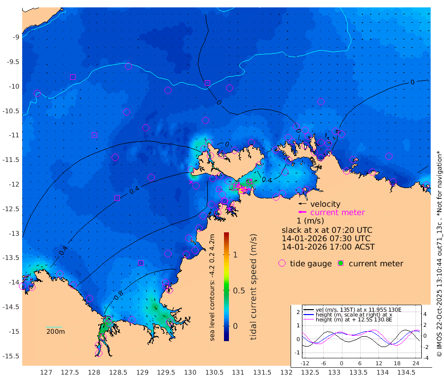 73cm/s 79T +4cm/s rms + 6cm/s 51T. Darwin_C1 52m 84cm/s 92T +4cm/s rms + 7cm/s -161T. Darwin_CW1 22m 33cm/s 73T +4cm/s rms + 8cm/s 61T. Darwin_CW2 34m 41cm/s 43T +3cm/s rms + 9cm/s 98T. Darwin_CW3 22m 65cm/s 90T +5cm/s rms + 7cm/s 88T. Darwin_C3 56m 35cm/s 67T +2cm/s rms + 9cm/s -126T. Darwin_CTbW 22m 3cm/s 14T +9cm/s rms + 2cm/s -110T. NWSLYN 196m 9cm/s 70T +1cm/s rms + 1cm/s -47T. DARBGF 30m 1cm/s -145T +7cm/s rms + 2cm/s -137T. ITFTIS 464m 6cm/s -173T +9cm/s rms + 1cm/s 74T. ITFMHB 146m 3cm/s -133T +4cm/s rms + 1cm/s -134T. ITFJBG 61m 2cm/s -138T +6cm/s rms + 4cm/s 121T. ITFFTB 108m 3cm/s 106T +4cm/s rms + 3cm/s 80T. NRSDAR 19m 46cm Carronade Island 48cm Guy Point 44cm Napier Broome Bay 77cm Lesueur Island 96cm Reveley Island 43cm Rocky Island 124cm Cape Domett 128cm Lacrosse Island 123cm Adolphus Island 117cm Pender Point 121cm Wyndham 32cm The Boxers 24cm Unnamed Shoal 7cm Loxton Shoal 128cm Pelican Island 27cm Calder Shoal 10cm Evans Shoal 155cm Quoin Island 108cm Port Keats 113cm Jones Point 195cm Catfish Island 91cm Cape Scott Offshore 99cm Cape Ford 91cm Anson Bay 6cm Goodrich Bank 85cm Peron Island North 80cm Point Jenny 77cm Native Point 89cm Fish Reef 87cm Tapa Bay 54cm Point Fawcett (Offshore) 89cm Burge Point 74cm Munkunuwa 74cm Beagle A 75cm Parsons Bank 90cm Fenton Patches 0cm Lynedoch Bank 82cm Hancox Shoal Area 91cm Nightcliff 92cm Darwin 87cm Charles Point Patches 82cm Glyde Point 84cm Chambers Bay 88cm Point Stuart 79cm Cape Hotham 74cm Christine Reef 97cm West Alligator Head 101cm East Field Island 71cm Two Hills Bay 53cm Newby Shoal 66cm Camp Point 82cm Medina Inlet South 28cm South Barlow Point 28cm St. Asaph Bay 6cm Cape Van Dieman 3cm Snake Bay 13cm Cache Point 14cm Echo Shoal 18cm Point Jahleel (Off) 32cm Cape Don 9cm Port Essington 10cm Smith Point - West 4cm NW Peacock Island 8cm North Of Jones Shoal 2cm Peacock Island 0cm Point David 3cm D'urville Point -1cm Money Shoal 0cm Copeland Island 5cm Cape Cockburn 4cm One Tree Point 7cm Hogmany Shoal 4cm New Year Island - West 1cm Grant Island 8cm Aurari Bay 8cm Cuthbert Point 5cm North Goulburn Island 15cm Paxie Shoal 11cm Entrance Island 15cm Yabooma Island