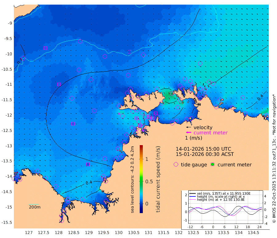 13cm/s 75T +4cm/s rms + 6cm/s 51T. Darwin_C1 52m 17cm/s -86T +4cm/s rms + 7cm/s -161T. Darwin_CW1 22m 16cm/s 75T +4cm/s rms + 8cm/s 61T. Darwin_CW2 34m 5cm/s -147T +3cm/s rms + 9cm/s 98T. Darwin_CW3 22m 16cm/s 90T +5cm/s rms + 7cm/s 88T. Darwin_C3 56m 23cm/s 63T +2cm/s rms + 9cm/s -126T. Darwin_CTbW 22m 4cm/s 114T +9cm/s rms + 2cm/s -110T. NWSLYN 196m 16cm/s 91T +1cm/s rms + 1cm/s -47T. DARBGF 30m 6cm/s 13T +7cm/s rms + 2cm/s -137T. ITFTIS 464m 7cm/s 31T +9cm/s rms + 1cm/s 74T. ITFMHB 146m 4cm/s 123T +4cm/s rms + 1cm/s -134T. ITFJBG 61m 6cm/s 92T +6cm/s rms + 4cm/s 121T. ITFFTB 108m 14cm/s 121T +4cm/s rms + 3cm/s 80T. NRSDAR 19m 28cm Carronade Island 26cm Guy Point 35cm Napier Broome Bay 40cm Lesueur Island 23cm Reveley Island 11cm Rocky Island 17cm Cape Domett 19cm Lacrosse Island 10cm Adolphus Island -9cm Pender Point -8cm Wyndham 53cm The Boxers 68cm Unnamed Shoal 45cm Loxton Shoal 13cm Pelican Island 53cm Calder Shoal 40cm Evans Shoal -2cm Quoin Island 33cm Port Keats 19cm Jones Point -14cm Catfish Island 43cm Cape Scott Offshore 17cm Cape Ford 50cm Anson Bay 48cm Goodrich Bank 48cm Peron Island North 46cm Point Jenny 48cm Native Point 42cm Fish Reef 47cm Tapa Bay 50cm Point Fawcett (Offshore) 47cm Burge Point 40cm Munkunuwa 48cm Beagle A 49cm Parsons Bank 45cm Fenton Patches 48cm Lynedoch Bank 45cm Hancox Shoal Area 53cm Nightcliff 50cm Darwin 51cm Charles Point Patches 31cm Glyde Point 12cm Chambers Bay 3cm Point Stuart 24cm Cape Hotham 15cm Christine Reef -3cm West Alligator Head -12cm East Field Island 21cm Two Hills Bay 67cm Newby Shoal 22cm Camp Point 49cm Medina Inlet South 57cm South Barlow Point 49cm St. Asaph Bay 49cm Cape Van Dieman 58cm Snake Bay 49cm Cache Point 37cm Echo Shoal 47cm Point Jahleel (Off) 45cm Cape Don 50cm Port Essington 51cm Smith Point - West 53cm NW Peacock Island 53cm North Of Jones Shoal 19cm Peacock Island 57cm Point David 55cm D'urville Point 54cm Money Shoal 54cm Copeland Island 72cm Cape Cockburn 57cm One Tree Point 62cm Hogmany Shoal 61cm New Year Island - West 60cm Grant Island 53cm Aurari Bay 51cm Cuthbert Point 57cm North Goulburn Island 49cm Paxie Shoal 48cm Entrance Island 40cm Yabooma Island