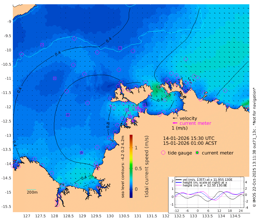 25cm/s 77T +4cm/s rms + 6cm/s 51T. Darwin_C1 52m 6cm/s -64T +4cm/s rms + 7cm/s -161T. Darwin_CW1 22m 19cm/s 75T +4cm/s rms + 8cm/s 61T. Darwin_CW2 34m 2cm/s 132T +3cm/s rms + 9cm/s 98T. Darwin_CW3 22m 22cm/s 89T +5cm/s rms + 7cm/s 88T. Darwin_C3 56m 30cm/s 63T +2cm/s rms + 9cm/s -126T. Darwin_CTbW 22m 3cm/s 110T +9cm/s rms + 2cm/s -110T. NWSLYN 196m 15cm/s 90T +1cm/s rms + 1cm/s -47T. DARBGF 30m 6cm/s 6T +7cm/s rms + 2cm/s -137T. ITFTIS 464m 7cm/s 23T +9cm/s rms + 1cm/s 74T. ITFMHB 146m 5cm/s 133T +4cm/s rms + 1cm/s -134T. ITFJBG 61m 5cm/s 91T +6cm/s rms + 4cm/s 121T. ITFFTB 108m 13cm/s 120T +4cm/s rms + 3cm/s 80T. NRSDAR 19m 17cm Carronade Island 13cm Guy Point 24cm Napier Broome Bay 35cm Lesueur Island 25cm Reveley Island 11cm Rocky Island 25cm Cape Domett 26cm Lacrosse Island 18cm Adolphus Island -4cm Pender Point -2cm Wyndham 46cm The Boxers 65cm Unnamed Shoal 32cm Loxton Shoal 23cm Pelican Island 43cm Calder Shoal 30cm Evans Shoal 14cm Quoin Island 41cm Port Keats 29cm Jones Point 17cm Catfish Island 49cm Cape Scott Offshore 10cm Cape Ford 58cm Anson Bay 39cm Goodrich Bank 52cm Peron Island North 50cm Point Jenny 51cm Native Point 48cm Fish Reef 52cm Tapa Bay 48cm Point Fawcett (Offshore) 52cm Burge Point 44cm Munkunuwa 49cm Beagle A 55cm Parsons Bank 51cm Fenton Patches 39cm Lynedoch Bank 52cm Hancox Shoal Area 60cm Nightcliff 58cm Darwin 57cm Charles Point Patches 39cm Glyde Point 22cm Chambers Bay 14cm Point Stuart 32cm Cape Hotham 22cm Christine Reef 10cm West Alligator Head 1cm East Field Island 29cm Two Hills Bay 63cm Newby Shoal 28cm Camp Point 54cm Medina Inlet South 52cm South Barlow Point 43cm St. Asaph Bay 41cm Cape Van Dieman 50cm Snake Bay 41cm Cache Point 23cm Echo Shoal 41cm Point Jahleel (Off) 46cm Cape Don 47cm Port Essington 48cm Smith Point - West 50cm NW Peacock Island 49cm North Of Jones Shoal 18cm Peacock Island 57cm Point David 53cm D'urville Point 52cm Money Shoal 55cm Copeland Island 74cm Cape Cockburn 58cm One Tree Point 63cm Hogmany Shoal 61cm New Year Island - West 60cm Grant Island 59cm Aurari Bay 58cm Cuthbert Point 61cm North Goulburn Island 58cm Paxie Shoal 58cm Entrance Island 54cm Yabooma Island