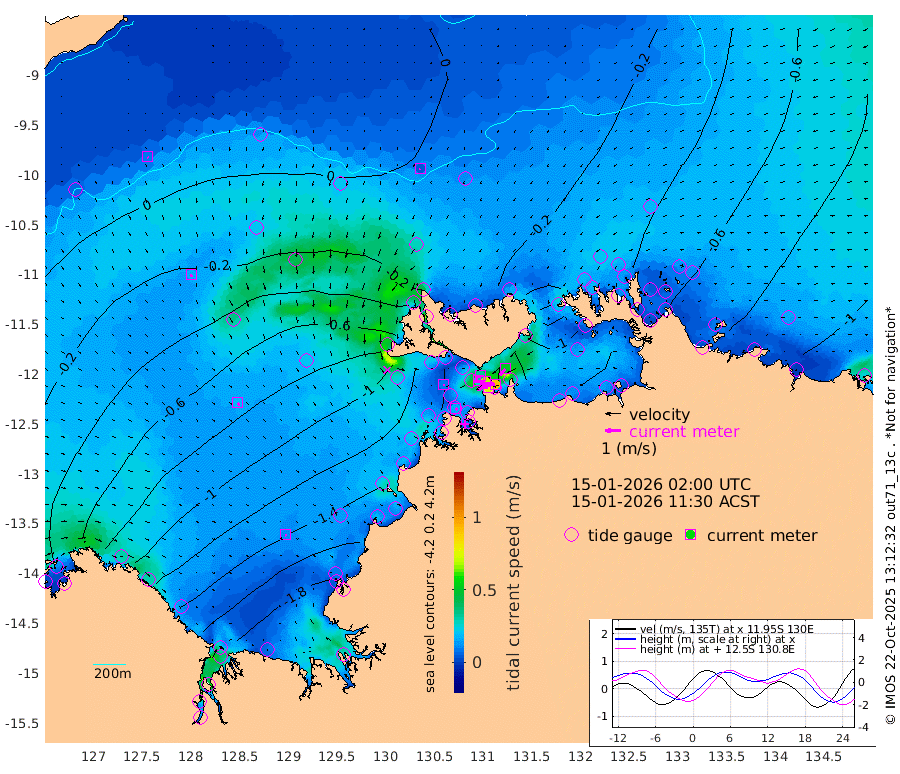 72cm/s -100T +4cm/s rms + 6cm/s 51T. Darwin_C1 52m 91cm/s -92T +4cm/s rms + 7cm/s -161T. Darwin_CW1 22m 27cm/s -103T +4cm/s rms + 8cm/s 61T. Darwin_CW2 34m 51cm/s -141T +3cm/s rms + 9cm/s 98T. Darwin_CW3 22m 67cm/s -89T +5cm/s rms + 7cm/s 88T. Darwin_C3 56m 32cm/s -115T +2cm/s rms + 9cm/s -126T. Darwin_CTbW 22m 5cm/s -158T +9cm/s rms + 2cm/s -110T. NWSLYN 196m 10cm/s 120T +1cm/s rms + 1cm/s -47T. DARBGF 30m 9cm/s 159T +7cm/s rms + 2cm/s -137T. ITFTIS 464m 15cm/s 174T +9cm/s rms + 1cm/s 74T. ITFMHB 146m 12cm/s 139T +4cm/s rms + 1cm/s -134T. ITFJBG 61m 19cm/s 142T +6cm/s rms + 4cm/s 121T. ITFFTB 108m 16cm/s 132T +4cm/s rms + 3cm/s 80T. NRSDAR 19m -50cm Carronade Island -45cm Guy Point -56cm Napier Broome Bay -104cm Lesueur Island -125cm Reveley Island -52cm Rocky Island -178cm Cape Domett -173cm Lacrosse Island -187cm Adolphus Island -188cm Pender Point -201cm Wyndham -41cm The Boxers -55cm Unnamed Shoal -1cm Loxton Shoal -172cm Pelican Island -24cm Calder Shoal 0cm Evans Shoal -239cm Quoin Island -156cm Port Keats -158cm Jones Point -273cm Catfish Island -109cm Cape Scott Offshore -95cm Cape Ford -116cm Anson Bay -6cm Goodrich Bank -105cm Peron Island North -91cm Point Jenny -89cm Native Point -109cm Fish Reef -104cm Tapa Bay -53cm Point Fawcett (Offshore) -122cm Burge Point -84cm Munkunuwa -85cm Beagle A -108cm Parsons Bank -116cm Fenton Patches -8cm Lynedoch Bank -112cm Hancox Shoal Area -120cm Nightcliff -137cm Darwin -123cm Charles Point Patches -128cm Glyde Point -131cm Chambers Bay -144cm Point Stuart -126cm Cape Hotham -115cm Christine Reef -155cm West Alligator Head -167cm East Field Island -118cm Two Hills Bay -76cm Newby Shoal -117cm Camp Point -107cm Medina Inlet South -34cm South Barlow Point -23cm St. Asaph Bay -6cm Cape Van Dieman -13cm Snake Bay -15cm Cache Point -1cm Echo Shoal -26cm Point Jahleel (Off) -60cm Cape Don -30cm Port Essington -23cm Smith Point - West -24cm NW Peacock Island -22cm North Of Jones Shoal -9cm Peacock Island -41cm Point David -25cm D'urville Point -30cm Money Shoal -42cm Copeland Island -62cm Cape Cockburn -45cm One Tree Point -56cm Hogmany Shoal -49cm New Year Island - West -46cm Grant Island -63cm Aurari Bay -70cm Cuthbert Point -59cm North Goulburn Island -87cm Paxie Shoal -85cm Entrance Island -103cm Yabooma Island