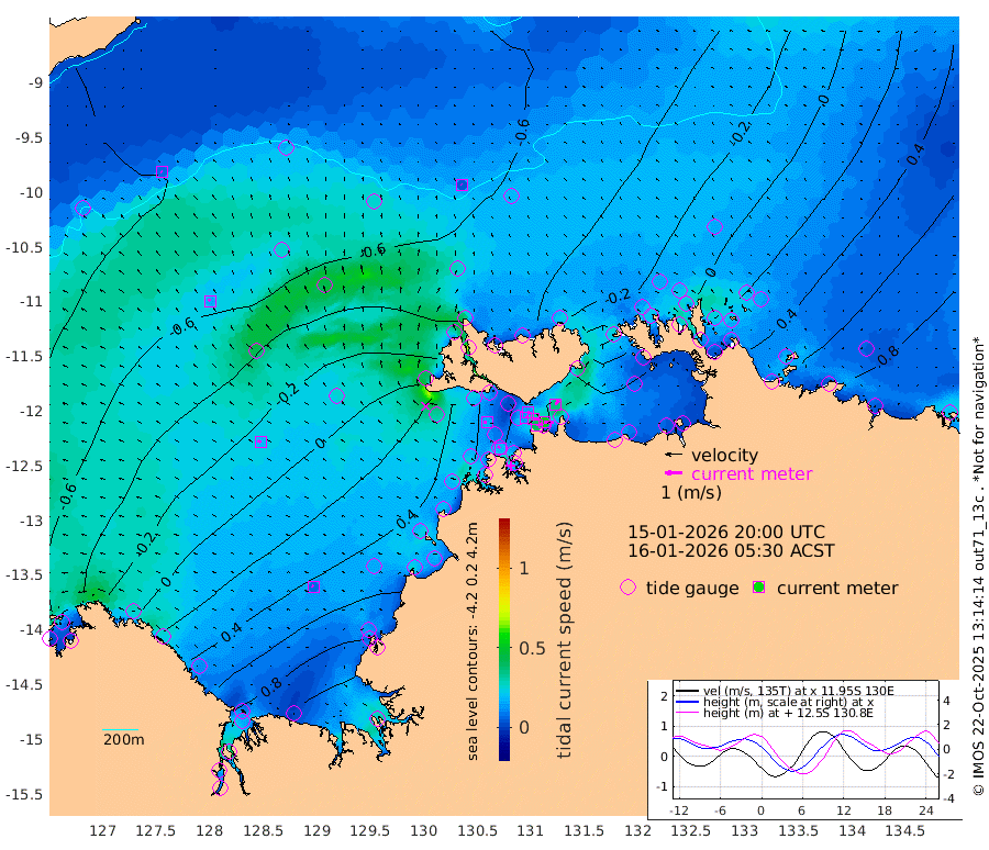 39cm/s 80T +4cm/s rms + 6cm/s 51T. Darwin_C1 52m 51cm/s 92T +4cm/s rms + 7cm/s -161T. Darwin_CW1 22m 13cm/s 65T +4cm/s rms + 8cm/s 61T. Darwin_CW2 34m 35cm/s 38T +3cm/s rms + 9cm/s 98T. Darwin_CW3 22m 30cm/s 91T +5cm/s rms + 7cm/s 88T. Darwin_C3 56m 13cm/s 67T +2cm/s rms + 9cm/s -126T. Darwin_CTbW 22m 5cm/s -31T +9cm/s rms + 2cm/s -110T. NWSLYN 196m 16cm/s -83T +1cm/s rms + 1cm/s -47T. DARBGF 30m 6cm/s -70T +7cm/s rms + 2cm/s -137T. ITFTIS 464m 15cm/s -23T +9cm/s rms + 1cm/s 74T. ITFMHB 146m 8cm/s -60T +4cm/s rms + 1cm/s -134T. ITFJBG 61m 19cm/s -54T +6cm/s rms + 4cm/s 121T. ITFFTB 108m 19cm/s -55T +4cm/s rms + 3cm/s 80T. NRSDAR 19m -67cm Carronade Island -75cm Guy Point -67cm Napier Broome Bay -30cm Lesueur Island 10cm Reveley Island -18cm Rocky Island 48cm Cape Domett 41cm Lacrosse Island 60cm Adolphus Island 57cm Pender Point 63cm Wyndham -54cm The Boxers -28cm Unnamed Shoal -81cm Loxton Shoal 60cm Pelican Island -70cm Calder Shoal -69cm Evans Shoal 110cm Quoin Island 46cm Port Keats 56cm Jones Point 149cm Catfish Island 11cm Cape Scott Offshore -43cm Cape Ford 23cm Anson Bay -59cm Goodrich Bank 9cm Peron Island North -4cm Point Jenny -6cm Native Point 13cm Fish Reef 7cm Tapa Bay -36cm Point Fawcett (Offshore) 20cm Burge Point 3cm Munkunuwa -14cm Beagle A 26cm Parsons Bank 15cm Fenton Patches -52cm Lynedoch Bank 27cm Hancox Shoal Area 26cm Nightcliff 39cm Darwin 21cm Charles Point Patches 44cm Glyde Point 56cm Chambers Bay 73cm Point Stuart 49cm Cape Hotham 42cm Christine Reef 80cm West Alligator Head 89cm East Field Island 48cm Two Hills Bay -39cm Newby Shoal 44cm Camp Point 13cm Medina Inlet South -40cm South Barlow Point -53cm St. Asaph Bay -57cm Cape Van Dieman -52cm Snake Bay -53cm Cache Point -83cm Echo Shoal -39cm Point Jahleel (Off) -1cm Cape Don -22cm Port Essington -29cm Smith Point - West -25cm NW Peacock Island -33cm North Of Jones Shoal -9cm Peacock Island 7cm Point David -21cm D'urville Point -14cm Money Shoal 11cm Copeland Island 15cm Cape Cockburn 5cm One Tree Point 7cm Hogmany Shoal 5cm New Year Island - West 6cm Grant Island 37cm Aurari Bay 46cm Cuthbert Point 27cm North Goulburn Island 61cm Paxie Shoal 66cm Entrance Island 101cm Yabooma Island