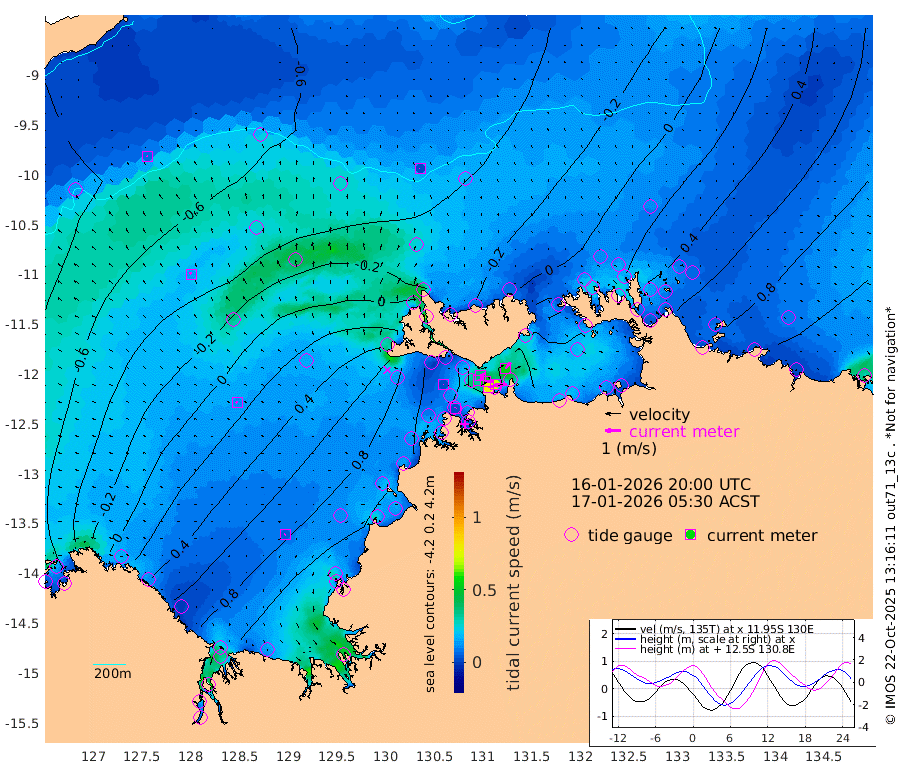 80cm/s 78T +4cm/s rms + 6cm/s 51T. Darwin_C1 52m 71cm/s 91T +4cm/s rms + 7cm/s -161T. Darwin_CW1 22m 32cm/s 72T +4cm/s rms + 8cm/s 61T. Darwin_CW2 34m 53cm/s 40T +3cm/s rms + 9cm/s 98T. Darwin_CW3 22m 52cm/s 90T +5cm/s rms + 7cm/s 88T. Darwin_C3 56m 38cm/s 66T +2cm/s rms + 9cm/s -126T. Darwin_CTbW 22m 3cm/s -14T +9cm/s rms + 2cm/s -110T. NWSLYN 196m 2cm/s 28T +1cm/s rms + 1cm/s -47T. DARBGF 30m 6cm/s -56T +7cm/s rms + 2cm/s -137T. ITFTIS 464m 13cm/s -22T +9cm/s rms + 1cm/s 74T. ITFMHB 146m 5cm/s -135T +4cm/s rms + 1cm/s -134T. ITFJBG 61m 12cm/s -59T +6cm/s rms + 4cm/s 121T. ITFFTB 108m 3cm/s 26T +4cm/s rms + 3cm/s 80T. NRSDAR 19m -80cm Carronade Island -87cm Guy Point -81cm Napier Broome Bay -22cm Lesueur Island 27cm Reveley Island -24cm Rocky Island 63cm Cape Domett 59cm Lacrosse Island 65cm Adolphus Island 38cm Pender Point 36cm Wyndham -37cm The Boxers 0cm Unnamed Shoal -75cm Loxton Shoal 83cm Pelican Island -52cm Calder Shoal -59cm Evans Shoal 110cm Quoin Island 81cm Port Keats 86cm Jones Point 130cm Catfish Island 51cm Cape Scott Offshore -8cm Cape Ford 70cm Anson Bay -42cm Goodrich Bank 48cm Peron Island North 38cm Point Jenny 37cm Native Point 52cm Fish Reef 54cm Tapa Bay -4cm Point Fawcett (Offshore) 62cm Burge Point 47cm Munkunuwa 23cm Beagle A 70cm Parsons Bank 57cm Fenton Patches -40cm Lynedoch Bank 70cm Hancox Shoal Area 75cm Nightcliff 84cm Darwin 65cm Charles Point Patches 68cm Glyde Point 61cm Chambers Bay 70cm Point Stuart 65cm Cape Hotham 48cm Christine Reef 74cm West Alligator Head 73cm East Field Island 54cm Two Hills Bay -11cm Newby Shoal 54cm Camp Point 56cm Medina Inlet South -8cm South Barlow Point -27cm St. Asaph Bay -39cm Cape Van Dieman -30cm Snake Bay -36cm Cache Point -82cm Echo Shoal -21cm Point Jahleel (Off) 17cm Cape Don -5cm Port Essington -9cm Smith Point - West -6cm NW Peacock Island -15cm North Of Jones Shoal -2cm Peacock Island 29cm Point David -1cm D'urville Point 3cm Money Shoal 32cm Copeland Island 39cm Cape Cockburn 24cm One Tree Point 31cm Hogmany Shoal 26cm New Year Island - West 27cm Grant Island 58cm Aurari Bay 63cm Cuthbert Point 47cm North Goulburn Island 80cm Paxie Shoal 82cm Entrance Island 113cm Yabooma Island