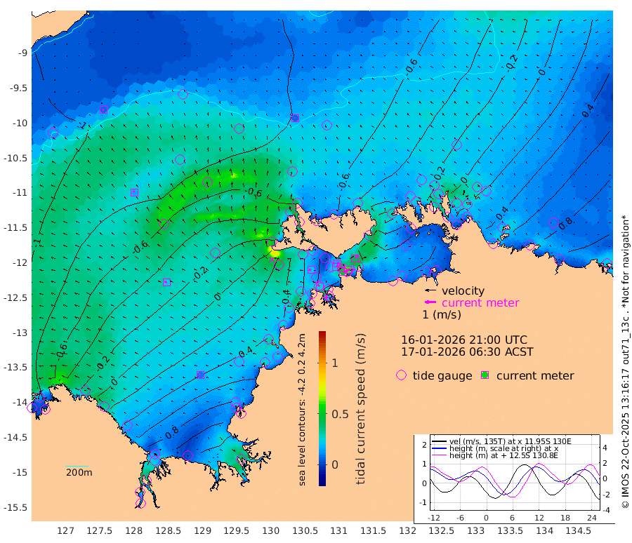 49cm/s 81T +4cm/s rms + 6cm/s 51T. Darwin_C1 52m 60cm/s 92T +4cm/s rms + 7cm/s -161T. Darwin_CW1 22m 21cm/s 64T +4cm/s rms + 8cm/s 61T. Darwin_CW2 34m 43cm/s 40T +3cm/s rms + 9cm/s 98T. Darwin_CW3 22m 39cm/s 90T +5cm/s rms + 7cm/s 88T. Darwin_C3 56m 17cm/s 66T +2cm/s rms + 9cm/s -126T. Darwin_CTbW 22m 6cm/s -29T +9cm/s rms + 2cm/s -110T. NWSLYN 196m 20cm/s -82T +1cm/s rms + 1cm/s -47T. DARBGF 30m 7cm/s -84T +7cm/s rms + 2cm/s -137T. ITFTIS 464m 16cm/s -30T +9cm/s rms + 1cm/s 74T. ITFMHB 146m 10cm/s -65T +4cm/s rms + 1cm/s -134T. ITFJBG 61m 24cm/s -58T +6cm/s rms + 4cm/s 121T. ITFFTB 108m 27cm/s -55T +4cm/s rms + 3cm/s 80T. NRSDAR 19m -90cm Carronade Island -96cm Guy Point -93cm Napier Broome Bay -40cm Lesueur Island 15cm Reveley Island -27cm Rocky Island 62cm Cape Domett 52cm Lacrosse Island 79cm Adolphus Island 72cm Pender Point 75cm Wyndham -71cm The Boxers -43cm Unnamed Shoal -98cm Loxton Shoal 78cm Pelican Island -86cm Calder Shoal -84cm Evans Shoal 138cm Quoin Island 59cm Port Keats 68cm Jones Point 155cm Catfish Island 14cm Cape Scott Offshore -47cm Cape Ford 28cm Anson Bay -73cm Goodrich Bank 10cm Peron Island North -7cm Point Jenny -9cm Native Point 12cm Fish Reef 9cm Tapa Bay -46cm Point Fawcett (Offshore) 23cm Burge Point 7cm Munkunuwa -21cm Beagle A 33cm Parsons Bank 16cm Fenton Patches -65cm Lynedoch Bank 35cm Hancox Shoal Area 32cm Nightcliff 47cm Darwin 24cm Charles Point Patches 49cm Glyde Point 64cm Chambers Bay 80cm Point Stuart 55cm Cape Hotham 46cm Christine Reef 88cm West Alligator Head 98cm East Field Island 51cm Two Hills Bay -56cm Newby Shoal 48cm Camp Point 15cm Medina Inlet South -49cm South Barlow Point -65cm St. Asaph Bay -71cm Cape Van Dieman -64cm Snake Bay -67cm Cache Point -101cm Echo Shoal -49cm Point Jahleel (Off) -7cm Cape Don -32cm Port Essington -39cm Smith Point - West -34cm NW Peacock Island -43cm North Of Jones Shoal -12cm Peacock Island 3cm Point David -30cm D'urville Point -23cm Money Shoal 8cm Copeland Island 9cm Cape Cockburn -1cm One Tree Point 3cm Hogmany Shoal -1cm New Year Island - West 1cm Grant Island 36cm Aurari Bay 45cm Cuthbert Point 25cm North Goulburn Island 65cm Paxie Shoal 71cm Entrance Island 112cm Yabooma Island