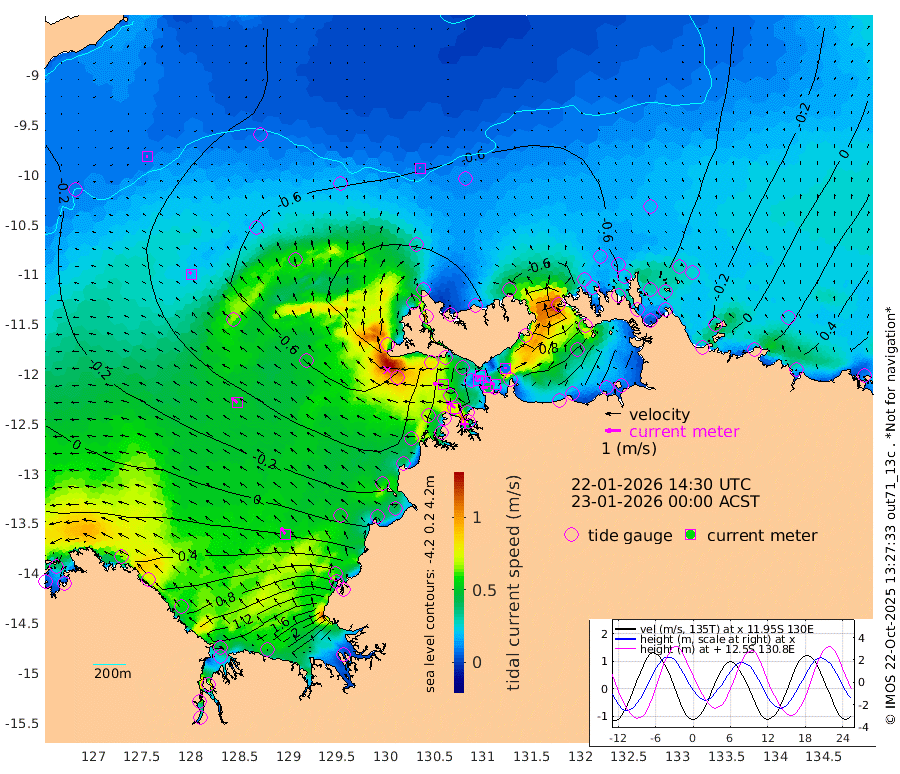 42cm/s -102T +4cm/s rms + 6cm/s 51T. Darwin_C1 52m 22cm/s -86T +4cm/s rms + 7cm/s -161T. Darwin_CW1 22m 13cm/s -111T +4cm/s rms + 8cm/s 61T. Darwin_CW2 34m 10cm/s 13T +3cm/s rms + 9cm/s 98T. Darwin_CW3 22m 11cm/s 107T +5cm/s rms + 7cm/s 88T. Darwin_C3 56m 23cm/s -119T +2cm/s rms + 9cm/s -126T. Darwin_CTbW 22m 7cm/s -25T +9cm/s rms + 2cm/s -110T. NWSLYN 196m 64cm/s -84T +1cm/s rms + 1cm/s -47T. DARBGF 30m 7cm/s -84T +7cm/s rms + 2cm/s -137T. ITFTIS 464m 19cm/s -28T +9cm/s rms + 1cm/s 74T. ITFMHB 146m 49cm/s -33T +4cm/s rms + 1cm/s -134T. ITFJBG 61m 49cm/s -50T +6cm/s rms + 4cm/s 121T. ITFFTB 108m 72cm/s -54T +4cm/s rms + 3cm/s 80T. NRSDAR 19m 85cm Carronade Island 90cm Guy Point 100cm Napier Broome Bay 75cm Lesueur Island 91cm Reveley Island 82cm Rocky Island 166cm Cape Domett 142cm Lacrosse Island 231cm Adolphus Island 314cm Pender Point 355cm Wyndham -30cm The Boxers -58cm Unnamed Shoal -30cm Loxton Shoal 136cm Pelican Island -51cm Calder Shoal -48cm Evans Shoal 315cm Quoin Island 63cm Port Keats 55cm Jones Point 353cm Catfish Island -9cm Cape Scott Offshore -131cm Cape Ford -22cm Anson Bay -65cm Goodrich Bank -37cm Peron Island North -52cm Point Jenny -55cm Native Point -47cm Fish Reef -45cm Tapa Bay -79cm Point Fawcett (Offshore) -29cm Burge Point -63cm Munkunuwa -64cm Beagle A -31cm Parsons Bank -34cm Fenton Patches -44cm Lynedoch Bank -11cm Hancox Shoal Area -17cm Nightcliff -6cm Darwin -28cm Charles Point Patches 51cm Glyde Point 139cm Chambers Bay 154cm Point Stuart 70cm Cape Hotham 123cm Christine Reef 179cm West Alligator Head 220cm East Field Island 96cm Two Hills Bay -40cm Newby Shoal 94cm Camp Point -41cm Medina Inlet South -84cm South Barlow Point -82cm St. Asaph Bay -74cm Cape Van Dieman -71cm Snake Bay -63cm Cache Point -16cm Echo Shoal -47cm Point Jahleel (Off) -6cm Cape Don -46cm Port Essington -52cm Smith Point - West -48cm NW Peacock Island -48cm North Of Jones Shoal -17cm Peacock Island -33cm Point David -52cm D'urville Point -36cm Money Shoal -30cm Copeland Island -33cm Cape Cockburn -27cm One Tree Point -26cm Hogmany Shoal -24cm New Year Island - West -24cm Grant Island -8cm Aurari Bay 17cm Cuthbert Point -8cm North Goulburn Island 41cm Paxie Shoal 54cm Entrance Island 88cm Yabooma Island
