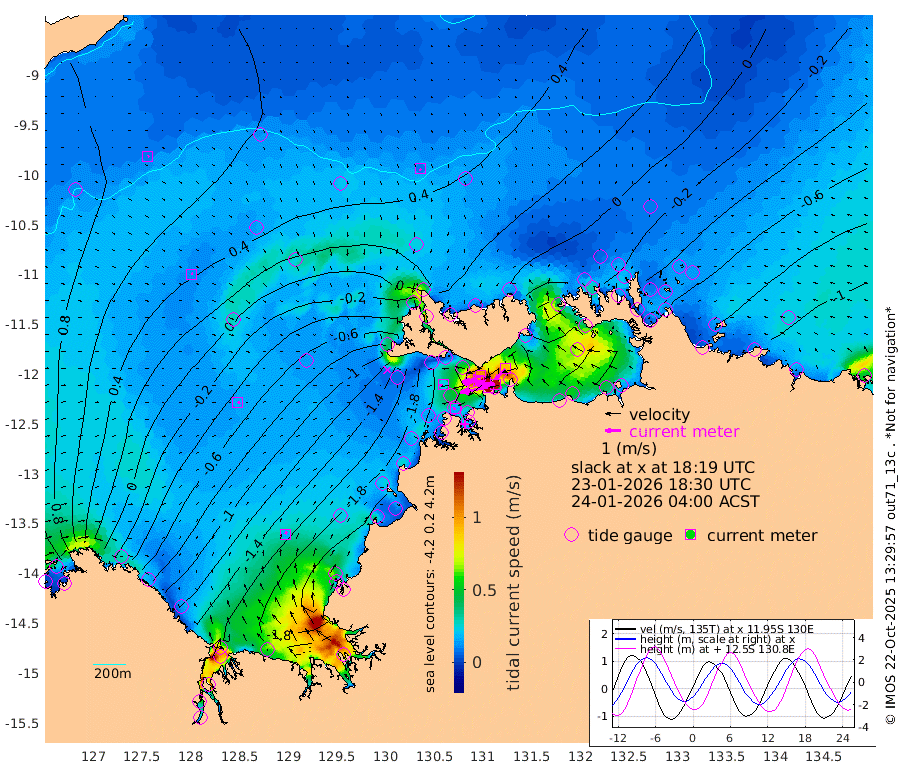 181cm/s -101T +4cm/s rms + 6cm/s 51T. Darwin_C1 52m 127cm/s -90T +4cm/s rms + 7cm/s -161T. Darwin_CW1 22m 97cm/s -106T +4cm/s rms + 8cm/s 61T. Darwin_CW2 34m 91cm/s -136T +3cm/s rms + 9cm/s 98T. Darwin_CW3 22m 149cm/s -91T +5cm/s rms + 7cm/s 88T. Darwin_C3 56m 101cm/s -115T +2cm/s rms + 9cm/s -126T. Darwin_CTbW 22m 10cm/s 164T +9cm/s rms + 2cm/s -110T. NWSLYN 196m 22cm/s -105T +1cm/s rms + 1cm/s -47T. DARBGF 30m 9cm/s 64T +7cm/s rms + 2cm/s -137T. ITFTIS 464m 11cm/s 67T +9cm/s rms + 1cm/s 74T. ITFMHB 146m 17cm/s 33T +4cm/s rms + 1cm/s -134T. ITFJBG 61m 16cm/s 80T +6cm/s rms + 4cm/s 121T. ITFFTB 108m 17cm/s -95T +4cm/s rms + 3cm/s 80T. NRSDAR 19m 83cm Carronade Island 82cm Guy Point 94cm Napier Broome Bay -36cm Lesueur Island -153cm Reveley Island -61cm Rocky Island -232cm Cape Domett -209cm Lacrosse Island -247cm Adolphus Island -160cm Pender Point -139cm Wyndham 6cm The Boxers -17cm Unnamed Shoal 68cm Loxton Shoal -262cm Pelican Island 15cm Calder Shoal 45cm Evans Shoal -282cm Quoin Island -250cm Port Keats -241cm Jones Point -183cm Catfish Island -174cm Cape Scott Offshore -166cm Cape Ford -196cm Anson Bay 23cm Goodrich Bank -174cm Peron Island North -167cm Point Jenny -166cm Native Point -178cm Fish Reef -198cm Tapa Bay -65cm Point Fawcett (Offshore) -212cm Burge Point -186cm Munkunuwa -141cm Beagle A -218cm Parsons Bank -208cm Fenton Patches 34cm Lynedoch Bank -220cm Hancox Shoal Area -231cm Nightcliff -236cm Darwin -203cm Charles Point Patches -175cm Glyde Point -149cm Chambers Bay -140cm Point Stuart -155cm Cape Hotham -136cm Christine Reef -152cm West Alligator Head -138cm East Field Island -125cm Two Hills Bay -72cm Newby Shoal -119cm Camp Point -189cm Medina Inlet South -54cm South Barlow Point -21cm St. Asaph Bay 20cm Cape Van Dieman 10cm Snake Bay 15cm Cache Point 89cm Echo Shoal -11cm Point Jahleel (Off) -60cm Cape Don -16cm Port Essington -23cm Smith Point - West -19cm NW Peacock Island 4cm North Of Jones Shoal -1cm Peacock Island -46cm Point David -27cm D'urville Point -7cm Money Shoal -50cm Copeland Island -64cm Cape Cockburn -39cm One Tree Point -58cm Hogmany Shoal -42cm New Year Island - West -50cm Grant Island -74cm Aurari Bay -88cm Cuthbert Point -71cm North Goulburn Island -90cm Paxie Shoal -121cm Entrance Island -142cm Yabooma Island