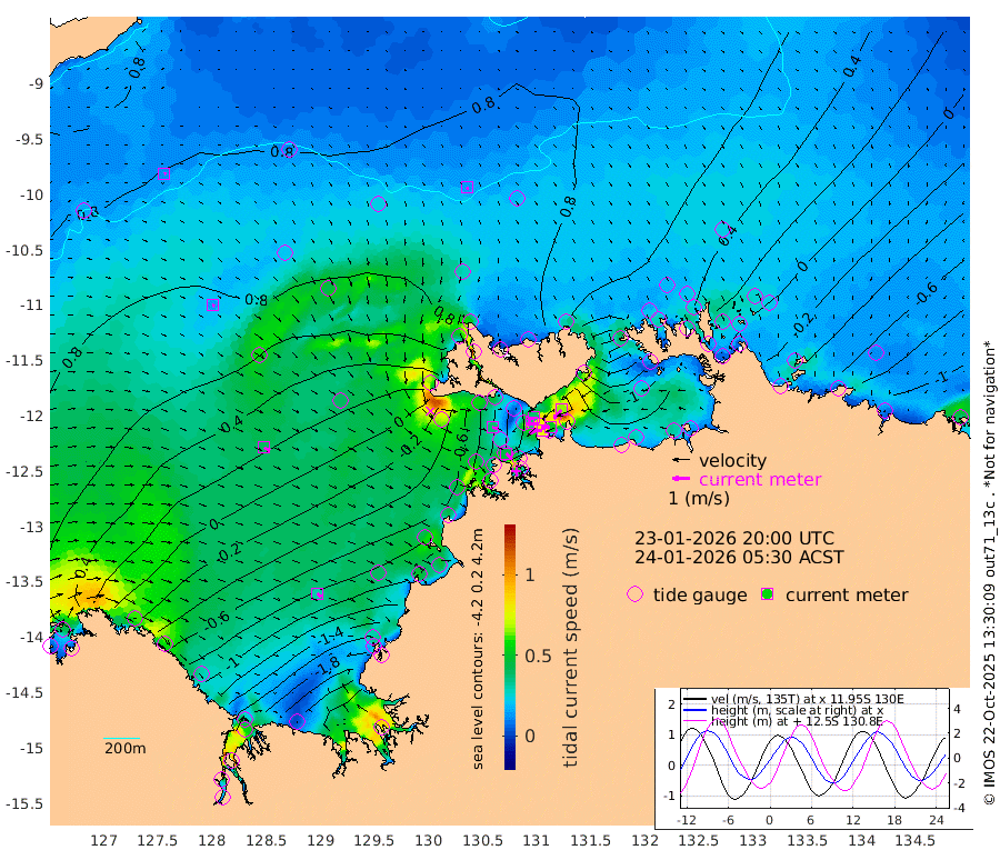 78cm/s -100T +4cm/s rms + 6cm/s 51T. Darwin_C1 52m 50cm/s -93T +4cm/s rms + 7cm/s -161T. Darwin_CW1 22m 35cm/s -106T +4cm/s rms + 8cm/s 61T. Darwin_CW2 34m 66cm/s -139T +3cm/s rms + 9cm/s 98T. Darwin_CW3 22m 79cm/s -90T +5cm/s rms + 7cm/s 88T. Darwin_C3 56m 38cm/s -116T +2cm/s rms + 9cm/s -126T. Darwin_CTbW 22m 15cm/s 156T +9cm/s rms + 2cm/s -110T. NWSLYN 196m 37cm/s 102T +1cm/s rms + 1cm/s -47T. DARBGF 30m 12cm/s 63T +7cm/s rms + 2cm/s -137T. ITFTIS 464m 14cm/s 114T +9cm/s rms + 1cm/s 74T. ITFMHB 146m 30cm/s 124T +4cm/s rms + 1cm/s -134T. ITFJBG 61m 39cm/s 116T +6cm/s rms + 4cm/s 121T. ITFFTB 108m 45cm/s 133T +4cm/s rms + 3cm/s 80T. NRSDAR 19m 6cm Carronade Island 3cm Guy Point 9cm Napier Broome Bay -61cm Lesueur Island -137cm Reveley Island -69cm Rocky Island -226cm Cape Domett -204cm Lacrosse Island -282cm Adolphus Island -277cm Pender Point -296cm Wyndham 45cm The Boxers 41cm Unnamed Shoal 80cm Loxton Shoal -228cm Pelican Island 59cm Calder Shoal 75cm Evans Shoal -354cm Quoin Island -167cm Port Keats -162cm Jones Point -325cm Catfish Island -79cm Cape Scott Offshore 18cm Cape Ford -82cm Anson Bay 72cm Goodrich Bank -62cm Peron Island North -46cm Point Jenny -43cm Native Point -56cm Fish Reef -69cm Tapa Bay 32cm Point Fawcett (Offshore) -85cm Burge Point -49cm Munkunuwa -27cm Beagle A -90cm Parsons Bank -86cm Fenton Patches 65cm Lynedoch Bank -108cm Hancox Shoal Area -113cm Nightcliff -113cm Darwin -76cm Charles Point Patches -126cm Glyde Point -175cm Chambers Bay -182cm Point Stuart -133cm Cape Hotham -156cm Christine Reef -207cm West Alligator Head -229cm East Field Island -132cm Two Hills Bay 4cm Newby Shoal -123cm Camp Point -63cm Medina Inlet South 42cm South Barlow Point 58cm St. Asaph Bay 75cm Cape Van Dieman 68cm Snake Bay 64cm Cache Point 76cm Echo Shoal 35cm Point Jahleel (Off) -18cm Cape Don 35cm Port Essington 32cm Smith Point - West 30cm NW Peacock Island 46cm North Of Jones Shoal 15cm Peacock Island 1cm Point David 28cm D'urville Point 32cm Money Shoal -5cm Copeland Island -8cm Cape Cockburn 5cm One Tree Point -8cm Hogmany Shoal -2cm New Year Island - West -6cm Grant Island -38cm Aurari Bay -57cm Cuthbert Point -30cm North Goulburn Island -71cm Paxie Shoal -106cm Entrance Island -146cm Yabooma Island