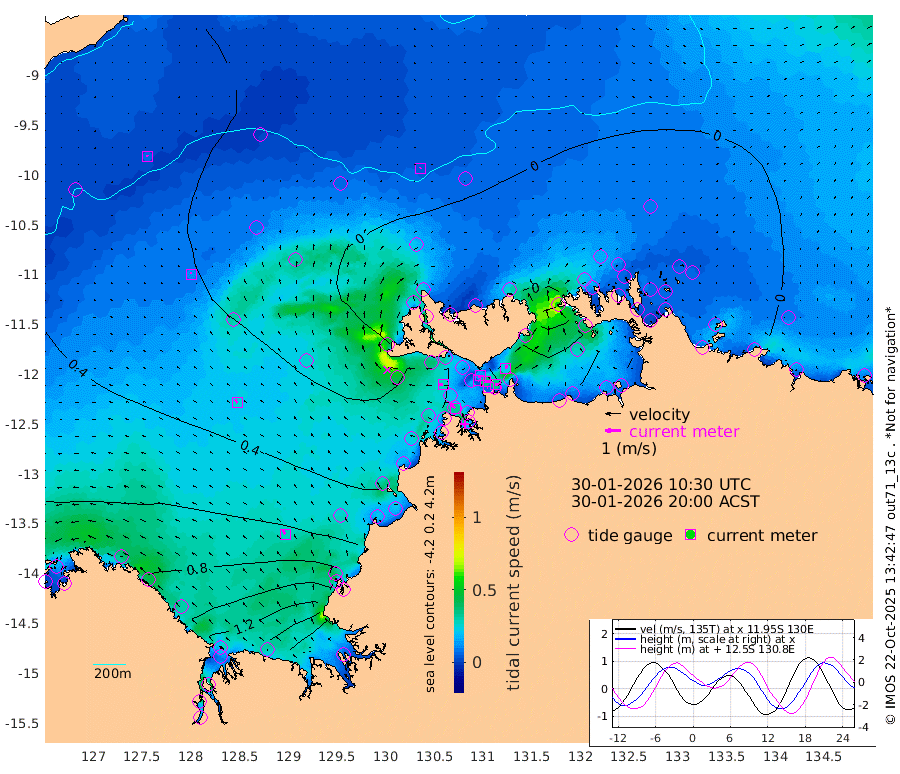 7cm/s -106T +4cm/s rms + 6cm/s 51T. Darwin_C1 52m 36cm/s 88T +4cm/s rms + 7cm/s -161T. Darwin_CW1 22m 4cm/s 96T +4cm/s rms + 8cm/s 61T. Darwin_CW2 34m 24cm/s 29T +3cm/s rms + 9cm/s 98T. Darwin_CW3 22m 35cm/s 94T +5cm/s rms + 7cm/s 88T. Darwin_C3 56m 15cm/s -121T +2cm/s rms + 9cm/s -126T. Darwin_CTbW 22m 5cm/s 37T +9cm/s rms + 2cm/s -110T. NWSLYN 196m 27cm/s -79T +1cm/s rms + 1cm/s -47T. DARBGF 30m 6cm/s -13T +7cm/s rms + 2cm/s -137T. ITFTIS 464m 11cm/s -4T +9cm/s rms + 1cm/s 74T. ITFMHB 146m 28cm/s -30T +4cm/s rms + 1cm/s -134T. ITFJBG 61m 26cm/s -39T +6cm/s rms + 4cm/s 121T. ITFFTB 108m 33cm/s -53T +4cm/s rms + 3cm/s 80T. NRSDAR 19m 106cm Carronade Island 116cm Guy Point 111cm Napier Broome Bay 117cm Lesueur Island 116cm Reveley Island 58cm Rocky Island 168cm Cape Domett 155cm Lacrosse Island 203cm Adolphus Island 237cm Pender Point 254cm Wyndham 42cm The Boxers 10cm Unnamed Shoal 40cm Loxton Shoal 145cm Pelican Island 35cm Calder Shoal 20cm Evans Shoal 236cm Quoin Island 118cm Port Keats 99cm Jones Point 188cm Catfish Island 62cm Cape Scott Offshore 61cm Cape Ford 55cm Anson Bay 11cm Goodrich Bank 44cm Peron Island North 43cm Point Jenny 42cm Native Point 41cm Fish Reef 50cm Tapa Bay 19cm Point Fawcett (Offshore) 64cm Burge Point 29cm Munkunuwa 40cm Beagle A 43cm Parsons Bank 60cm Fenton Patches 16cm Lynedoch Bank 59cm Hancox Shoal Area 64cm Nightcliff 70cm Darwin 66cm Charles Point Patches 76cm Glyde Point 106cm Chambers Bay 100cm Point Stuart 74cm Cape Hotham 100cm Christine Reef 112cm West Alligator Head 134cm East Field Island 74cm Two Hills Bay 56cm Newby Shoal 91cm Camp Point 48cm Medina Inlet South 10cm South Barlow Point 13cm St. Asaph Bay 5cm Cape Van Dieman 5cm Snake Bay 11cm Cache Point 46cm Echo Shoal 15cm Point Jahleel (Off) 29cm Cape Don 7cm Port Essington 2cm Smith Point - West 2cm NW Peacock Island 9cm North Of Jones Shoal 1cm Peacock Island -3cm Point David -3cm D'urville Point 10cm Money Shoal -4cm Copeland Island 0cm Cape Cockburn 3cm One Tree Point 6cm Hogmany Shoal 7cm New Year Island - West 4cm Grant Island 0cm Aurari Bay 9cm Cuthbert Point 6cm North Goulburn Island 27cm Paxie Shoal 23cm Entrance Island 31cm Yabooma Island