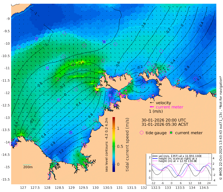 73cm/s 79T +4cm/s rms + 6cm/s 51T. Darwin_C1 52m 65cm/s 92T +4cm/s rms + 7cm/s -161T. Darwin_CW1 22m 28cm/s 68T +4cm/s rms + 8cm/s 61T. Darwin_CW2 34m 57cm/s 39T +3cm/s rms + 9cm/s 98T. Darwin_CW3 22m 44cm/s 90T +5cm/s rms + 7cm/s 88T. Darwin_C3 56m 32cm/s 64T +2cm/s rms + 9cm/s -126T. Darwin_CTbW 22m 7cm/s -27T +9cm/s rms + 2cm/s -110T. NWSLYN 196m 16cm/s -79T +1cm/s rms + 1cm/s -47T. DARBGF 30m 9cm/s -74T +7cm/s rms + 2cm/s -137T. ITFTIS 464m 18cm/s -29T +9cm/s rms + 1cm/s 74T. ITFMHB 146m 9cm/s -89T +4cm/s rms + 1cm/s -134T. ITFJBG 61m 23cm/s -60T +6cm/s rms + 4cm/s 121T. ITFFTB 108m 18cm/s -50T +4cm/s rms + 3cm/s 80T. NRSDAR 19m -83cm Carronade Island -90cm Guy Point -91cm Napier Broome Bay -17cm Lesueur Island 55cm Reveley Island -9cm Rocky Island 106cm Cape Domett 92cm Lacrosse Island 120cm Adolphus Island 95cm Pender Point 94cm Wyndham -58cm The Boxers -22cm Unnamed Shoal -110cm Loxton Shoal 128cm Pelican Island -81cm Calder Shoal -90cm Evans Shoal 153cm Quoin Island 111cm Port Keats 125cm Jones Point 139cm Catfish Island 46cm Cape Scott Offshore 48cm Cape Ford 64cm Anson Bay -66cm Goodrich Bank 45cm Peron Island North 47cm Point Jenny 46cm Native Point 58cm Fish Reef 66cm Tapa Bay -27cm Point Fawcett (Offshore) 84cm Burge Point 51cm Munkunuwa 31cm Beagle A 87cm Parsons Bank 82cm Fenton Patches -67cm Lynedoch Bank 91cm Hancox Shoal Area 86cm Nightcliff 99cm Darwin 73cm Charles Point Patches 94cm Glyde Point 99cm Chambers Bay 114cm Point Stuart 92cm Cape Hotham 89cm Christine Reef 123cm West Alligator Head 131cm East Field Island 80cm Two Hills Bay -17cm Newby Shoal 83cm Camp Point 57cm Medina Inlet South -32cm South Barlow Point -53cm St. Asaph Bay -63cm Cape Van Dieman -59cm Snake Bay -58cm Cache Point -117cm Echo Shoal -37cm Point Jahleel (Off) 13cm Cape Don -20cm Port Essington -22cm Smith Point - West -17cm NW Peacock Island -44cm North Of Jones Shoal -12cm Peacock Island 26cm Point David -11cm D'urville Point -11cm Money Shoal 32cm Copeland Island 35cm Cape Cockburn 14cm One Tree Point 40cm Hogmany Shoal 22cm New Year Island - West 27cm Grant Island 61cm Aurari Bay 82cm Cuthbert Point 52cm North Goulburn Island 93cm Paxie Shoal 119cm Entrance Island 157cm Yabooma Island
