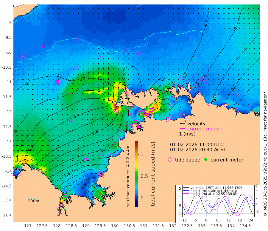 82cm/s 79T +4cm/s rms + 6cm/s 51T. Darwin_C1 52m 100cm/s 90T +4cm/s rms + 7cm/s -161T. Darwin_CW1 22m 61cm/s 72T +4cm/s rms + 8cm/s 61T. Darwin_CW2 34m 70cm/s 43T +3cm/s rms + 9cm/s 98T. Darwin_CW3 22m 115cm/s 90T +5cm/s rms + 7cm/s 88T. Darwin_C3 56m 37cm/s 67T +2cm/s rms + 9cm/s -126T. Darwin_CTbW 22m 8cm/s 0T +9cm/s rms + 2cm/s -110T. NWSLYN 196m 27cm/s -69T +1cm/s rms + 1cm/s -47T. DARBGF 30m 7cm/s -60T +7cm/s rms + 2cm/s -137T. ITFTIS 464m 12cm/s -40T +9cm/s rms + 1cm/s 74T. ITFMHB 146m 28cm/s -48T +4cm/s rms + 1cm/s -134T. ITFJBG 61m 35cm/s -54T +6cm/s rms + 4cm/s 121T. ITFFTB 108m 41cm/s -47T +4cm/s rms + 3cm/s 80T. NRSDAR 19m 59cm Carronade Island 68cm Guy Point 65cm Napier Broome Bay 120cm Lesueur Island 193cm Reveley Island 110cm Rocky Island 290cm Cape Domett 260cm Lacrosse Island 324cm Adolphus Island 344cm Pender Point 348cm Wyndham 21cm The Boxers 3cm Unnamed Shoal -15cm Loxton Shoal 275cm Pelican Island 5cm Calder Shoal -23cm Evans Shoal 387cm Quoin Island 235cm Port Keats 220cm Jones Point 303cm Catfish Island 134cm Cape Scott Offshore 132cm Cape Ford 136cm Anson Bay -24cm Goodrich Bank 114cm Peron Island North 111cm Point Jenny 109cm Native Point 116cm Fish Reef 133cm Tapa Bay 30cm Point Fawcett (Offshore) 159cm Burge Point 113cm Munkunuwa 89cm Beagle A 141cm Parsons Bank 146cm Fenton Patches -22cm Lynedoch Bank 153cm Hancox Shoal Area 160cm Nightcliff 174cm Darwin 148cm Charles Point Patches 159cm Glyde Point 183cm Chambers Bay 183cm Point Stuart 149cm Cape Hotham 169cm Christine Reef 204cm West Alligator Head 221cm East Field Island 138cm Two Hills Bay 69cm Newby Shoal 148cm Camp Point 128cm Medina Inlet South 13cm South Barlow Point -2cm St. Asaph Bay -28cm Cape Van Dieman -25cm Snake Bay -20cm Cache Point -21cm Echo Shoal -1cm Point Jahleel (Off) 45cm Cape Don -7cm Port Essington -11cm Smith Point - West -13cm NW Peacock Island -20cm North Of Jones Shoal -7cm Peacock Island -1cm Point David -15cm D'urville Point -11cm Money Shoal 0cm Copeland Island 5cm Cape Cockburn 1cm One Tree Point 12cm Hogmany Shoal 5cm New Year Island - West 8cm Grant Island 16cm Aurari Bay 37cm Cuthbert Point 22cm North Goulburn Island 62cm Paxie Shoal 73cm Entrance Island 93cm Yabooma Island
