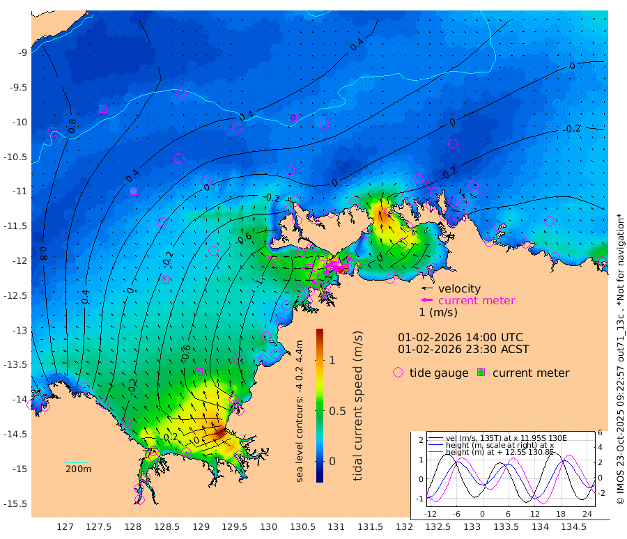 156cm/s -102T +4cm/s rms + 6cm/s 51T. Darwin_C1 52m 109cm/s -89T +4cm/s rms + 7cm/s -161T. Darwin_CW1 22m 75cm/s -108T +4cm/s rms + 8cm/s 61T. Darwin_CW2 34m 57cm/s -130T +3cm/s rms + 9cm/s 98T. Darwin_CW3 22m 78cm/s -92T +5cm/s rms + 7cm/s 88T. Darwin_C3 56m 93cm/s -115T +2cm/s rms + 9cm/s -126T. Darwin_CTbW 22m 5cm/s 129T +9cm/s rms + 2cm/s -110T. NWSLYN 196m 55cm/s -89T +1cm/s rms + 1cm/s -47T. DARBGF 30m 6cm/s 15T +7cm/s rms + 2cm/s -137T. ITFTIS 464m 15cm/s 11T +9cm/s rms + 1cm/s 74T. ITFMHB 146m 41cm/s -20T +4cm/s rms + 1cm/s -134T. ITFJBG 61m 28cm/s -28T +6cm/s rms + 4cm/s 121T. ITFFTB 108m 54cm/s -62T +4cm/s rms + 3cm/s 80T. NRSDAR 19m 146cm Carronade Island 156cm Guy Point 160cm Napier Broome Bay 69cm Lesueur Island -13cm Reveley Island 1cm Rocky Island -24cm Cape Domett -23cm Lacrosse Island 10cm Adolphus Island 110cm Pender Point 149cm Wyndham 24cm The Boxers -10cm Unnamed Shoal 76cm Loxton Shoal -67cm Pelican Island 26cm Calder Shoal 42cm Evans Shoal 23cm Quoin Island -102cm Port Keats -112cm Jones Point 48cm Catfish Island -93cm Cape Scott Offshore -148cm Cape Ford -119cm Anson Bay 17cm Goodrich Bank -109cm Peron Island North -118cm Point Jenny -117cm Native Point -131cm Fish Reef -130cm Tapa Bay -58cm Point Fawcett (Offshore) -135cm Burge Point -140cm Munkunuwa -107cm Beagle A -138cm Parsons Bank -136cm Fenton Patches 35cm Lynedoch Bank -123cm Hancox Shoal Area -134cm Nightcliff -134cm Darwin -120cm Charles Point Patches -70cm Glyde Point -5cm Chambers Bay 0cm Point Stuart -46cm Cape Hotham -3cm Christine Reef 4cm West Alligator Head 35cm East Field Island -15cm Two Hills Bay -33cm Newby Shoal -7cm Camp Point -126cm Medina Inlet South -50cm South Barlow Point -26cm St. Asaph Bay 9cm Cape Van Dieman 8cm Snake Bay 11cm Cache Point 94cm Echo Shoal 1cm Point Jahleel (Off) -18cm Cape Don -5cm Port Essington -11cm Smith Point - West -4cm NW Peacock Island 12cm North Of Jones Shoal 2cm Peacock Island -14cm Point David -14cm D'urville Point 9cm Money Shoal -18cm Copeland Island -21cm Cape Cockburn -8cm One Tree Point -9cm Hogmany Shoal -6cm New Year Island - West -10cm Grant Island -28cm Aurari Bay -25cm Cuthbert Point -20cm North Goulburn Island -12cm Paxie Shoal -25cm Entrance Island -25cm Yabooma Island