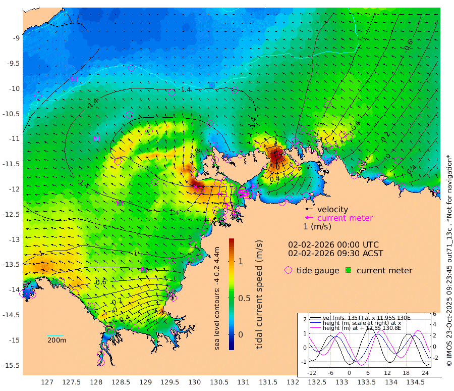 92cm/s -103T +4cm/s rms + 6cm/s 51T. Darwin_C1 52m 44cm/s -85T +4cm/s rms + 7cm/s -161T. Darwin_CW1 22m 47cm/s -107T +4cm/s rms + 8cm/s 61T. Darwin_CW2 34m 16cm/s -89T +3cm/s rms + 9cm/s 98T. Darwin_CW3 22m 45cm/s -93T +5cm/s rms + 7cm/s 88T. Darwin_C3 56m 62cm/s -116T +2cm/s rms + 9cm/s -126T. Darwin_CTbW 22m 14cm/s -35T +9cm/s rms + 2cm/s -110T. NWSLYN 196m 79cm/s -88T +1cm/s rms + 1cm/s -47T. DARBGF 30m 14cm/s -115T +7cm/s rms + 2cm/s -137T. ITFTIS 464m 24cm/s -38T +9cm/s rms + 1cm/s 74T. ITFMHB 146m 45cm/s -37T +4cm/s rms + 1cm/s -134T. ITFJBG 61m 55cm/s -56T +6cm/s rms + 4cm/s 121T. ITFFTB 108m 80cm/s -56T +4cm/s rms + 3cm/s 80T. NRSDAR 19m -52cm Carronade Island -48cm Guy Point -64cm Napier Broome Bay -49cm Lesueur Island -5cm Reveley Island -33cm Rocky Island 52cm Cape Domett 29cm Lacrosse Island 125cm Adolphus Island 176cm Pender Point 206cm Wyndham -139cm The Boxers -143cm Unnamed Shoal -130cm Loxton Shoal 49cm Pelican Island -152cm Calder Shoal -126cm Evans Shoal 182cm Quoin Island -23cm Port Keats -13cm Jones Point 147cm Catfish Island -103cm Cape Scott Offshore -167cm Cape Ford -112cm Anson Bay -129cm Goodrich Bank -117cm Peron Island North -133cm Point Jenny -134cm Native Point -127cm Fish Reef -120cm Tapa Bay -167cm Point Fawcett (Offshore) -104cm Burge Point -126cm Munkunuwa -142cm Beagle A -88cm Parsons Bank -103cm Fenton Patches -111cm Lynedoch Bank -68cm Hancox Shoal Area -91cm Nightcliff -81cm Darwin -108cm Charles Point Patches -12cm Glyde Point 75cm Chambers Bay 98cm Point Stuart 18cm Cape Hotham 62cm Christine Reef 118cm West Alligator Head 159cm East Field Island 36cm Two Hills Bay -154cm Newby Shoal 37cm Camp Point -123cm Medina Inlet South -156cm South Barlow Point -157cm St. Asaph Bay -136cm Cape Van Dieman -136cm Snake Bay -130cm Cache Point -116cm Echo Shoal -105cm Point Jahleel (Off) -66cm Cape Don -94cm Port Essington -98cm Smith Point - West -87cm NW Peacock Island -106cm North Of Jones Shoal -35cm Peacock Island -48cm Point David -88cm D'urville Point -74cm Money Shoal -39cm Copeland Island -58cm Cape Cockburn -58cm One Tree Point -41cm Hogmany Shoal -53cm New Year Island - West -47cm Grant Island -13cm Aurari Bay 13cm Cuthbert Point -21cm North Goulburn Island 30cm Paxie Shoal 66cm Entrance Island 125cm Yabooma Island