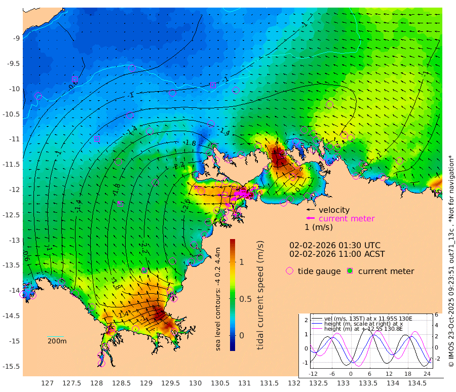 215cm/s -102T +4cm/s rms + 6cm/s 51T. Darwin_C1 52m 151cm/s -89T +4cm/s rms + 7cm/s -161T. Darwin_CW1 22m 118cm/s -108T +4cm/s rms + 8cm/s 61T. Darwin_CW2 34m 82cm/s -127T +3cm/s rms + 9cm/s 98T. Darwin_CW3 22m 147cm/s -91T +5cm/s rms + 7cm/s 88T. Darwin_C3 56m 128cm/s -115T +2cm/s rms + 9cm/s -126T. Darwin_CTbW 22m 11cm/s -51T +9cm/s rms + 2cm/s -110T. NWSLYN 196m 88cm/s -91T +1cm/s rms + 1cm/s -47T. DARBGF 30m 11cm/s -147T +7cm/s rms + 2cm/s -137T. ITFTIS 464m 13cm/s -35T +9cm/s rms + 1cm/s 74T. ITFMHB 146m 45cm/s -27T +4cm/s rms + 1cm/s -134T. ITFJBG 61m 41cm/s -51T +6cm/s rms + 4cm/s 121T. ITFFTB 108m 75cm/s -61T +4cm/s rms + 3cm/s 80T. NRSDAR 19m 0cm Carronade Island 5cm Guy Point -9cm Napier Broome Bay -82cm Lesueur Island -125cm Reveley Island -71cm Rocky Island -136cm Cape Domett -138cm Lacrosse Island -68cm Adolphus Island 22cm Pender Point 67cm Wyndham -137cm The Boxers -160cm Unnamed Shoal -73cm Loxton Shoal -158cm Pelican Island -133cm Calder Shoal -86cm Evans Shoal -50cm Quoin Island -222cm Port Keats -212cm Jones Point -37cm Catfish Island -233cm Cape Scott Offshore -322cm Cape Ford -261cm Anson Bay -107cm Goodrich Bank -247cm Peron Island North -259cm Point Jenny -260cm Native Point -267cm Fish Reef -269cm Tapa Bay -215cm Point Fawcett (Offshore) -273cm Burge Point -263cm Munkunuwa -246cm Beagle A -254cm Parsons Bank -261cm Fenton Patches -83cm Lynedoch Bank -233cm Hancox Shoal Area -259cm Nightcliff -267cm Darwin -272cm Charles Point Patches -158cm Glyde Point -53cm Chambers Bay -33cm Point Stuart -113cm Cape Hotham -54cm Christine Reef -21cm West Alligator Head 24cm East Field Island -73cm Two Hills Bay -208cm Newby Shoal -74cm Camp Point -268cm Medina Inlet South -190cm South Barlow Point -166cm St. Asaph Bay -118cm Cape Van Dieman -123cm Snake Bay -116cm Cache Point -43cm Echo Shoal -110cm Point Jahleel (Off) -120cm Cape Don -112cm Port Essington -112cm Smith Point - West -101cm NW Peacock Island -102cm North Of Jones Shoal -36cm Peacock Island -90cm Point David -108cm D'urville Point -89cm Money Shoal -84cm Copeland Island -117cm Cape Cockburn -96cm One Tree Point -101cm Hogmany Shoal -93cm New Year Island - West -92cm Grant Island -79cm Aurari Bay -72cm Cuthbert Point -88cm North Goulburn Island -68cm Paxie Shoal -46cm Entrance Island -13cm Yabooma Island